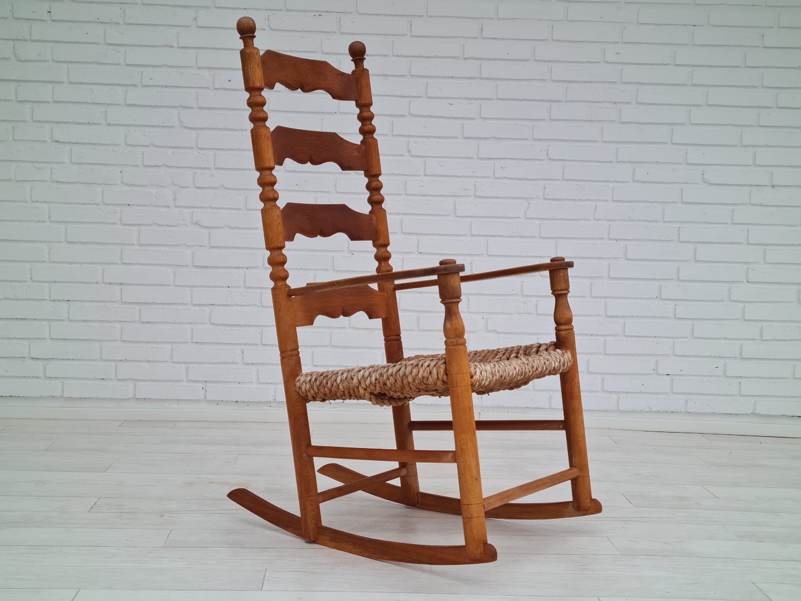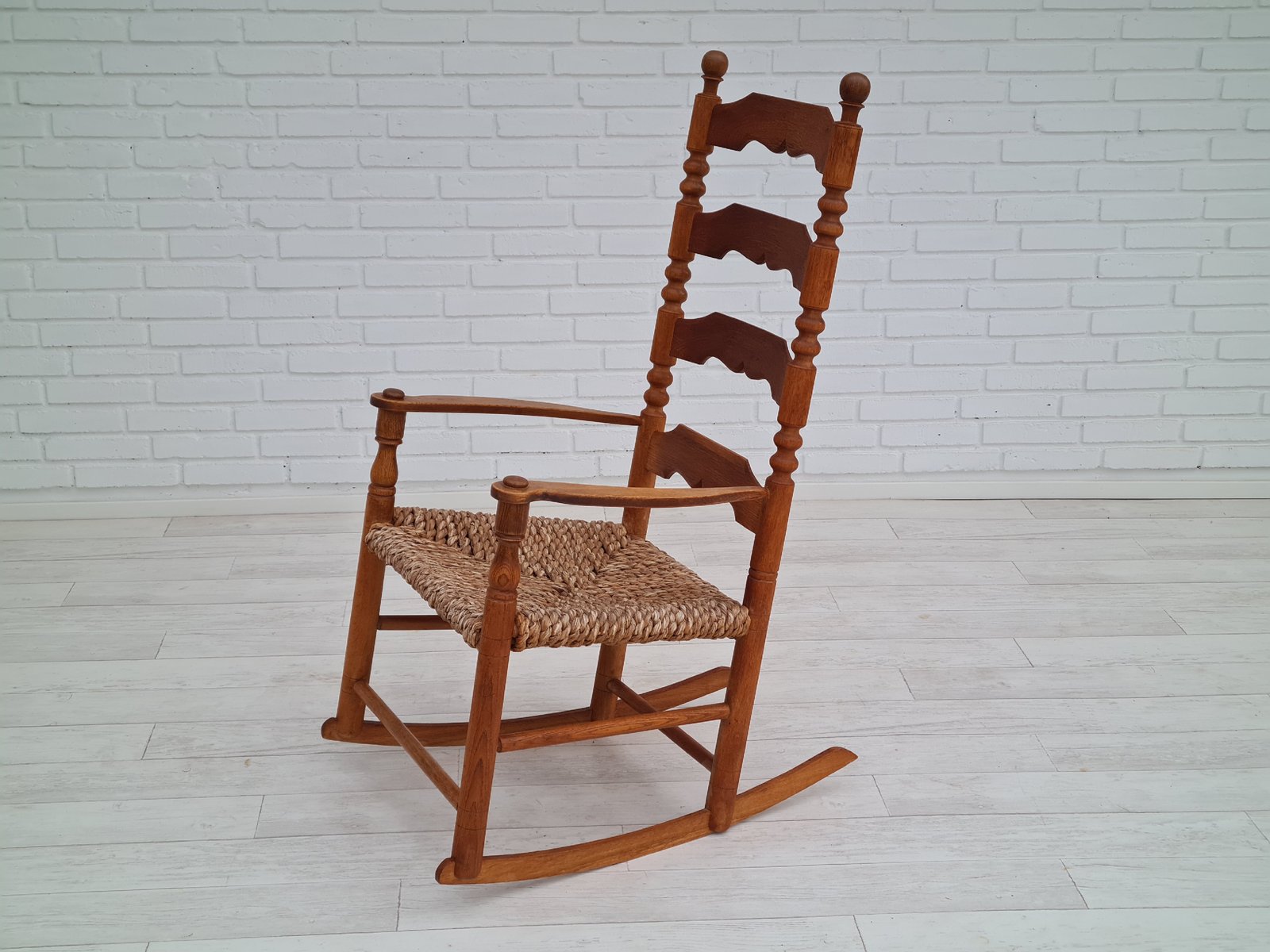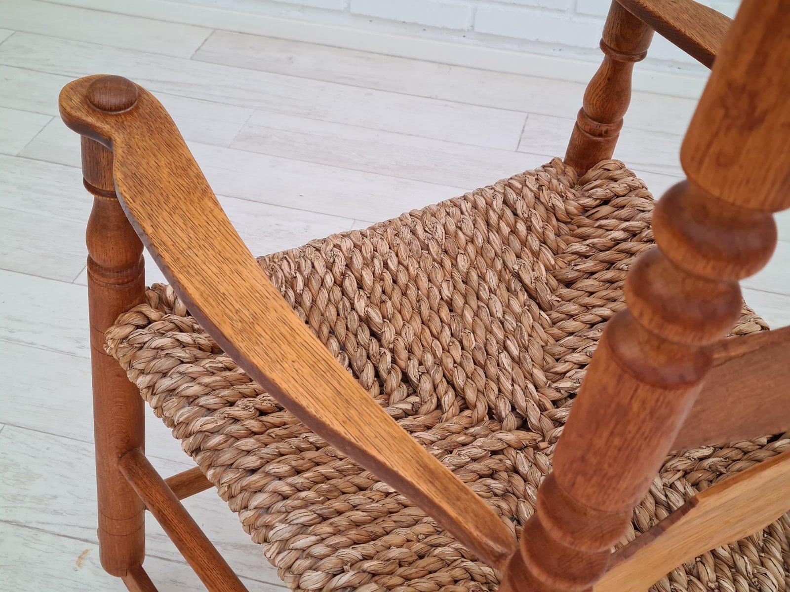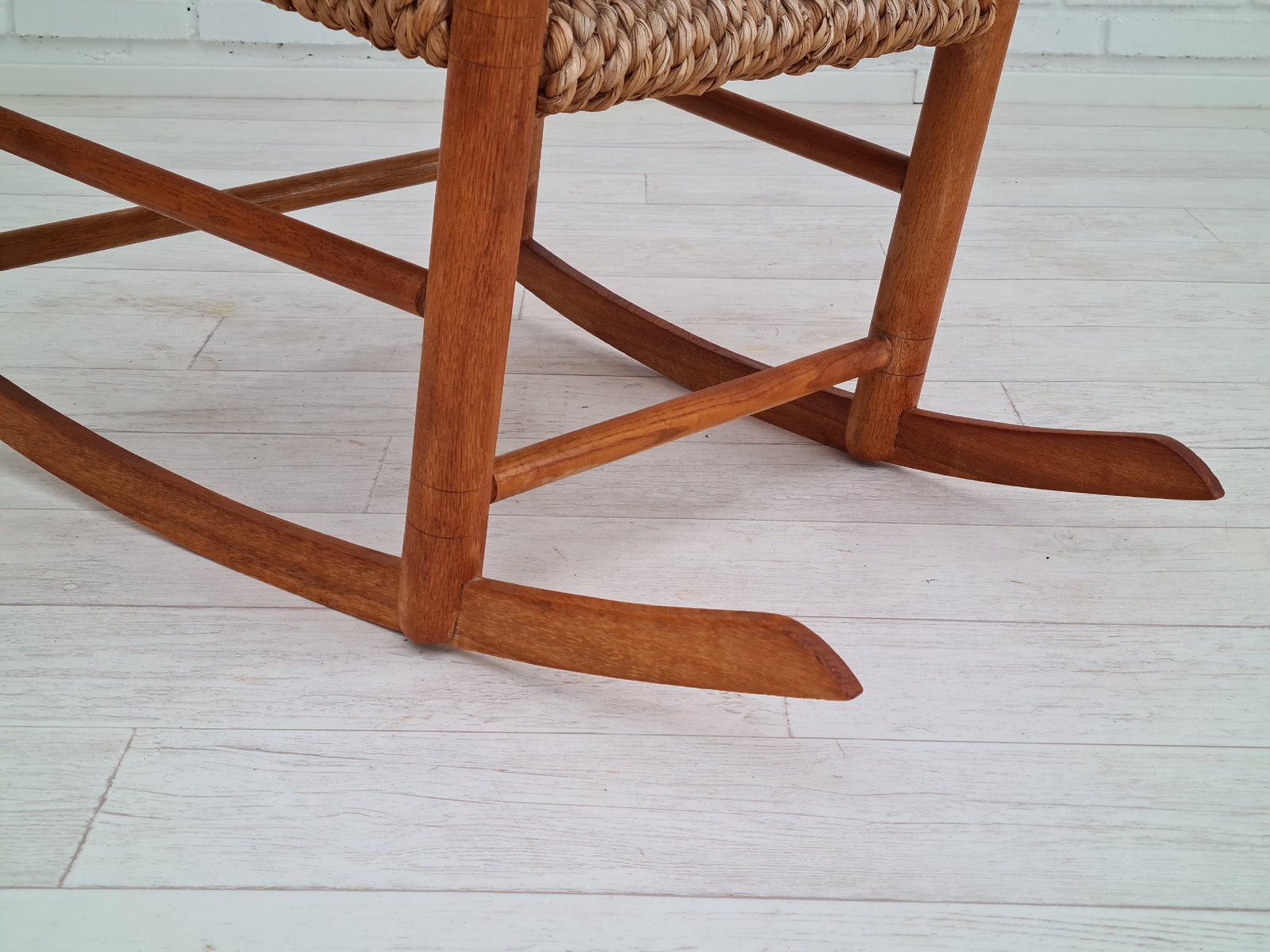 Dänischer Schaukelstuhl aus Eiche & Naturfaser, 1960er
