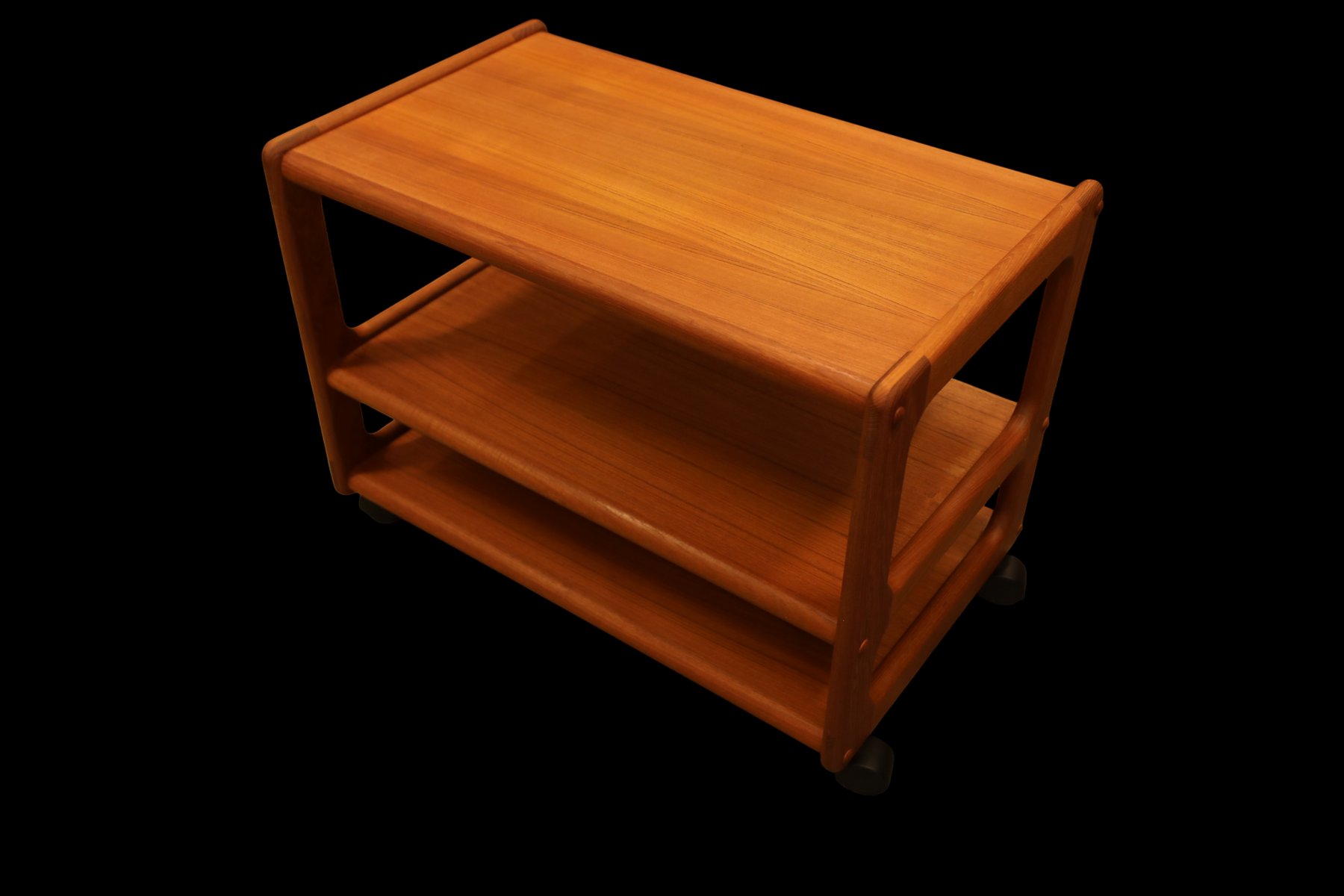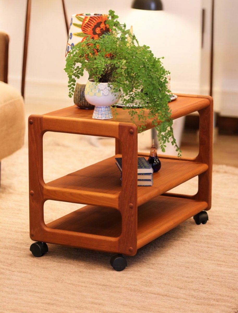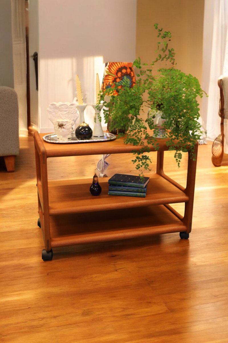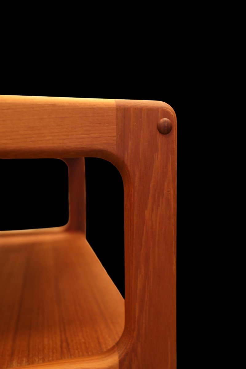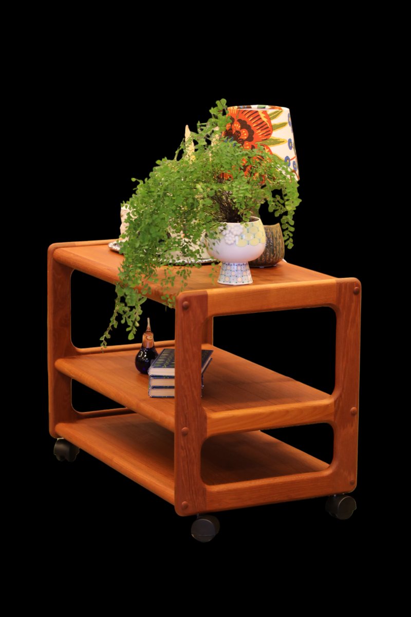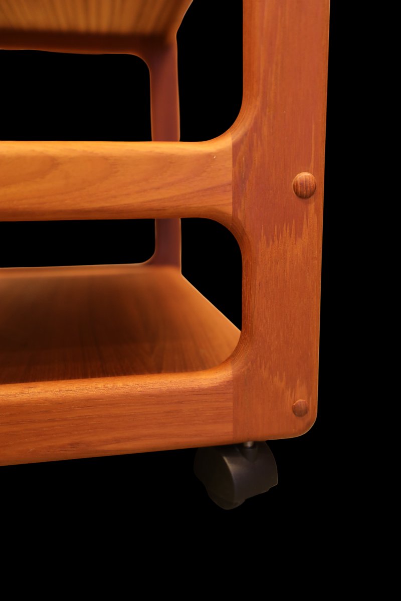 The cart is made in Denmark and is in a beautiful golden brown teak, which gives it a timeless and elegant look that really enhances the atmosphere of any room. with its elegant design and durable materials, it is not only a visual pleasure but also a practical investment for many years to come. The cart has three levels, which makes it easy to find space for what you need, whether it is books, decorations or anything else you want to have close at hand. In addition, the size and layout of the levels are designed to maximize space, making it a perfect solution for both small and large rooms.