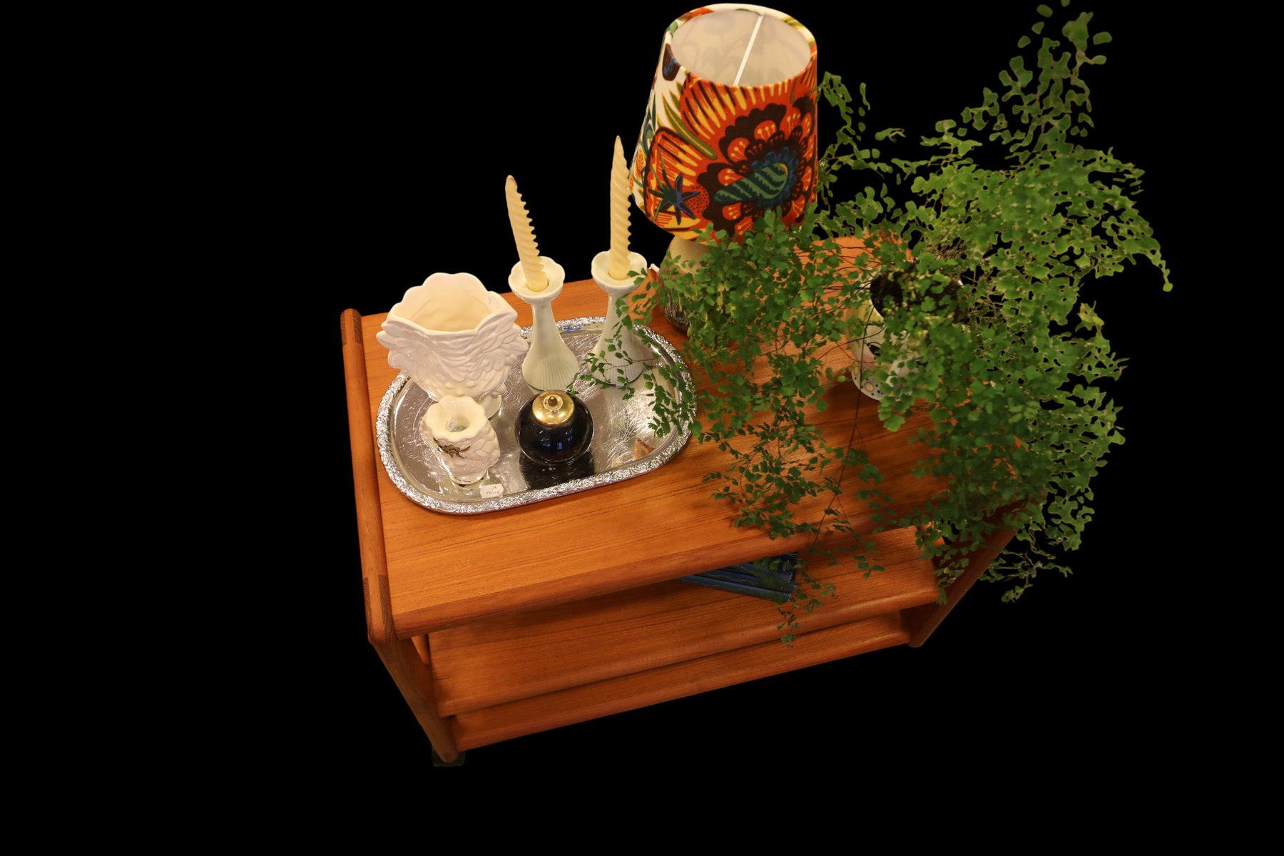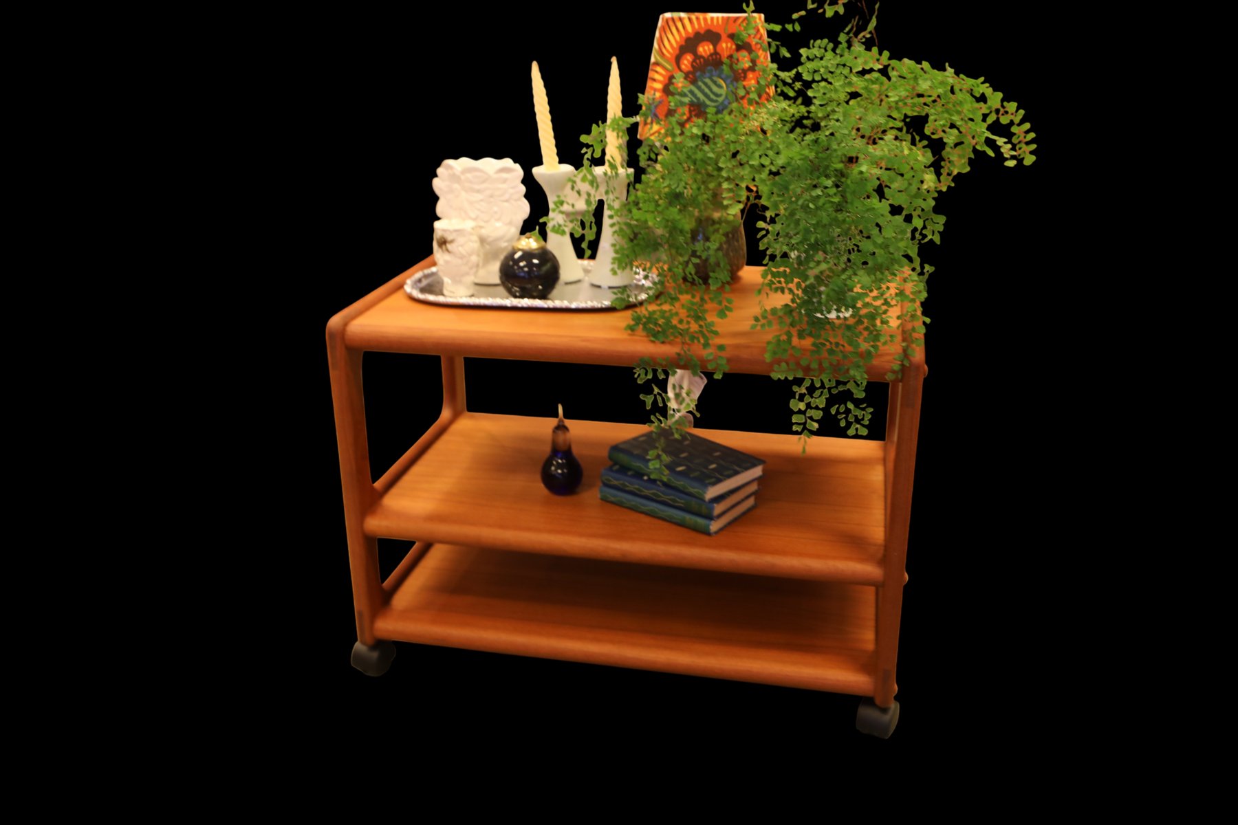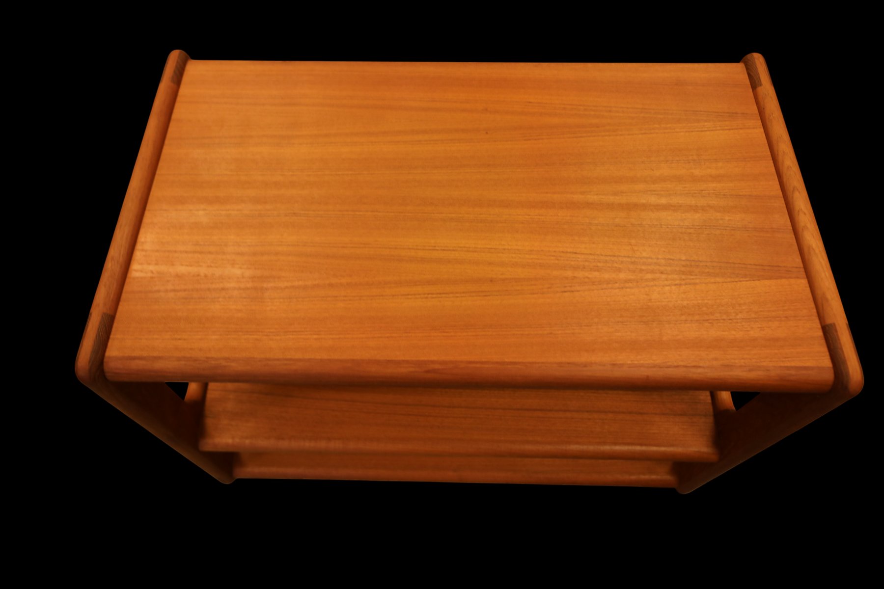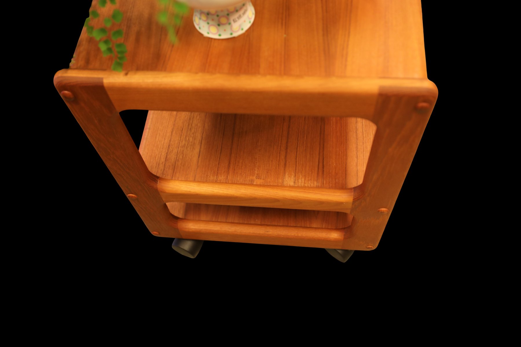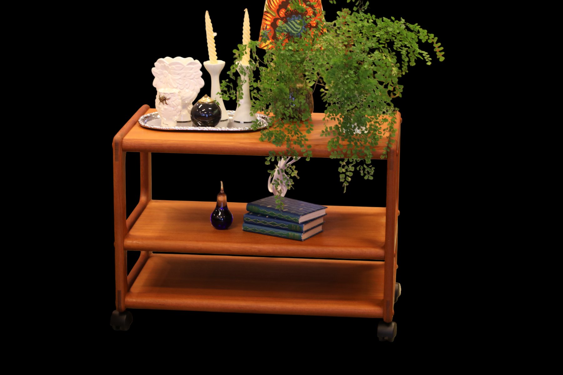 The cart is made in Denmark and is in a beautiful golden brown teak, which gives it a timeless and elegant look that really enhances the atmosphere of any room. with its elegant design and durable materials, it is not only a visual pleasure but also a practical investment for many years to come. The cart has three levels, which makes it easy to find space for what you need, whether it is books, decorations or anything else you want to have close at hand. In addition, the size and layout of the levels are designed to maximize space, making it a perfect solution for both small and large rooms.