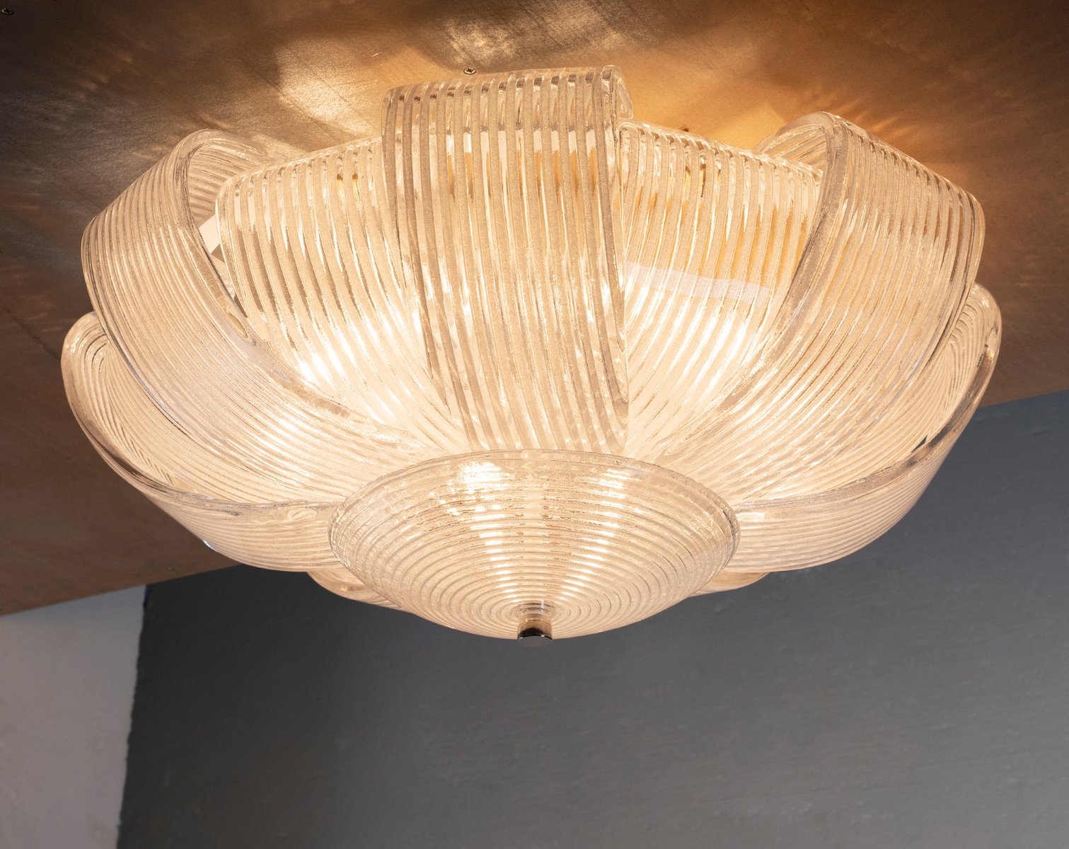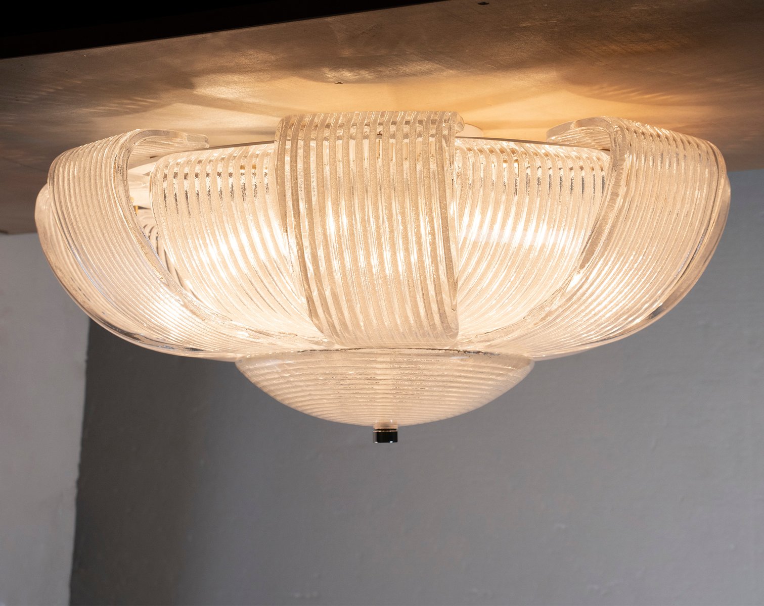 Deckenlampe mit klarem Muranoglas, Italien, 1990er
