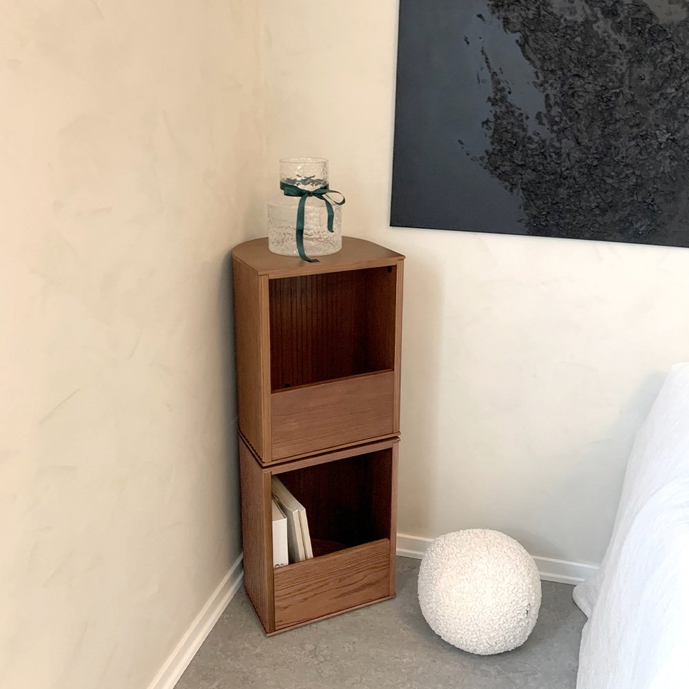 A shifting stool with the possibility of being used as a seat, including a storage space perfect for blankets or books. with an iconic texture that makes an automatic statement piece that completes a room with a memorable look. And even more functional, with its design perfectly connecting giving the possibility of connecting two stools in the center and creating a side or center table.