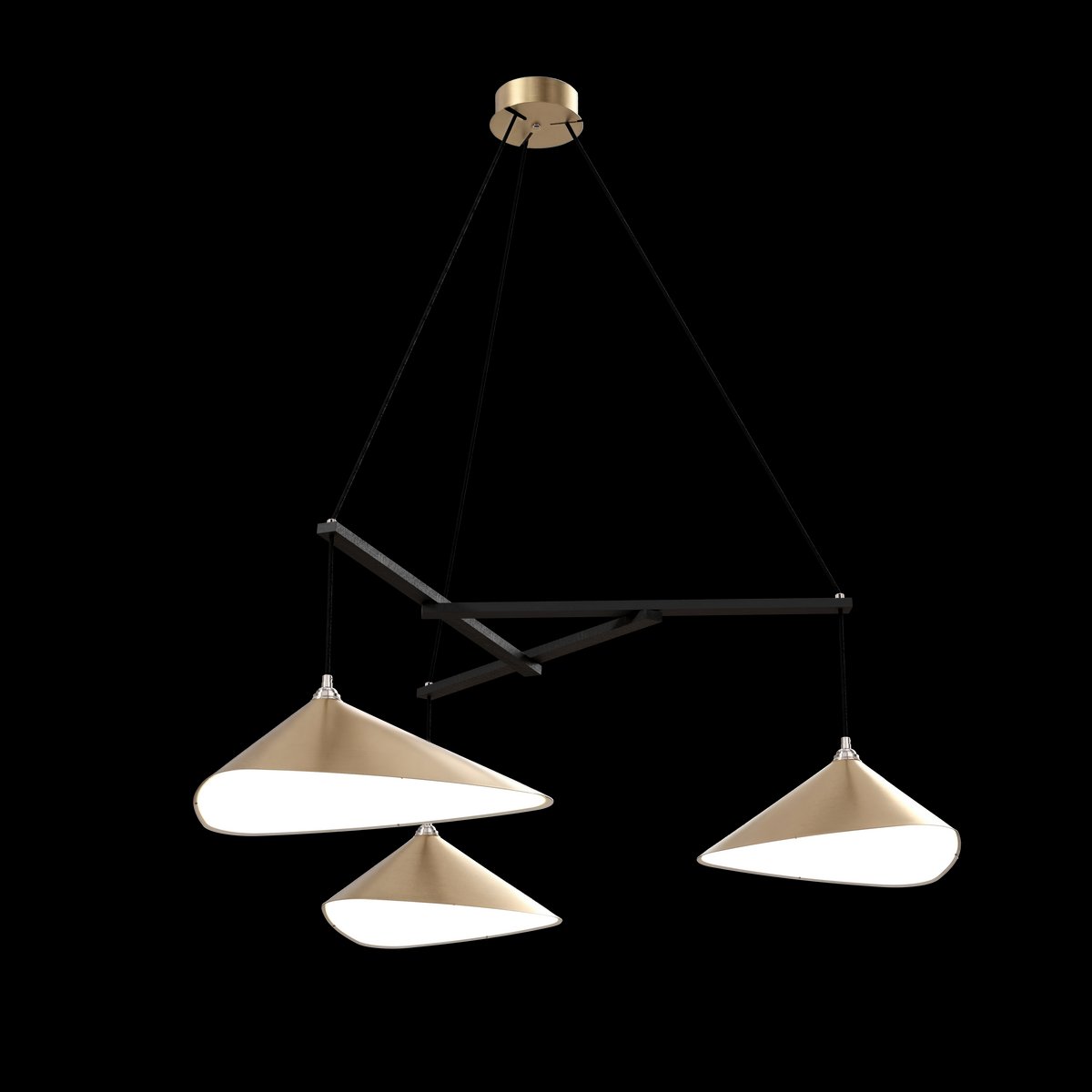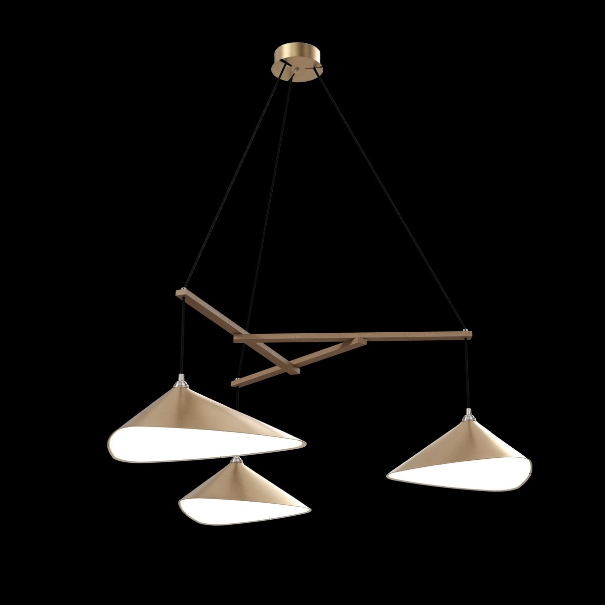 Dune 6 Vertikale Cluster Hängelampe mit Schirmen in Gold Metallic Ton von Daniel Becker für Moss Objects