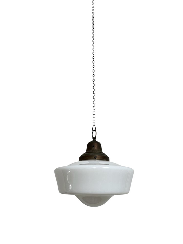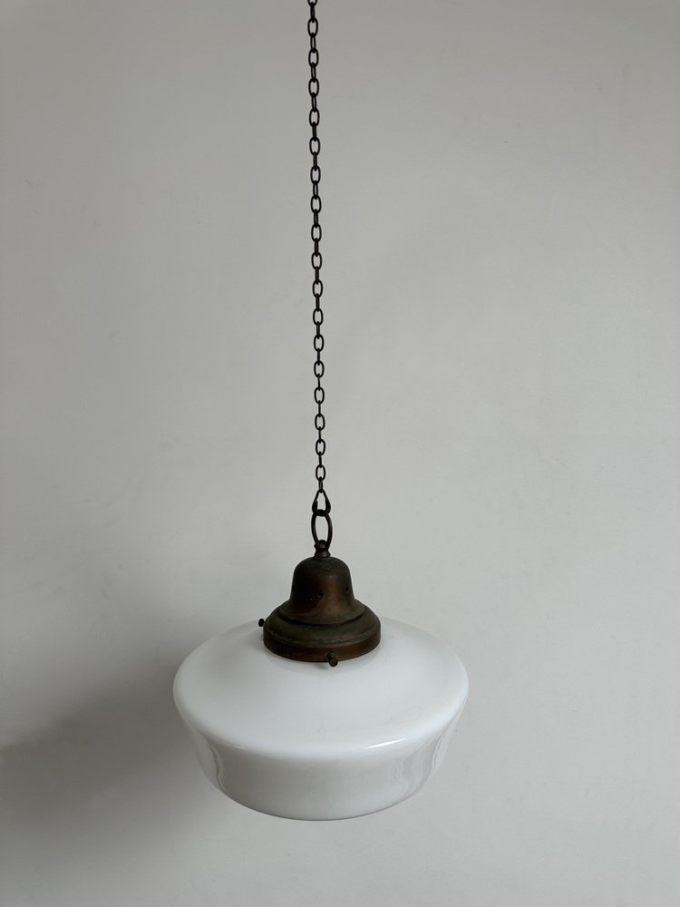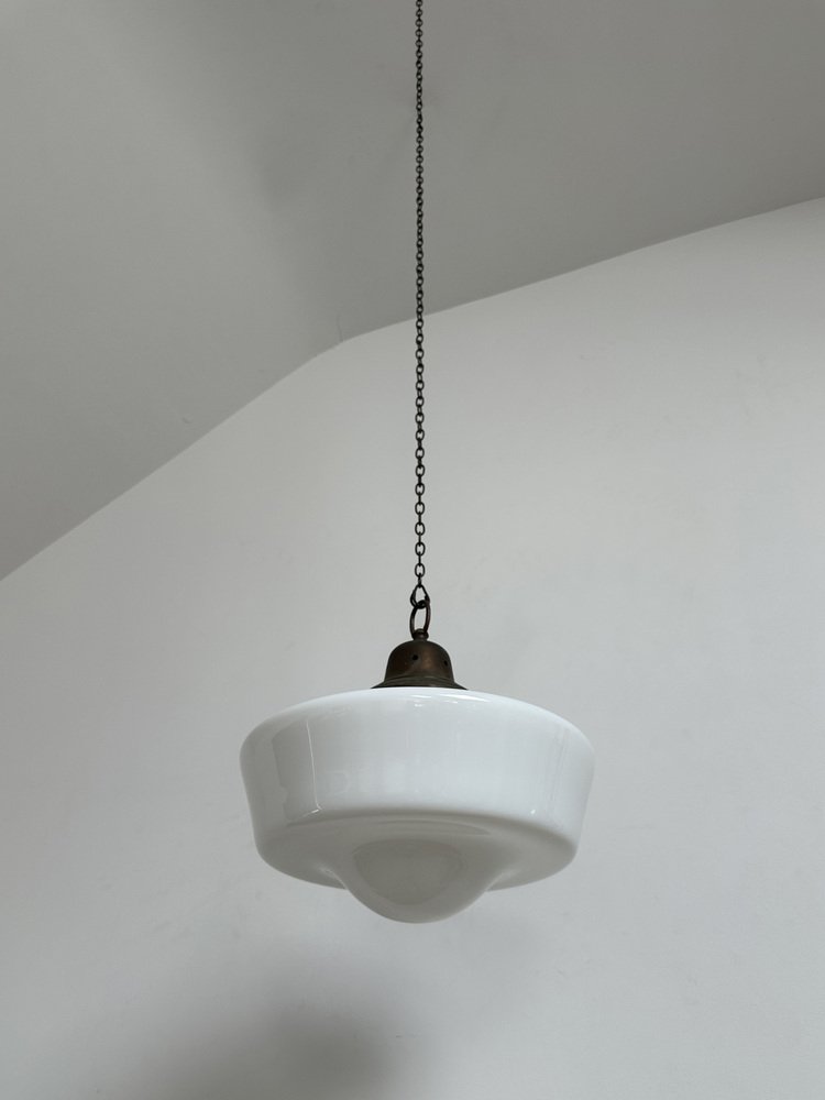 Englische Kirchen Hängelampe aus Milchglas, 1930er
