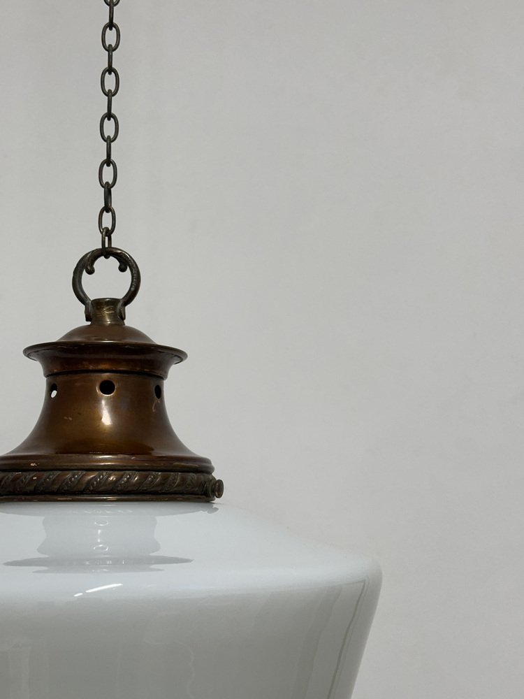 Vintage Bauhaus Hängelampe aus Milchglas aus Kupfer & satiniertem Opalglas von Körting & Mathiesen AG, 1920er