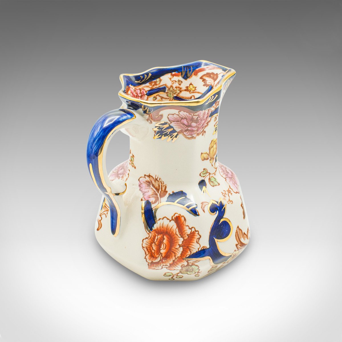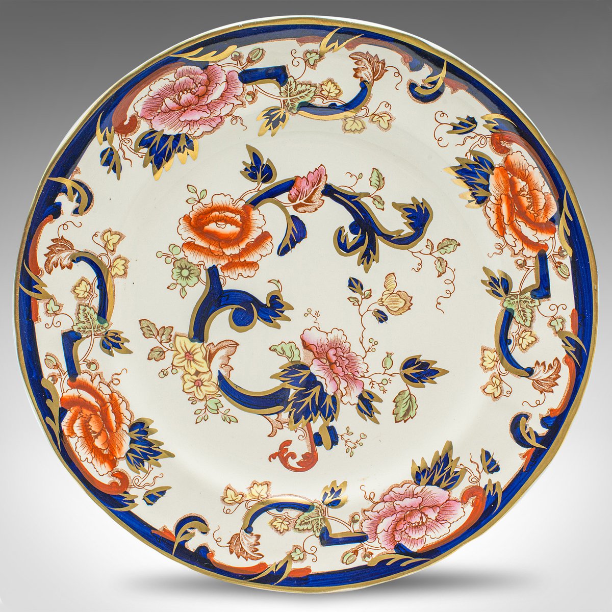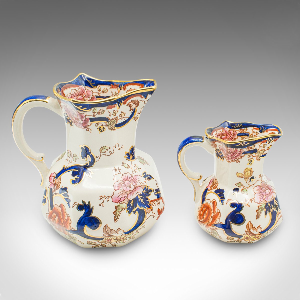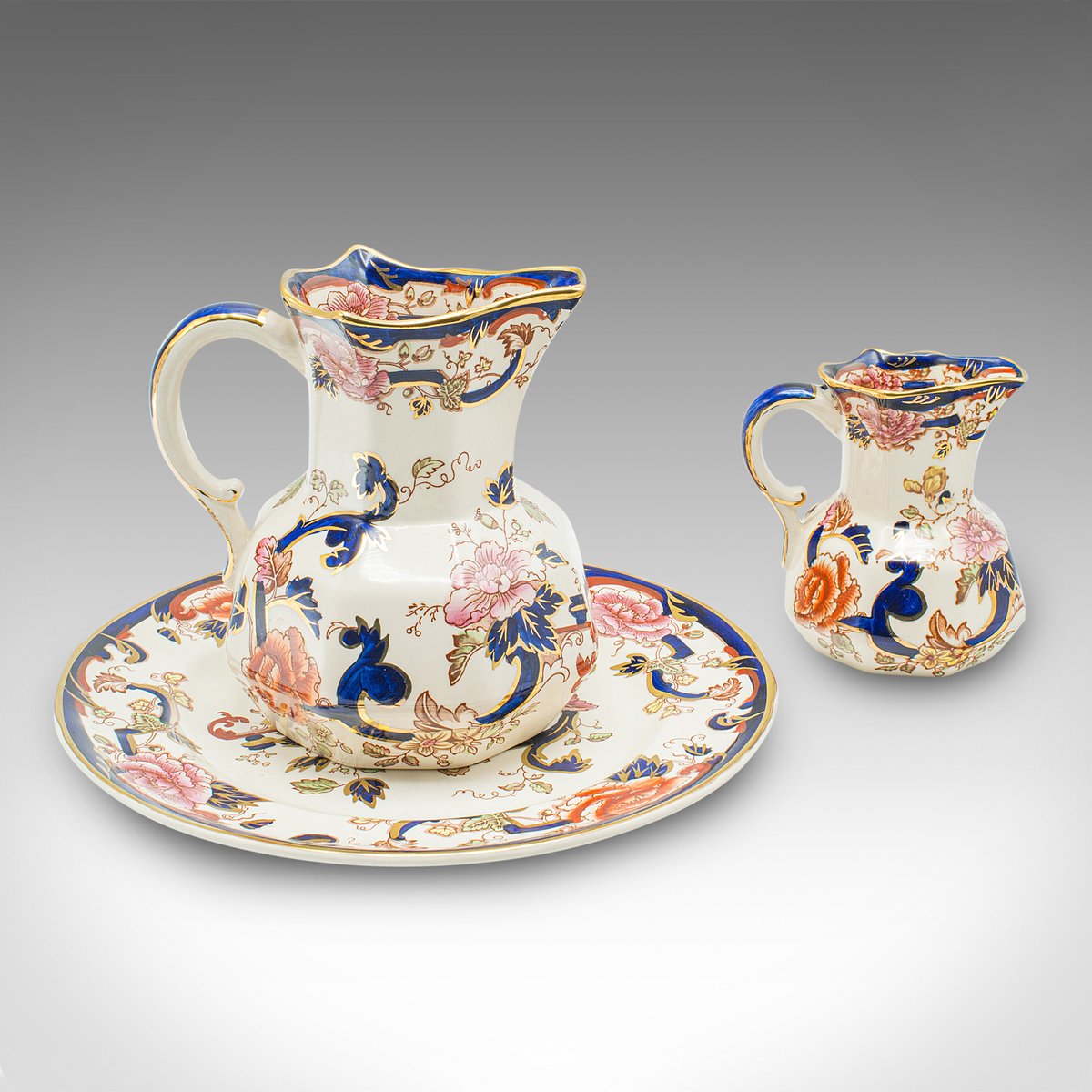 Each piece accentuated with deep cobalt blue, a gilt finish and colourful foliate pattern