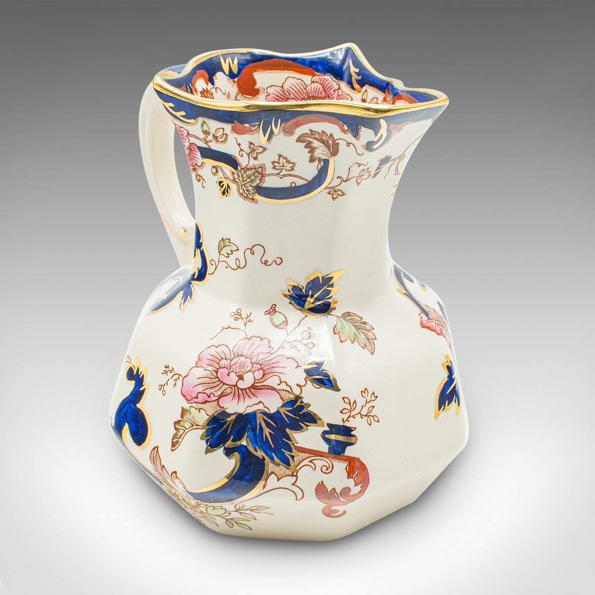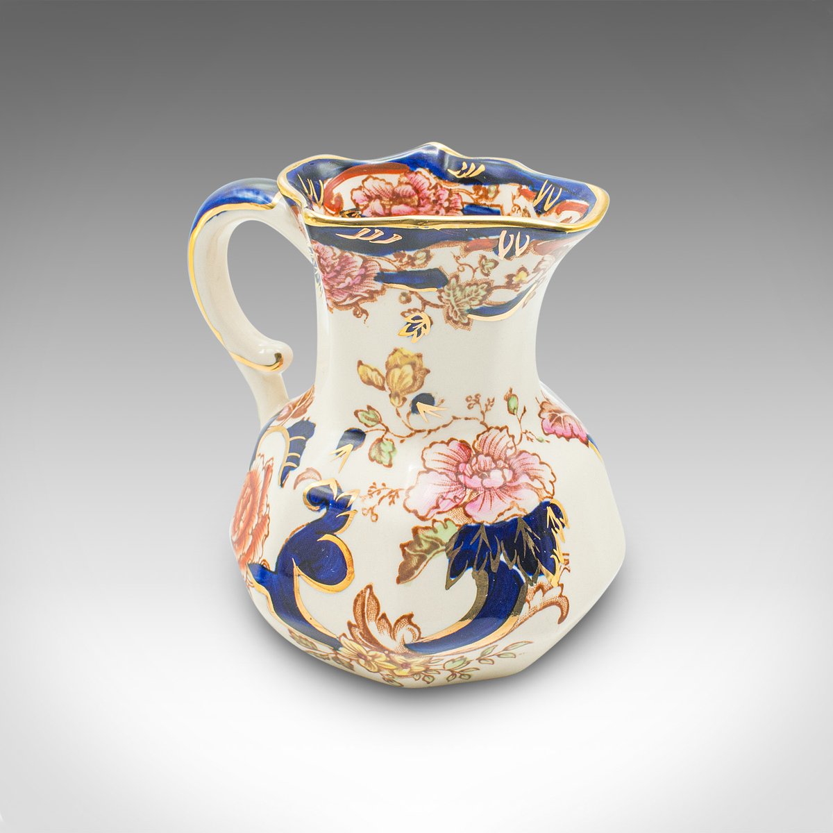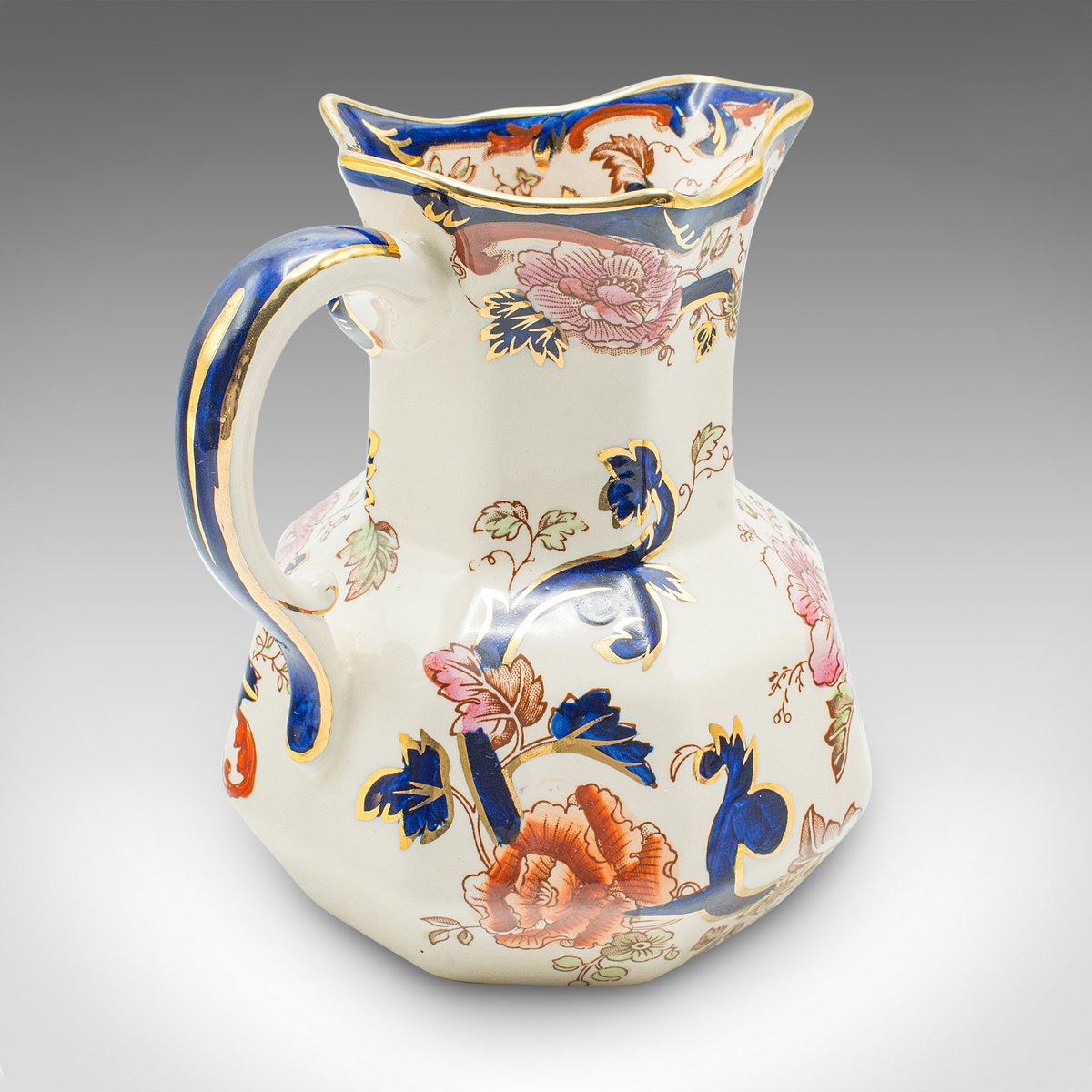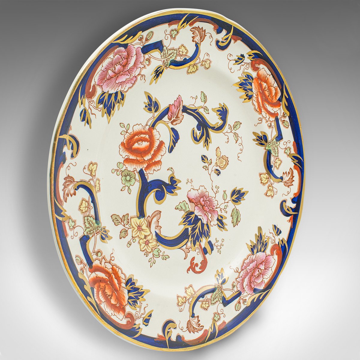 Each piece accentuated with deep cobalt blue, a gilt finish and colourful foliate pattern