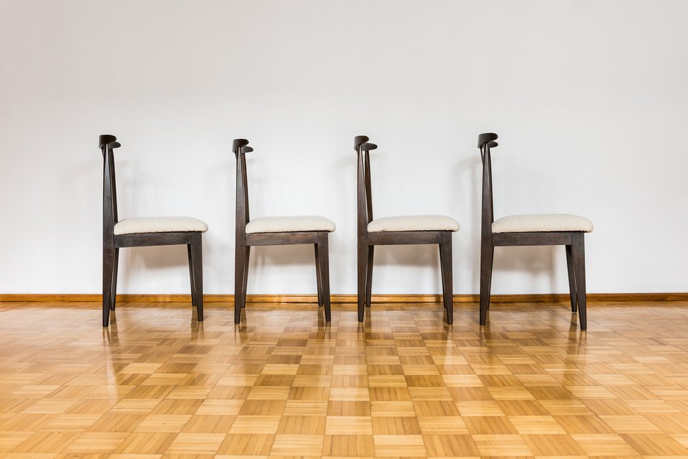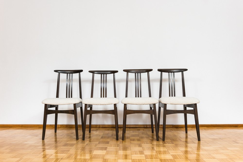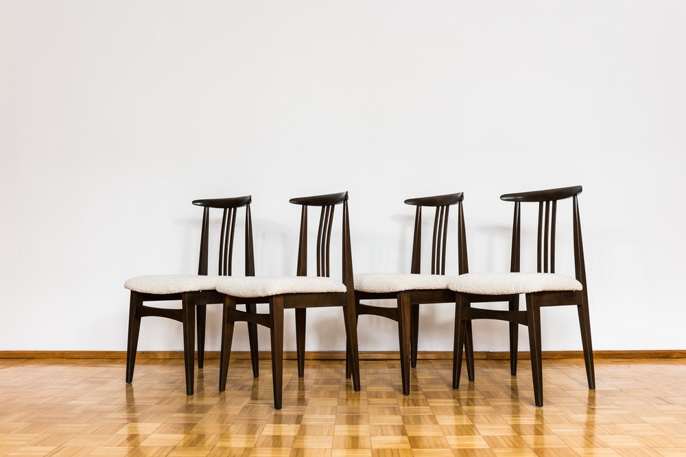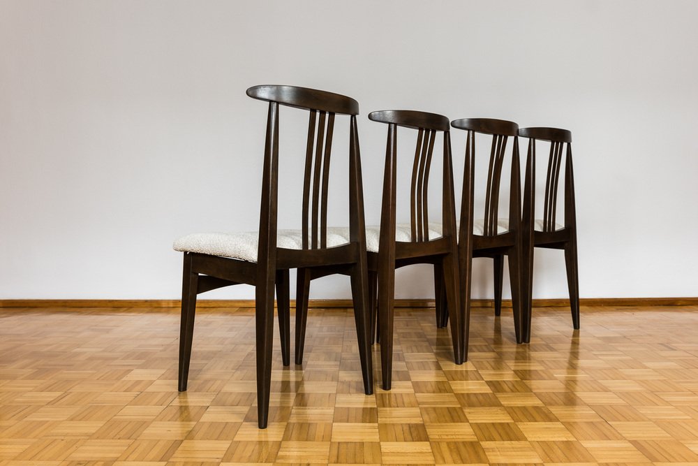 Esszimmerstühle aus Beige Boucle von M. Zieliński, 1960er, 4er Set