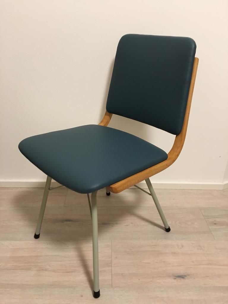 Esszimmerstühle aus Metall, Holz & Öko-Leder, 1960er, 2er Set