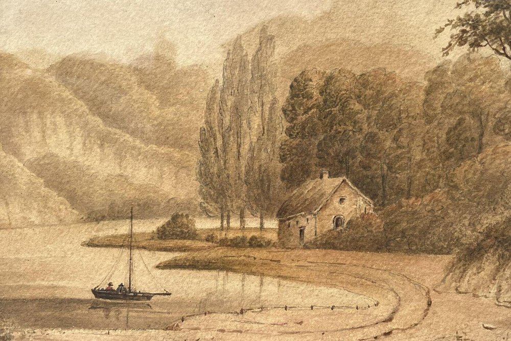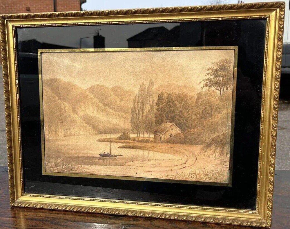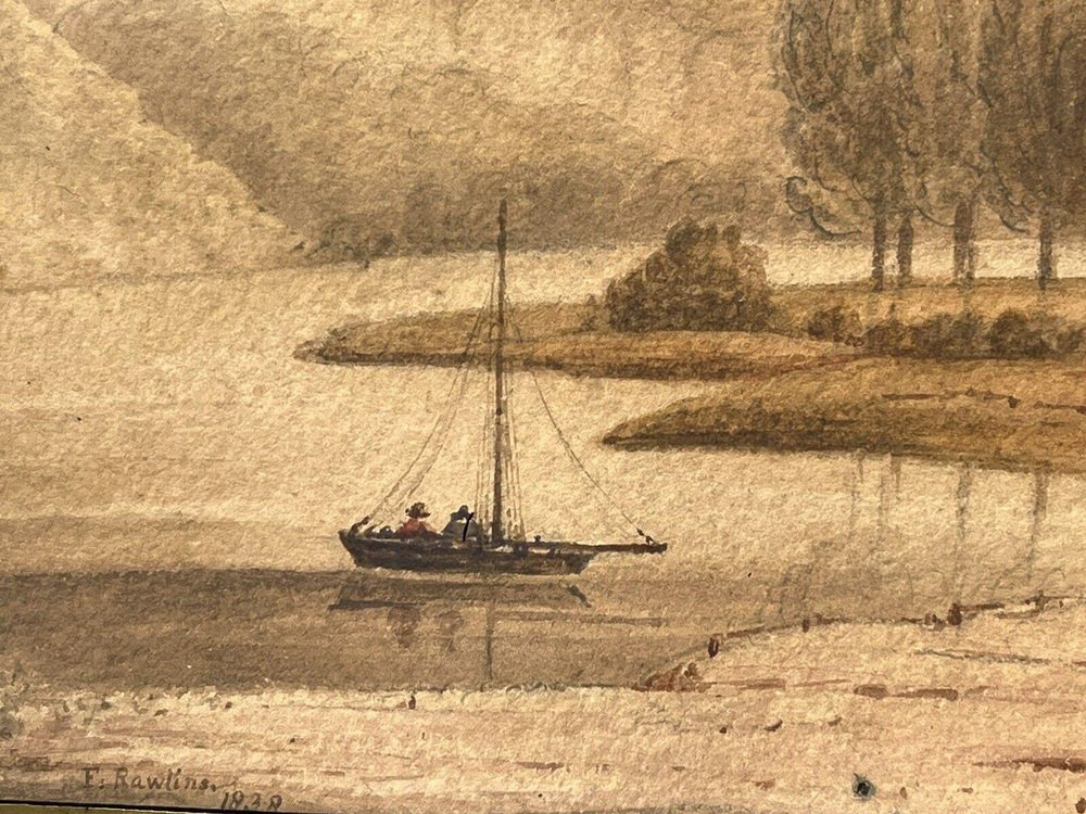 F. Rawlins, Maritime Szene, Aquarell, 1830, gerahmt