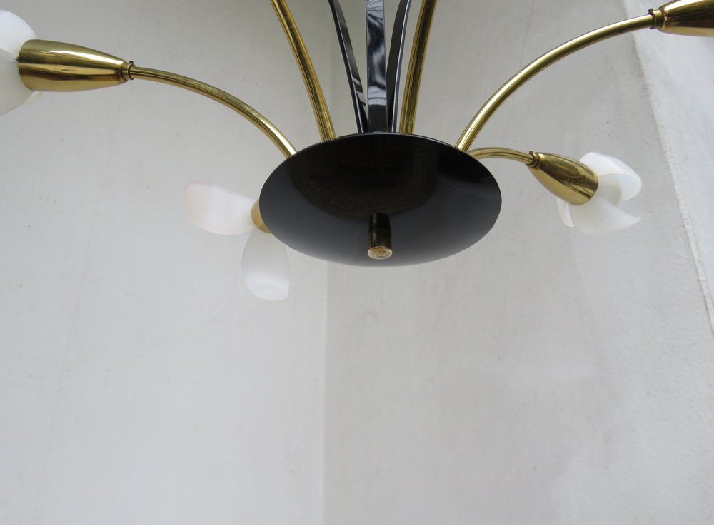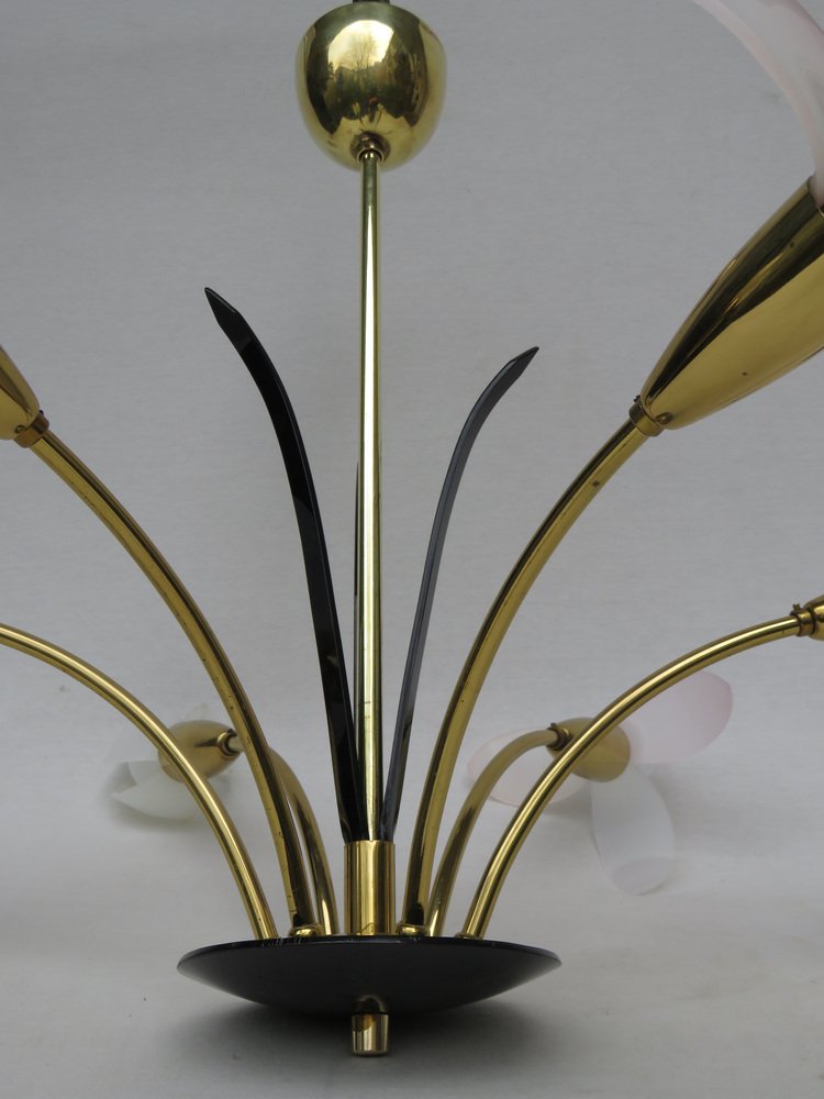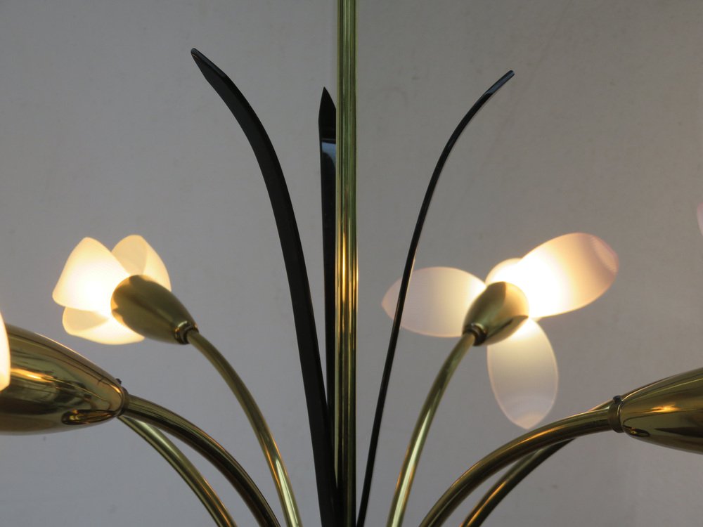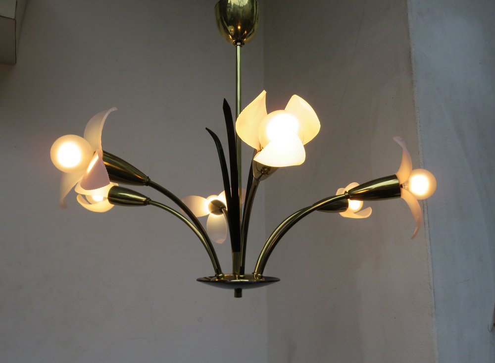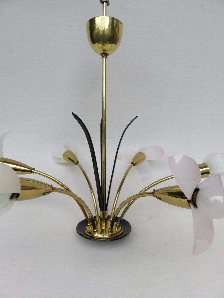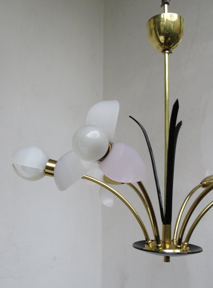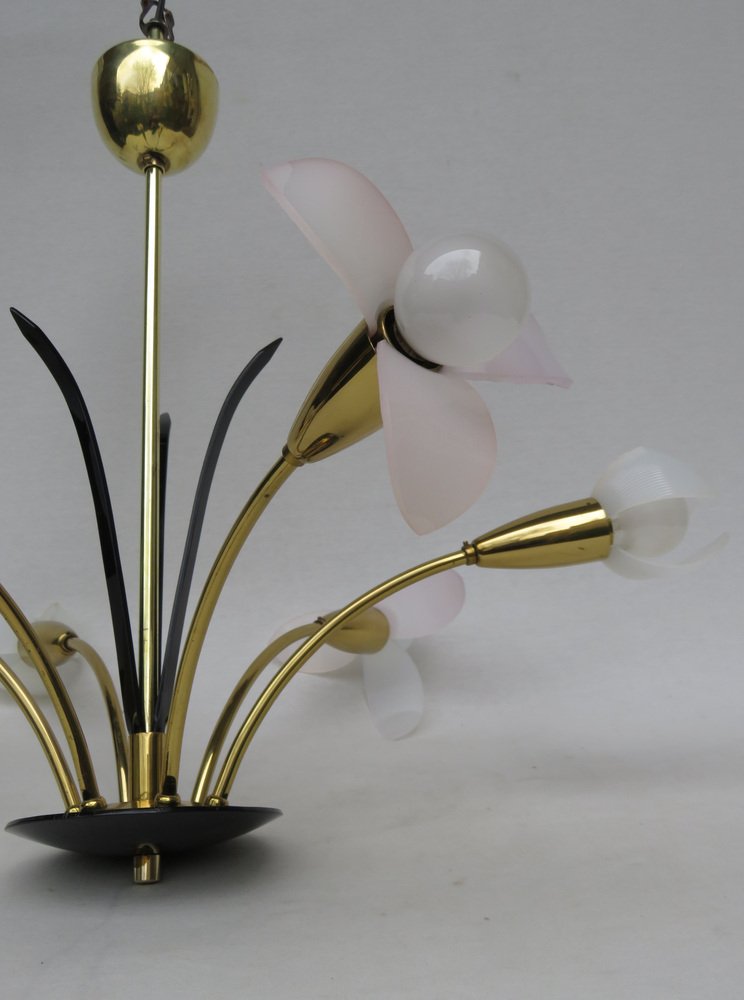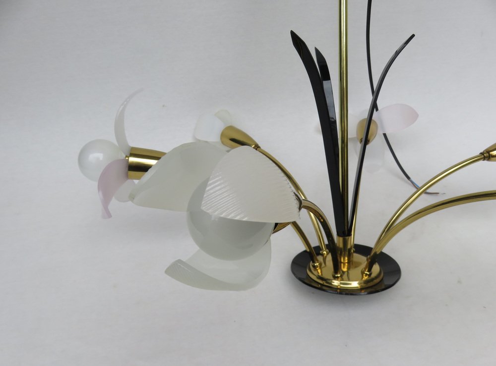Florale Deckenlampe mit Acrylglas Blumen, 1950er