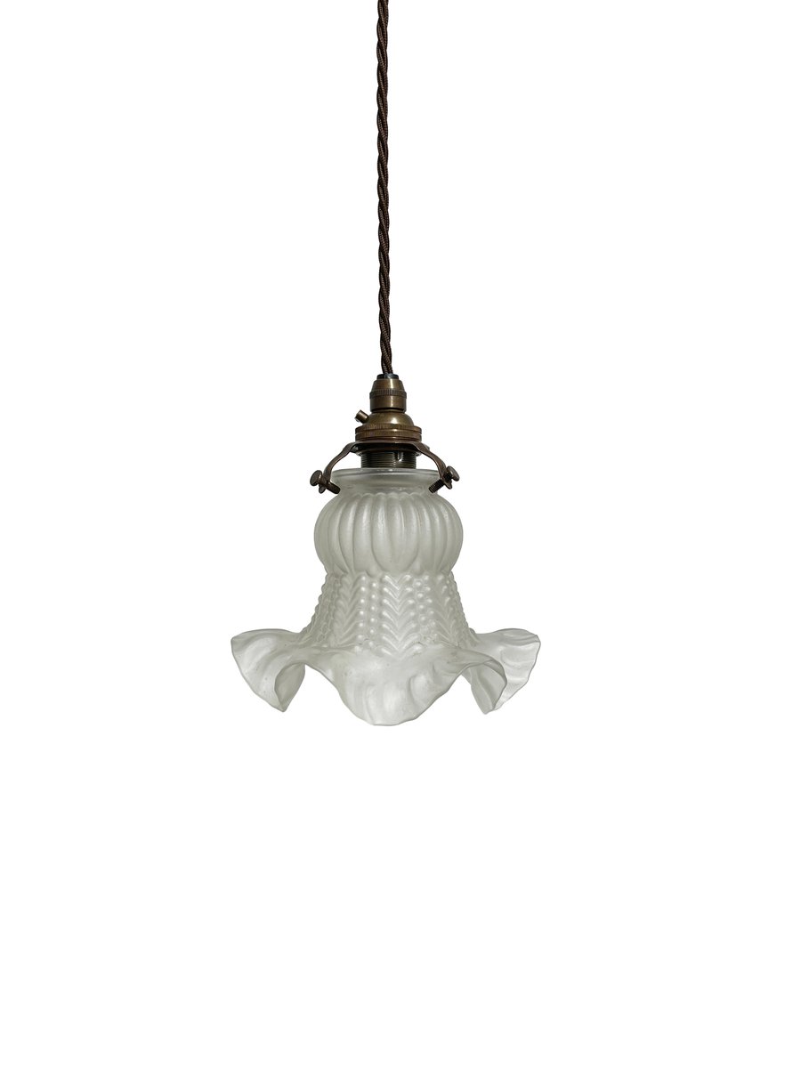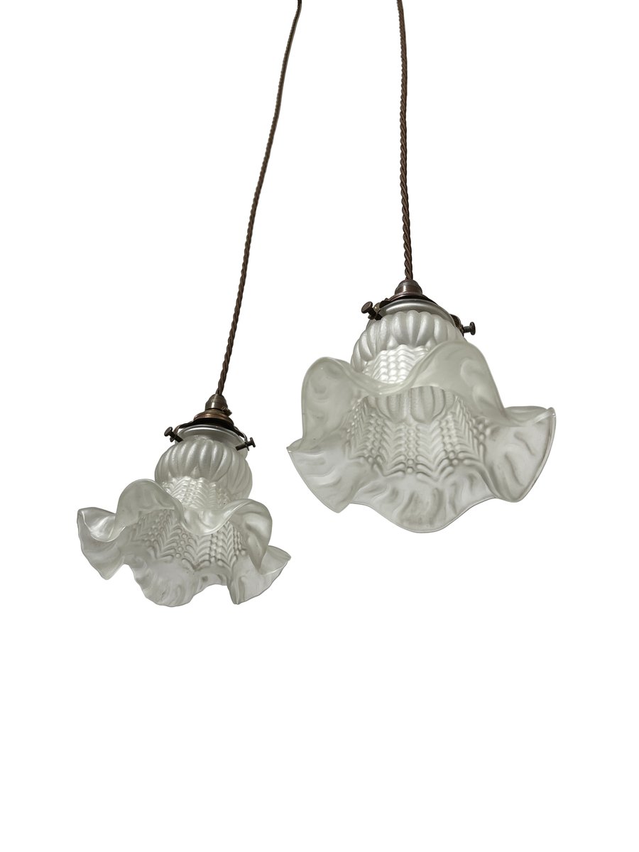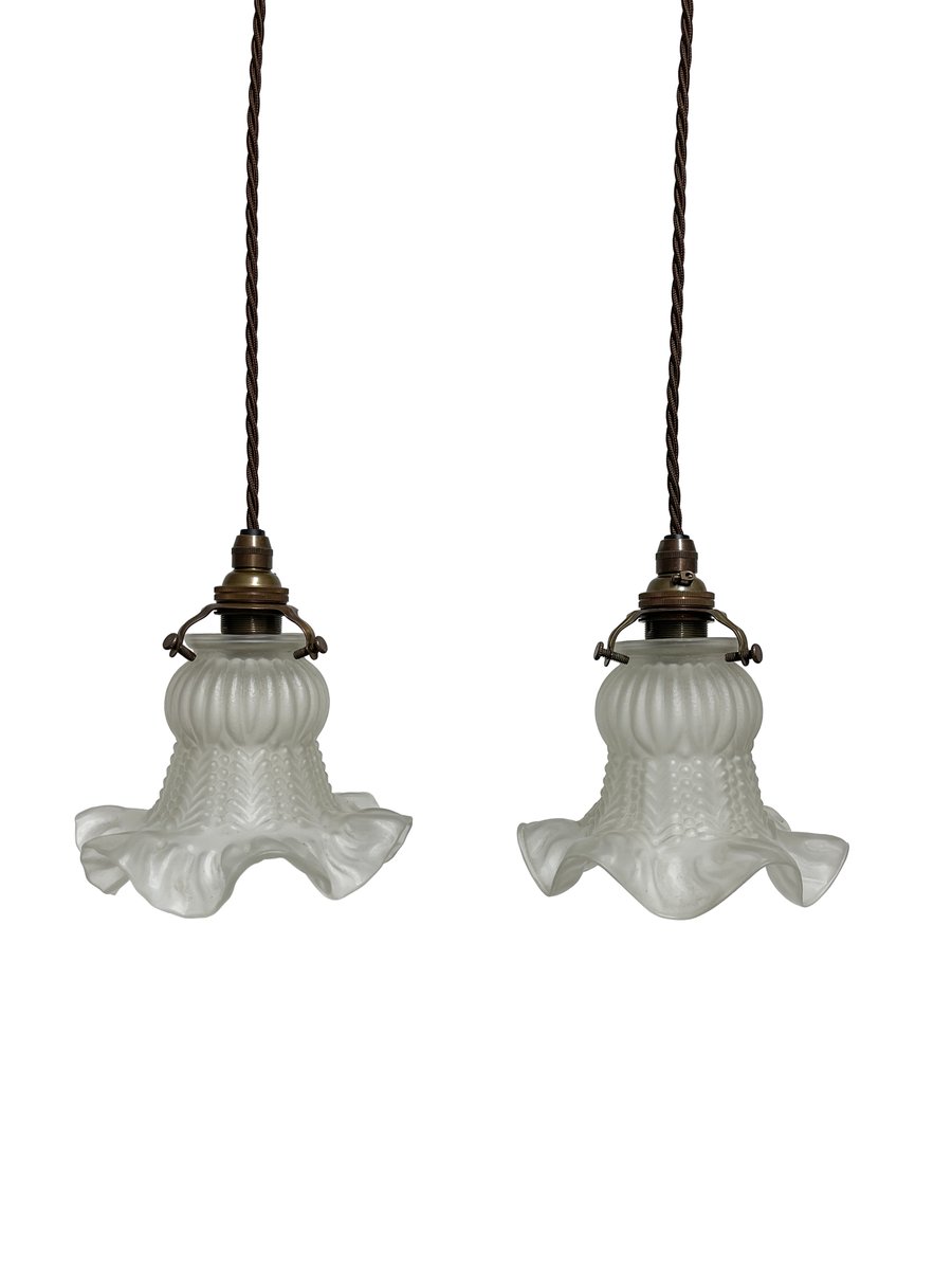 Florale französische Vintage Hängelampen aus Milchglas, 2er Set