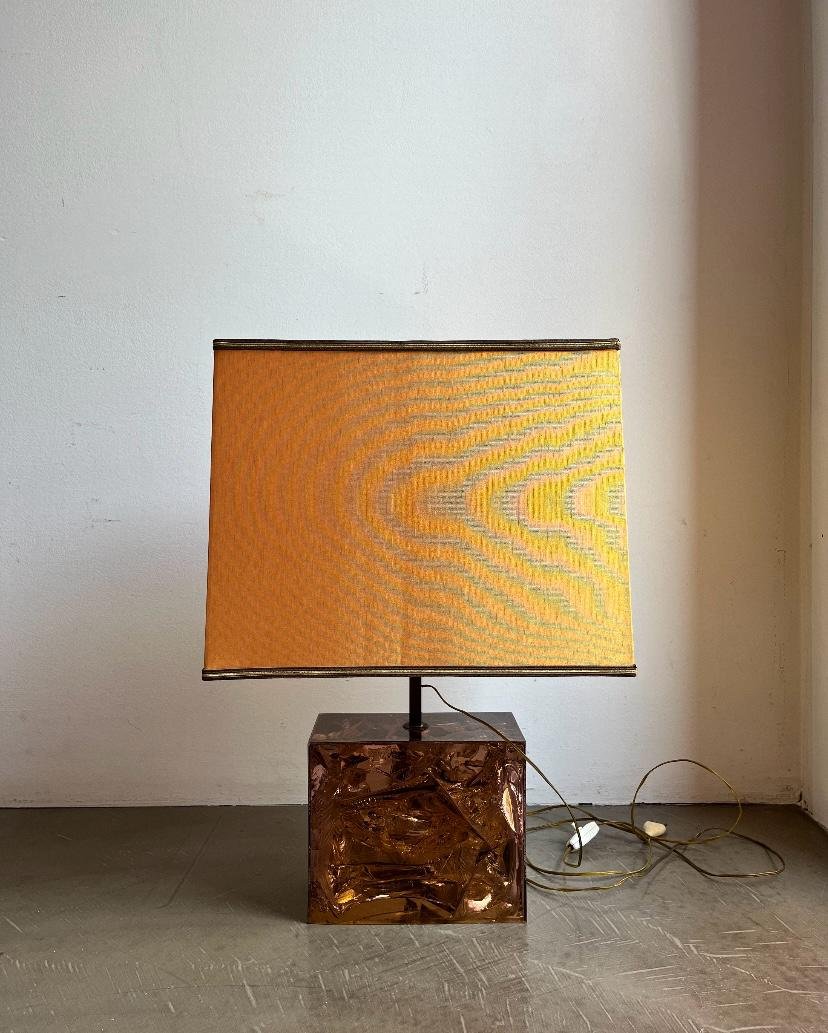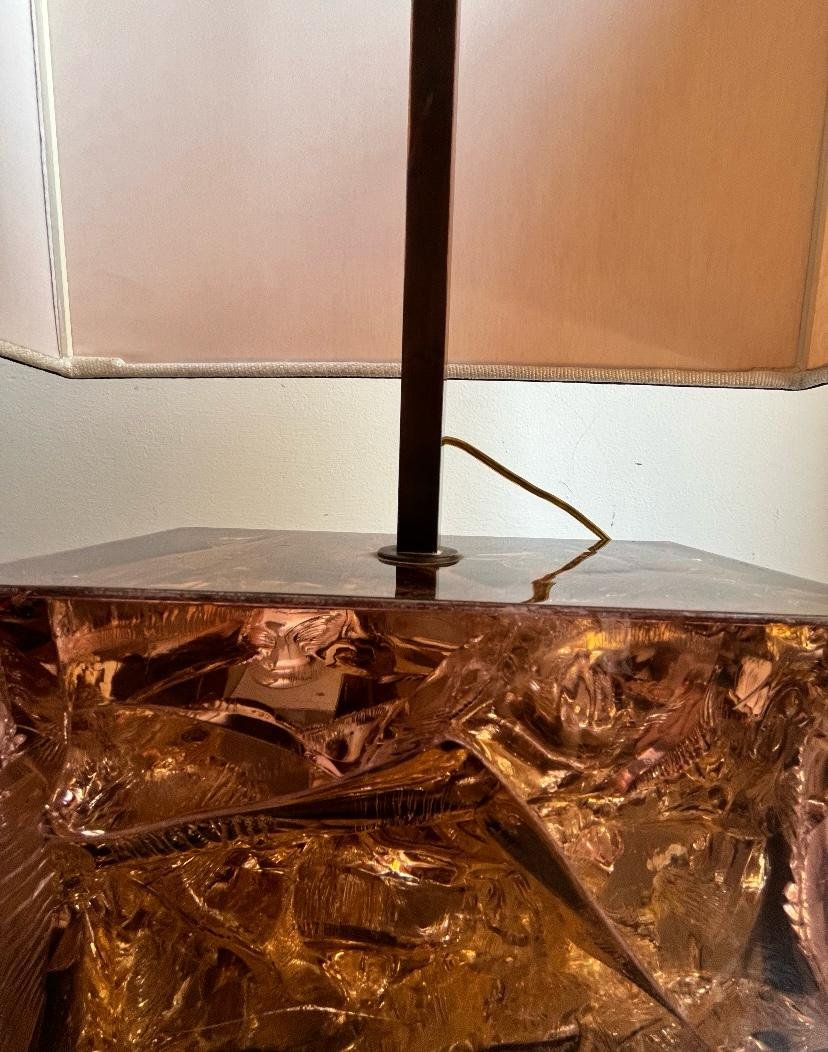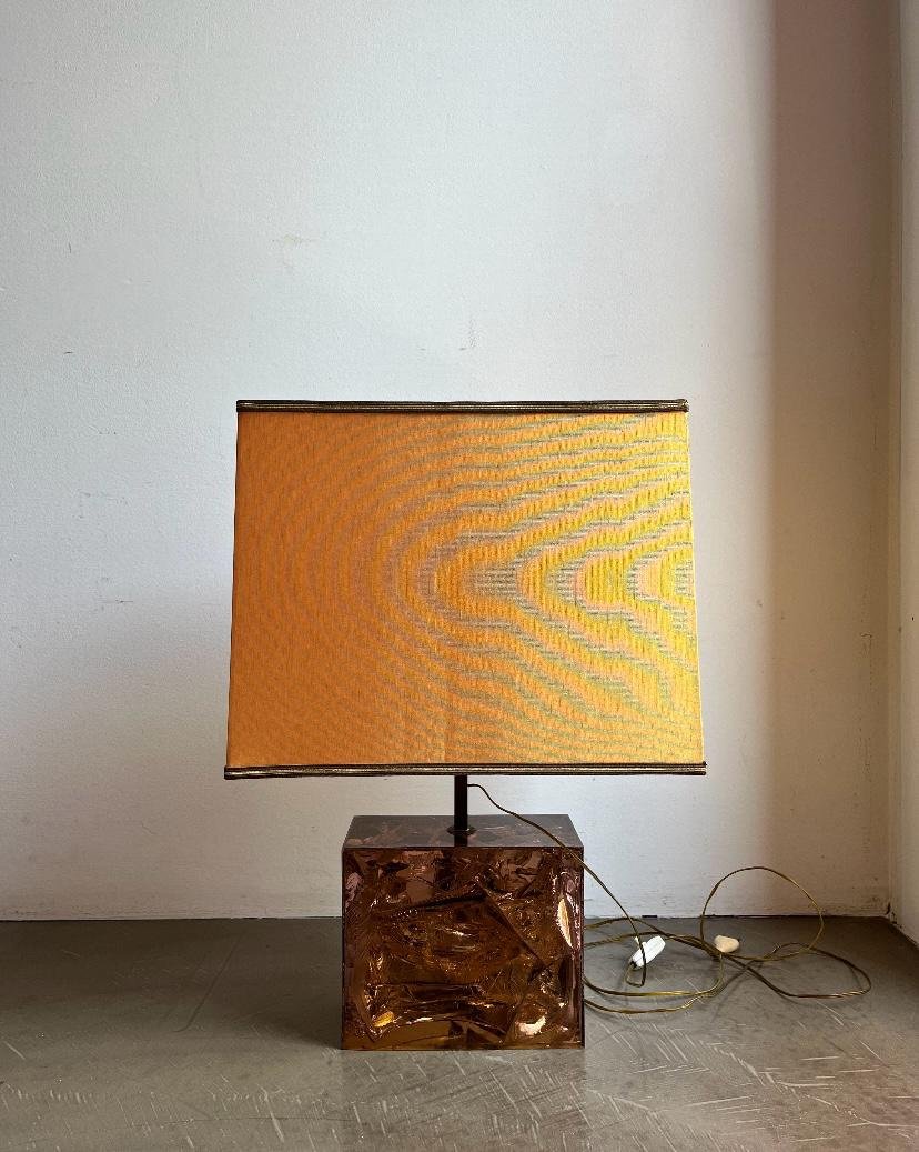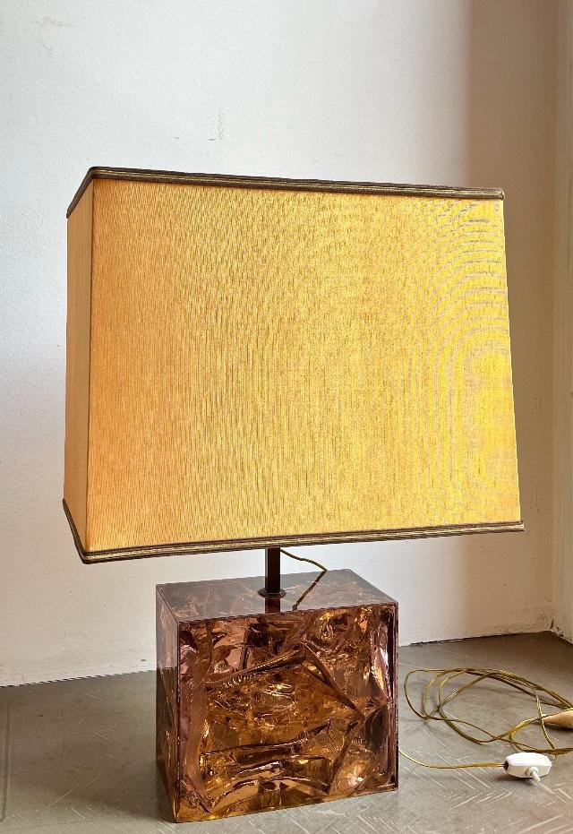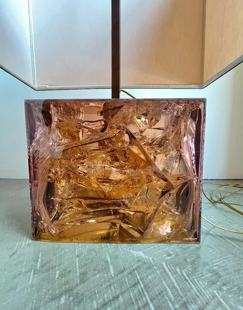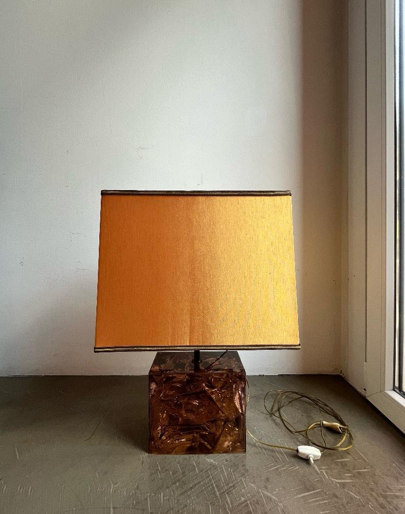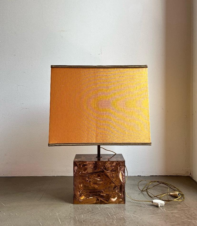 Französische Tischlampe mit Acrylglasfuß & Messingdetails, Italien, 1970er