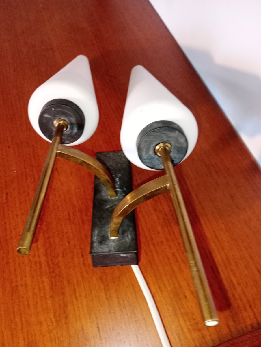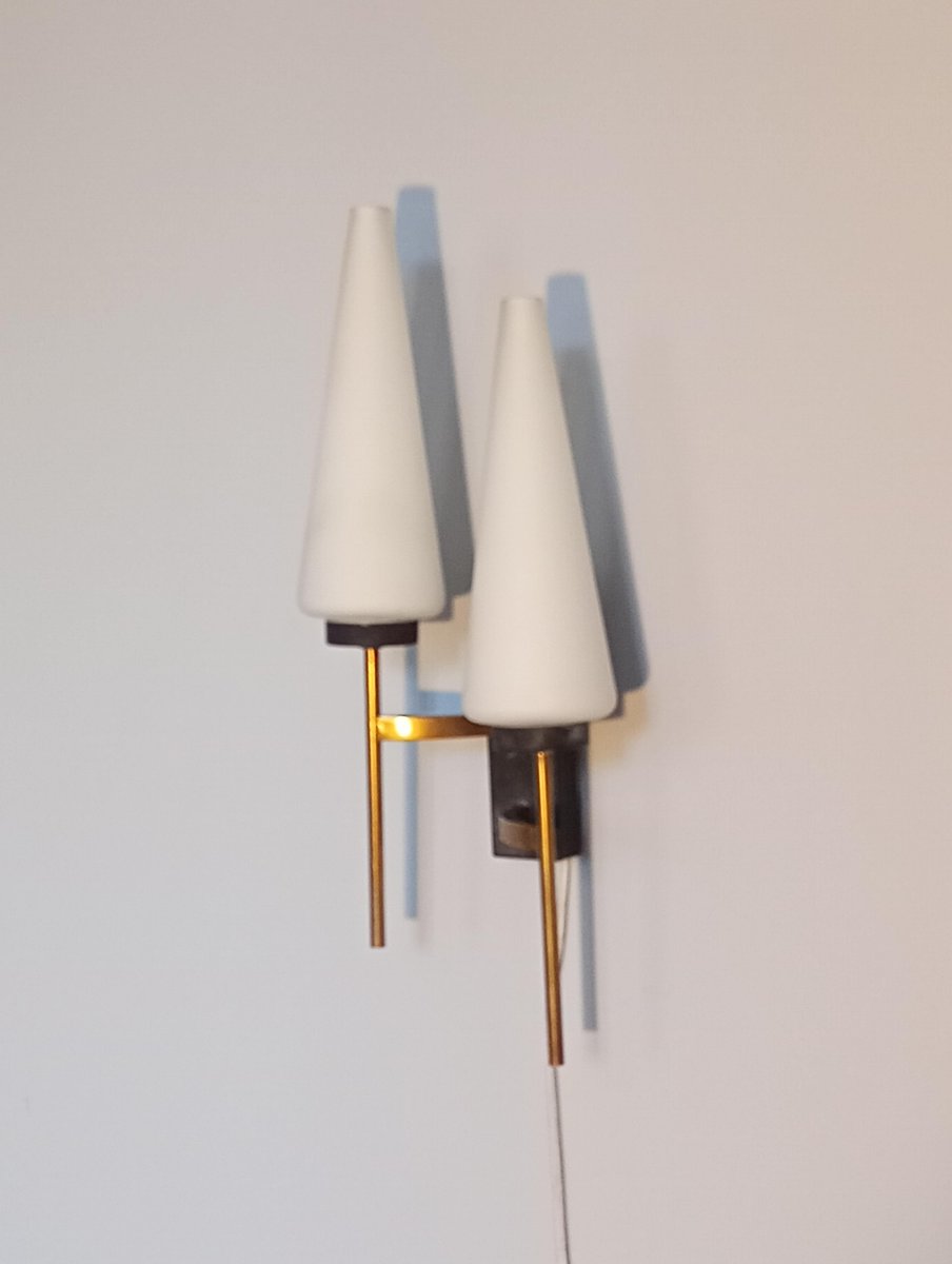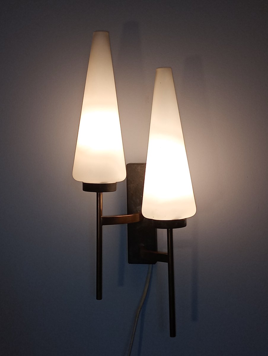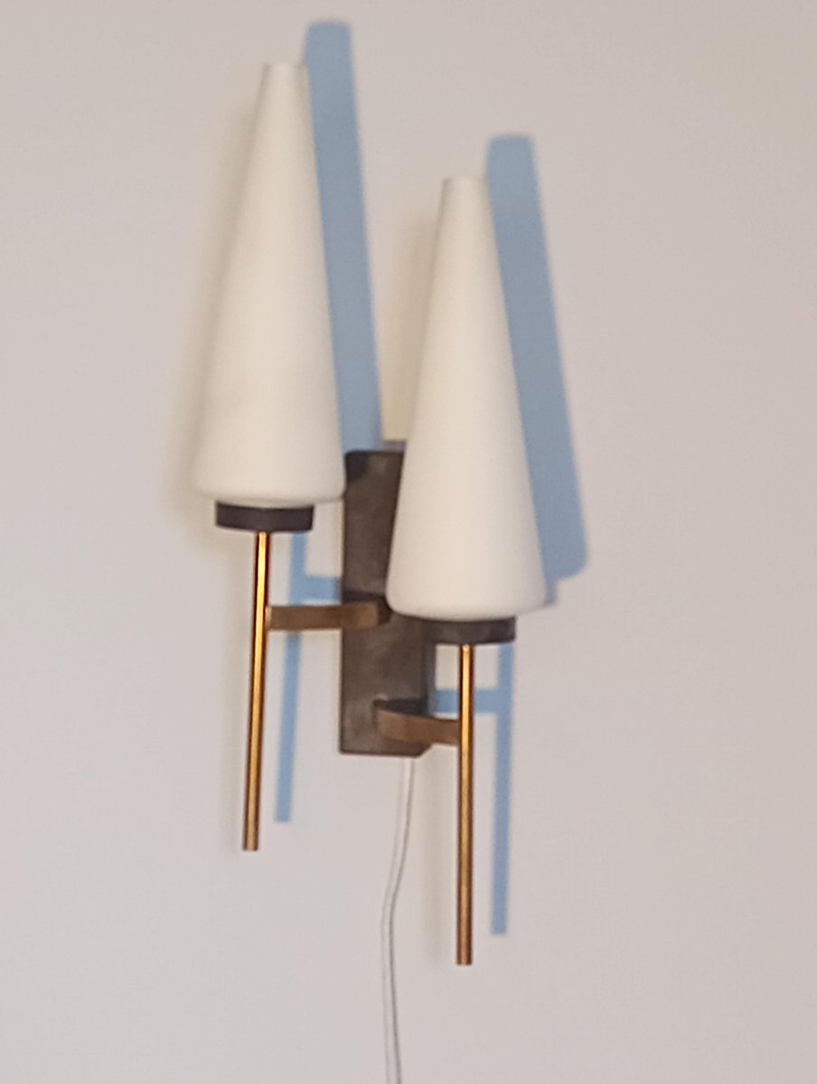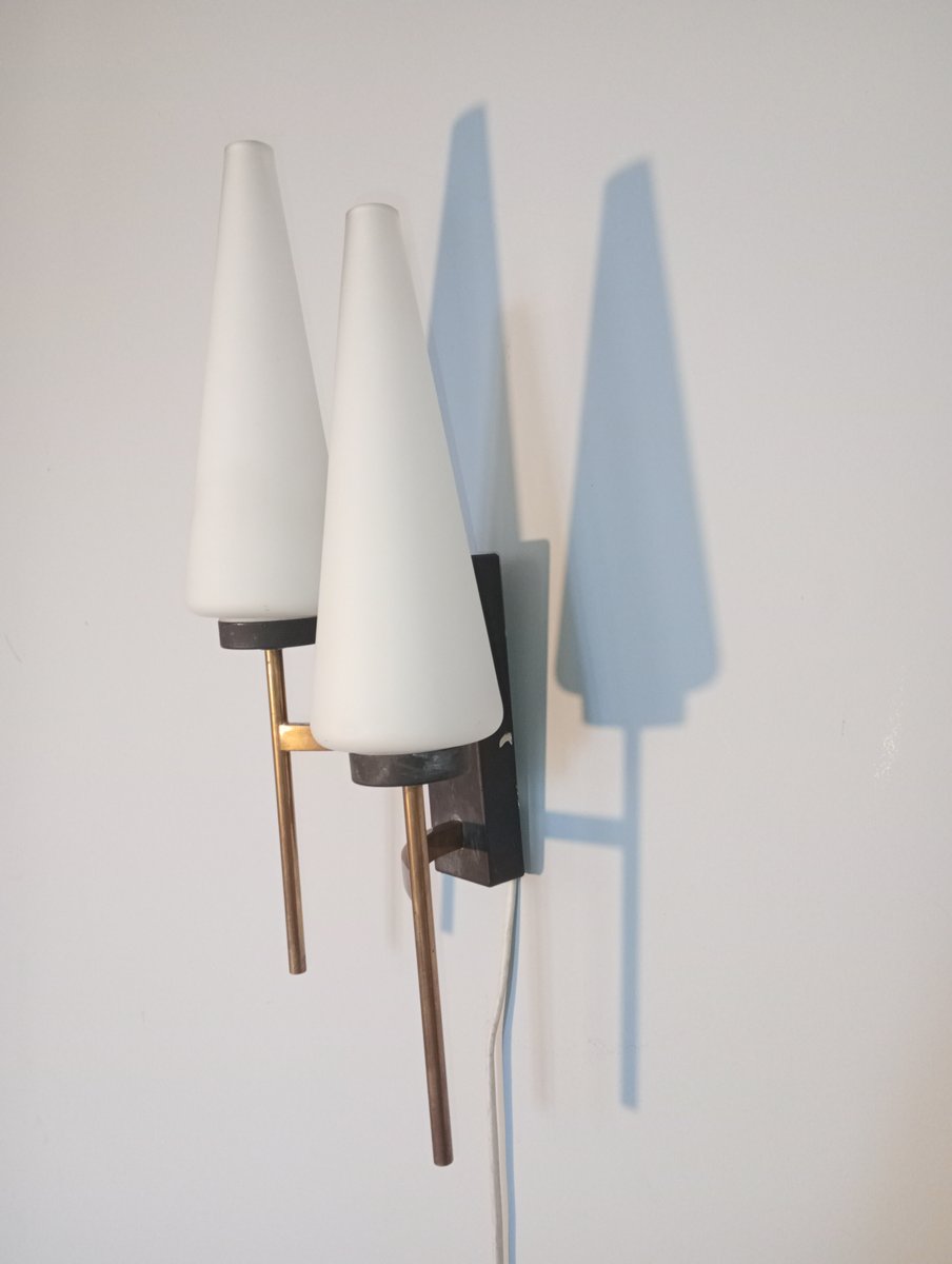 Französische Vintage Wandlampe aus Messing & Opalglas, 1950er