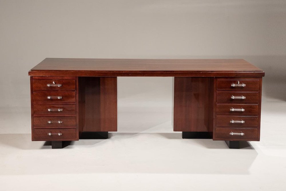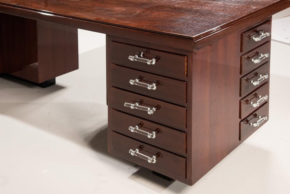 Französischer Deko Schreibtisch mit Glasknöpfen, 1940er