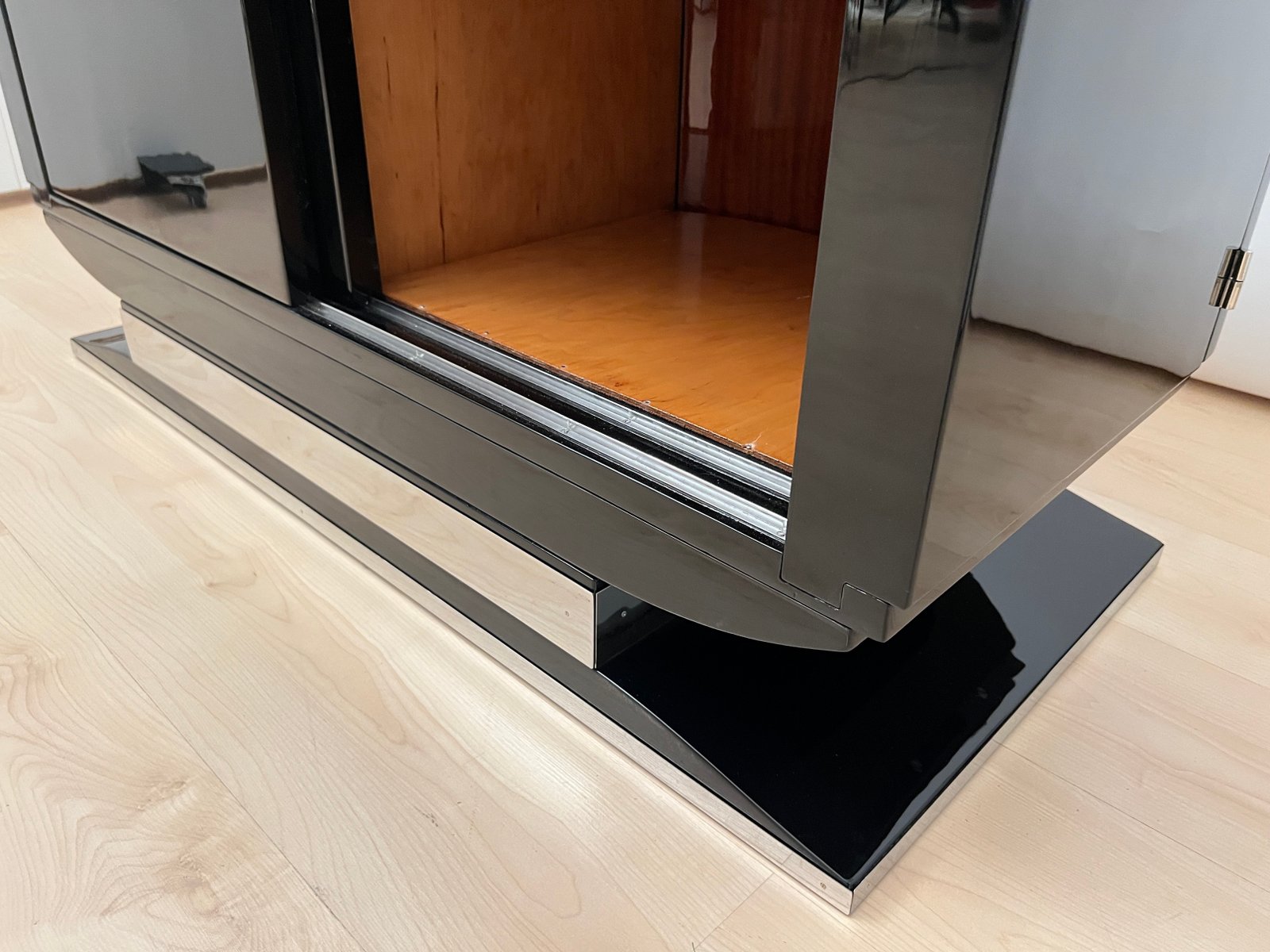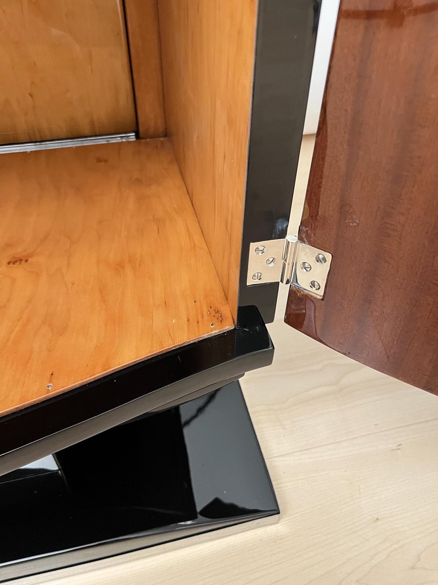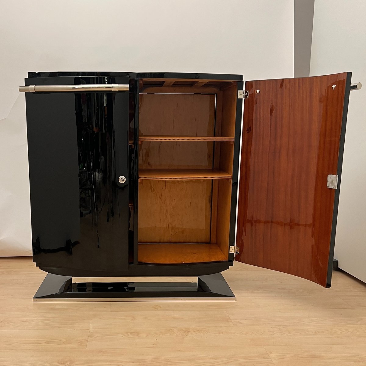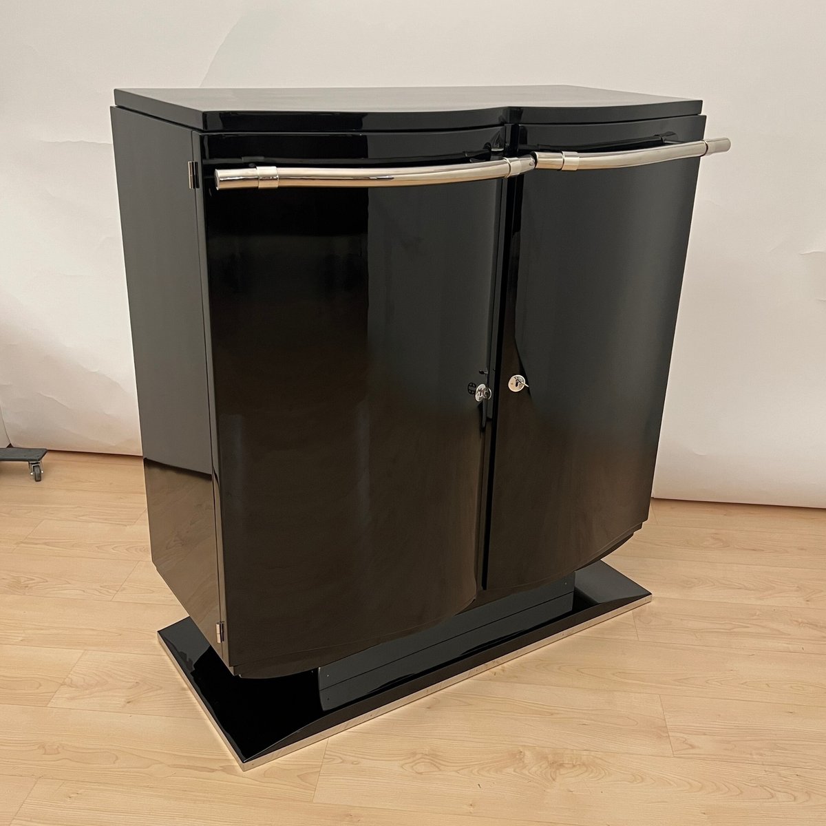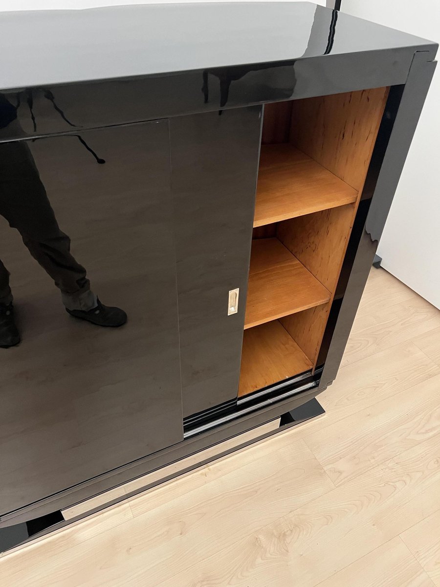 Französisches Art Deco Bar Sideboard aus Schwarzem Lack & Chrom, 1930