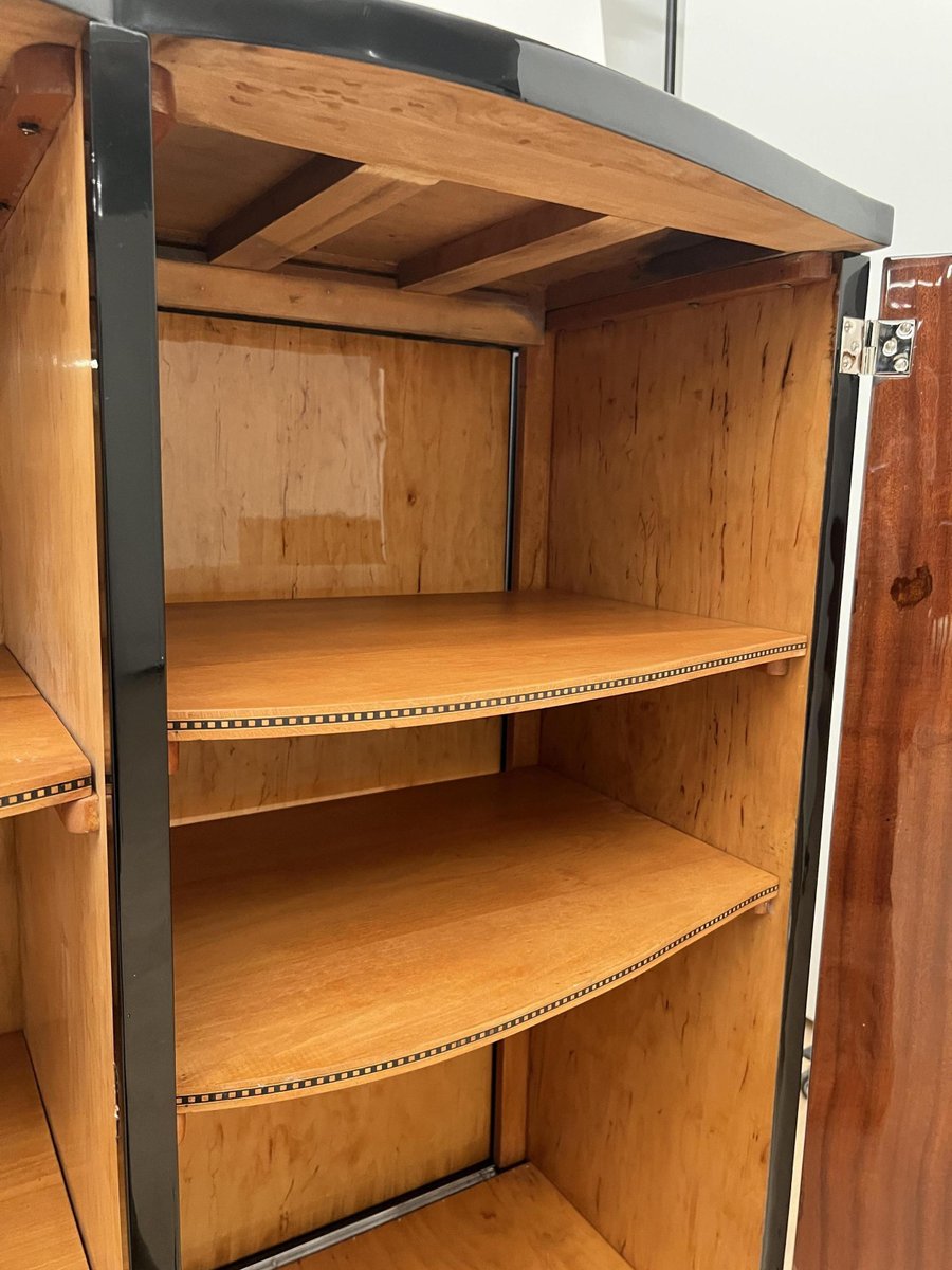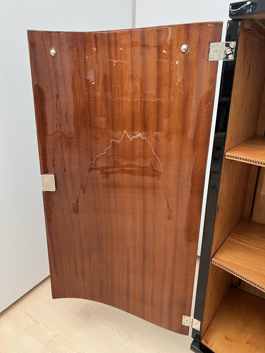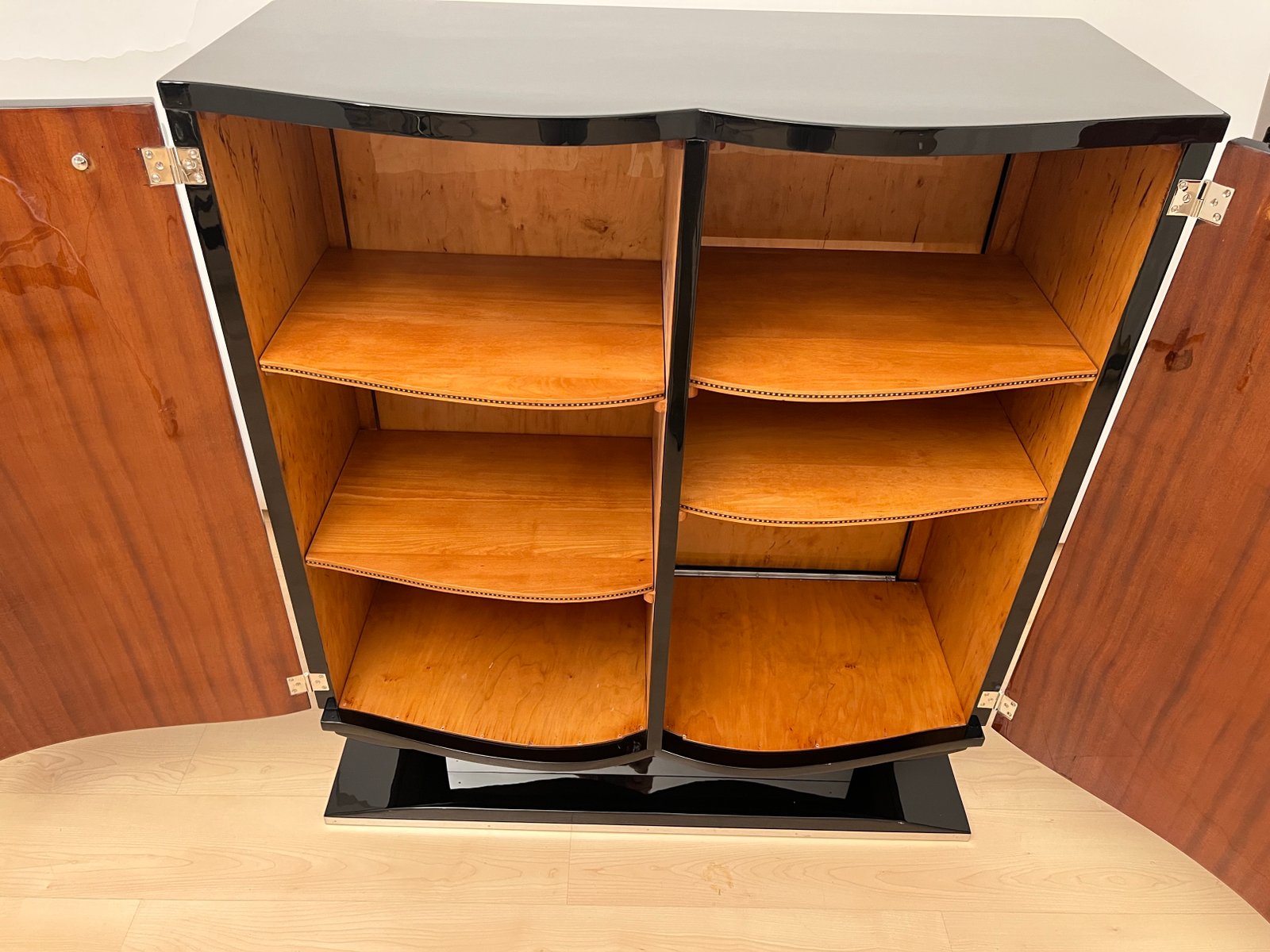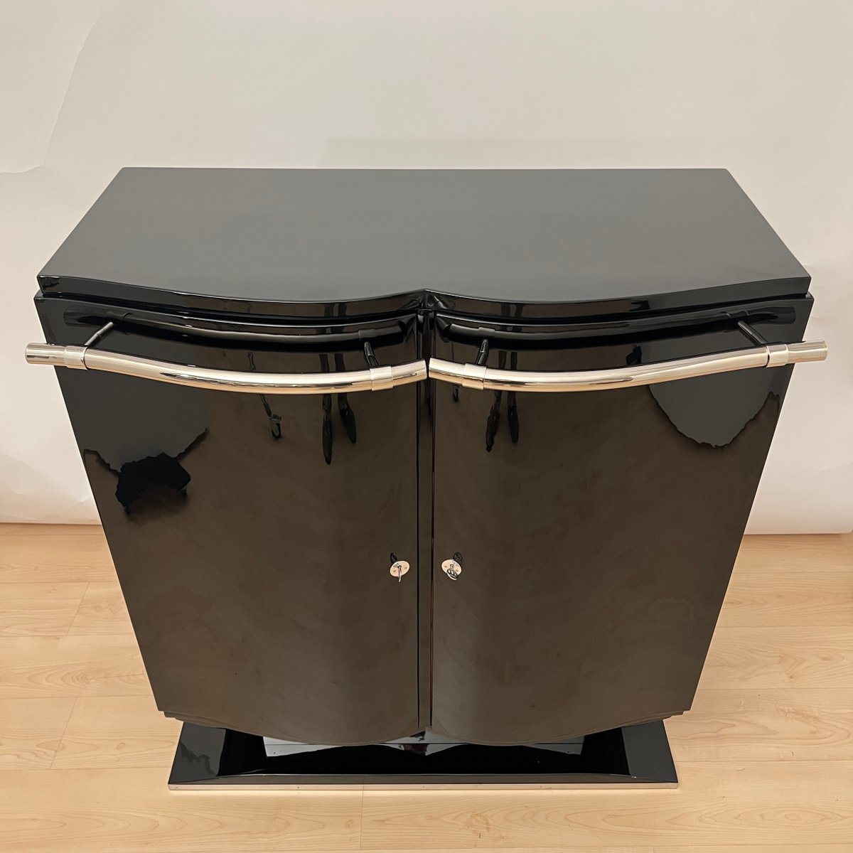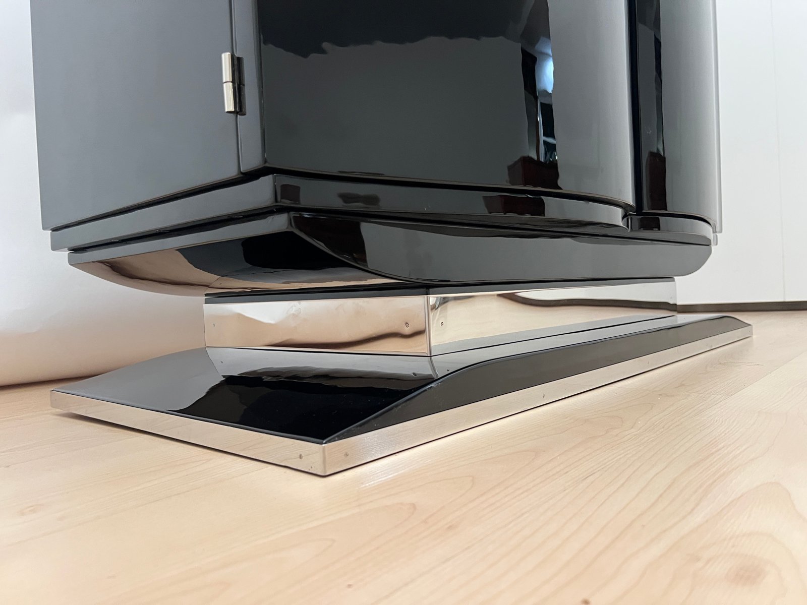 Französisches Art Deco Bar Sideboard aus Schwarzem Lack & Chrom, 1930