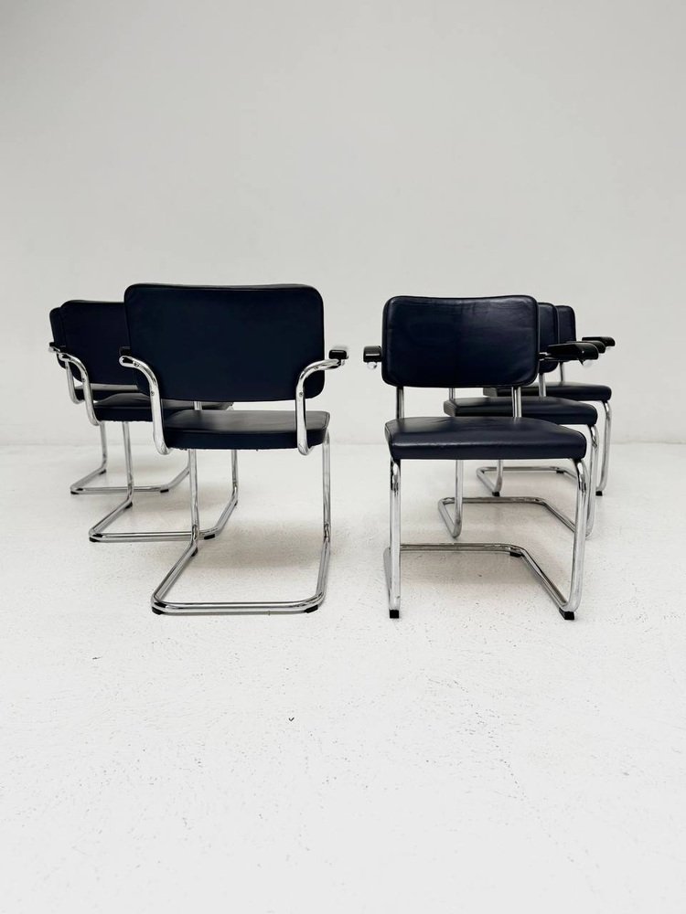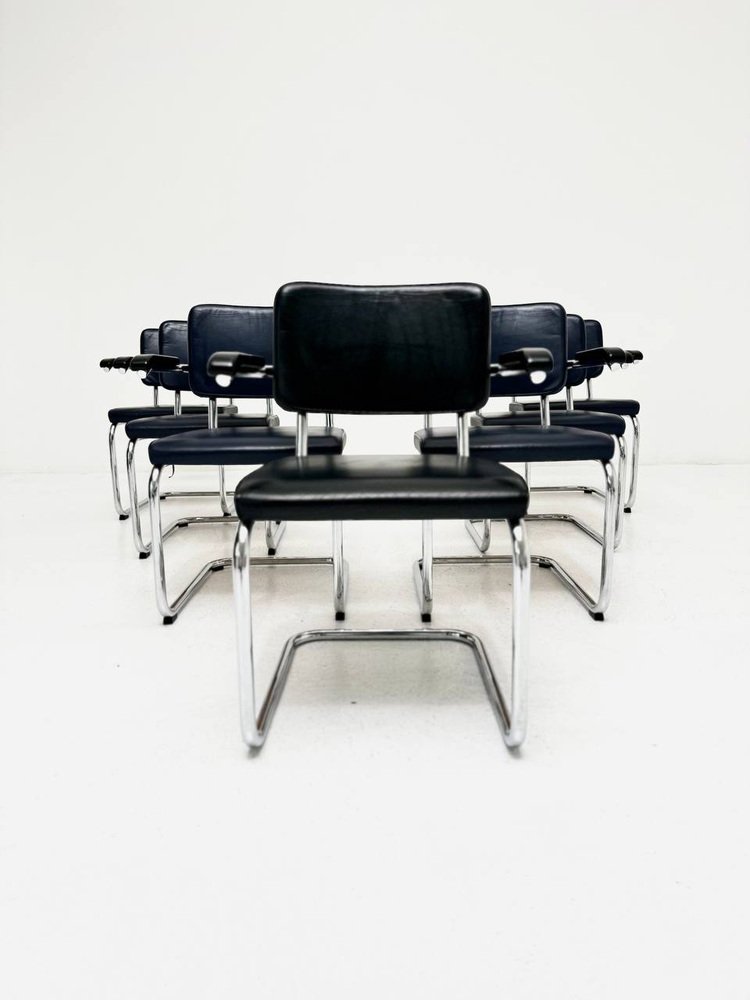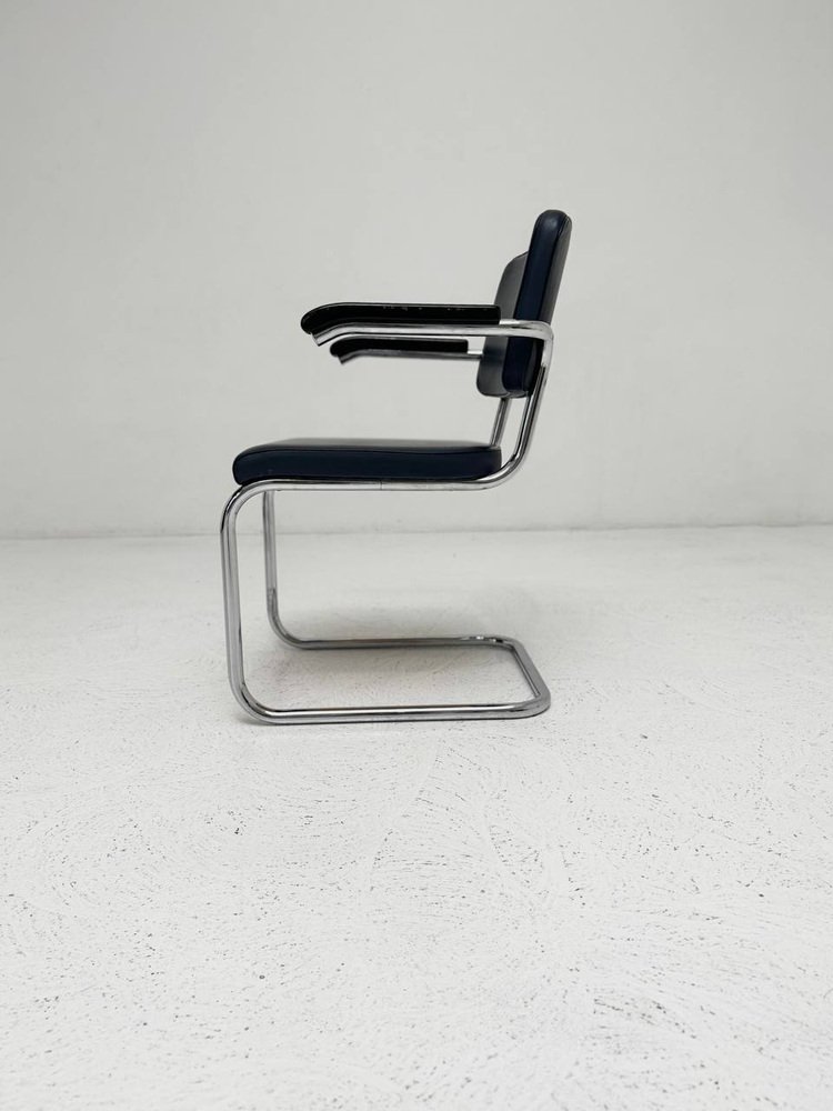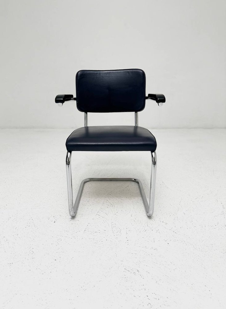 The S 64 PV cantilever chair from Thonet, designed by Marcel Breuer in the 1920s, is an iconic tubular steel classic that combines modern elegance and timeless design. with a harmonious combination of tubular steel frame, wooden elements and leather upholstery, this chair is not only a design icon of the Bauhaus, but also a versatile piece of furniture for conference rooms, restaurants, offices or private living spaces.
