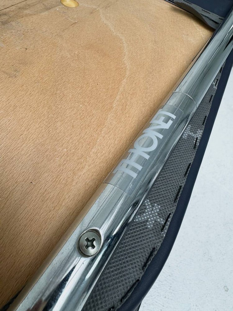 Material: Verchromtes Stahlrohr, Holz, Lederpolster