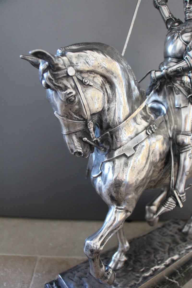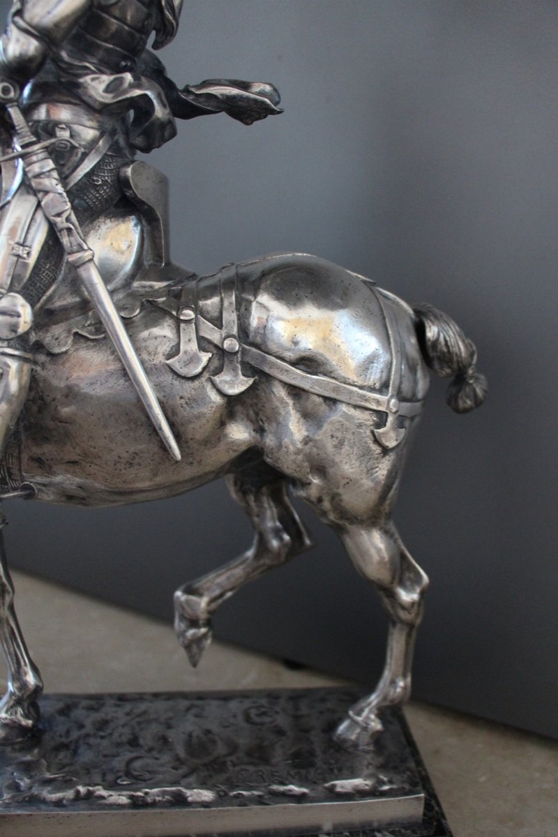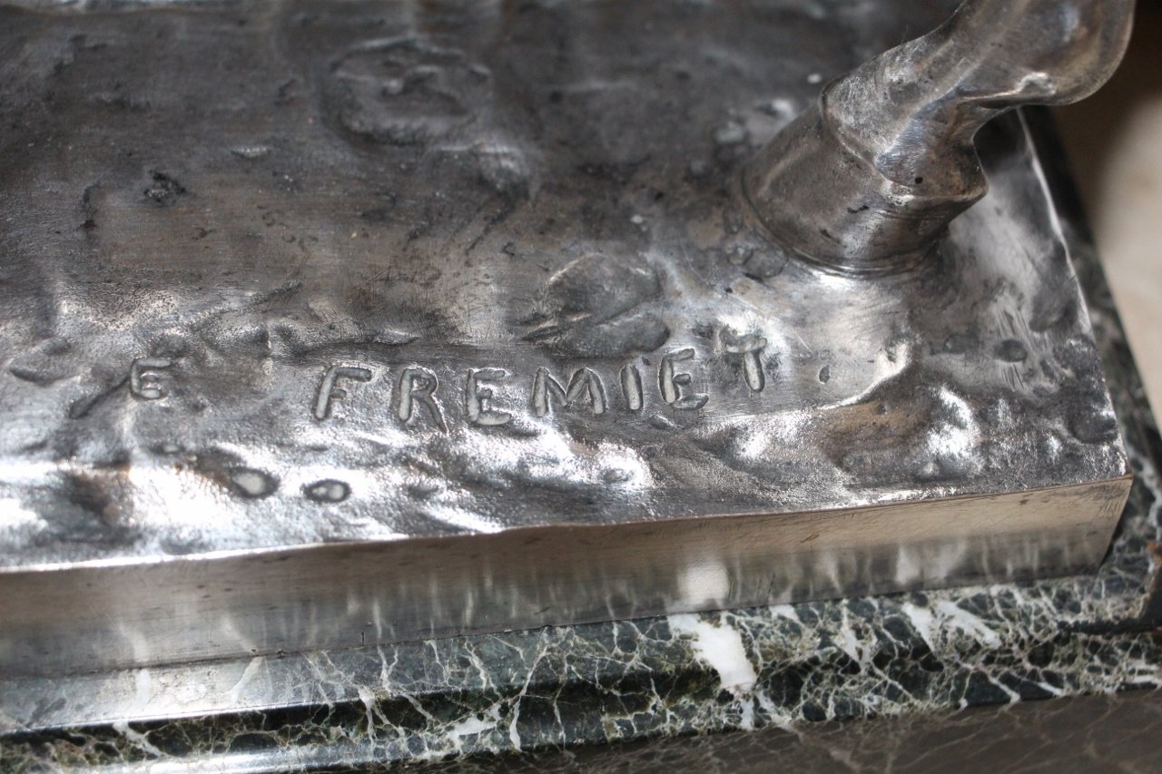 Emmanuel Fremiet (1824-1910) was the nephew and student of the sculptor François Rude. Alongside his monumental works commissioned by the state, he was recognized as an excellent realistic animal sculptor. Emmanuel Fremiet devoted himself primarily to equestrian statues. He began as a scientific lithographer (osteology) and worked in the painters' studio at the morgue. In 1843, he submitted a study of a gazelle to the Salon, the prelude to a prolific output. His Wounded Bear and Wounded Dog were acquired by the State for the Musée du Luxembourg in Paris in 1850. During the 1850s, Fremiet produced works on the theme of Napoleon III. He exhibited bronzes representing Napoleon III's basset hounds, Ravageot and Ravagode, at the Salon of 1853. from 1855 to 1859, he executed a series of statuettes on military subjects for the emperor. He created the Monument to Napoleon I in 1868 and that of Louis d'Orléans in 1869 (Château de Pierrefonds). In 1874, Emmanuel Fremiet designed the first equestrian Monument to Joan of Arc, erected on the Place des Pyramides in Paris, which he replaced following criticism of the proportions with another version in 1900. During this period, he also executed Pan and the Cubs (Paris, Musée d'Orsay). In 1893, Fremiet created the Monument to Velázquez for the garden of the Colonnade of the Louvre Palace in Paris and, in 1897, the statue of Saint Michael slaying the dragon for the spire of the abbey church of Mont Saint-Michel. Fremiet was elected a member of the Académie des Beaux-Arts in 1892 and succeeded Antoine-Louis Barye as professor of animal drawing at the Muséum national d'histoire naturelle in Paris. He was a member of the Société des artistes français until 1908.