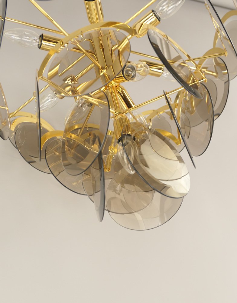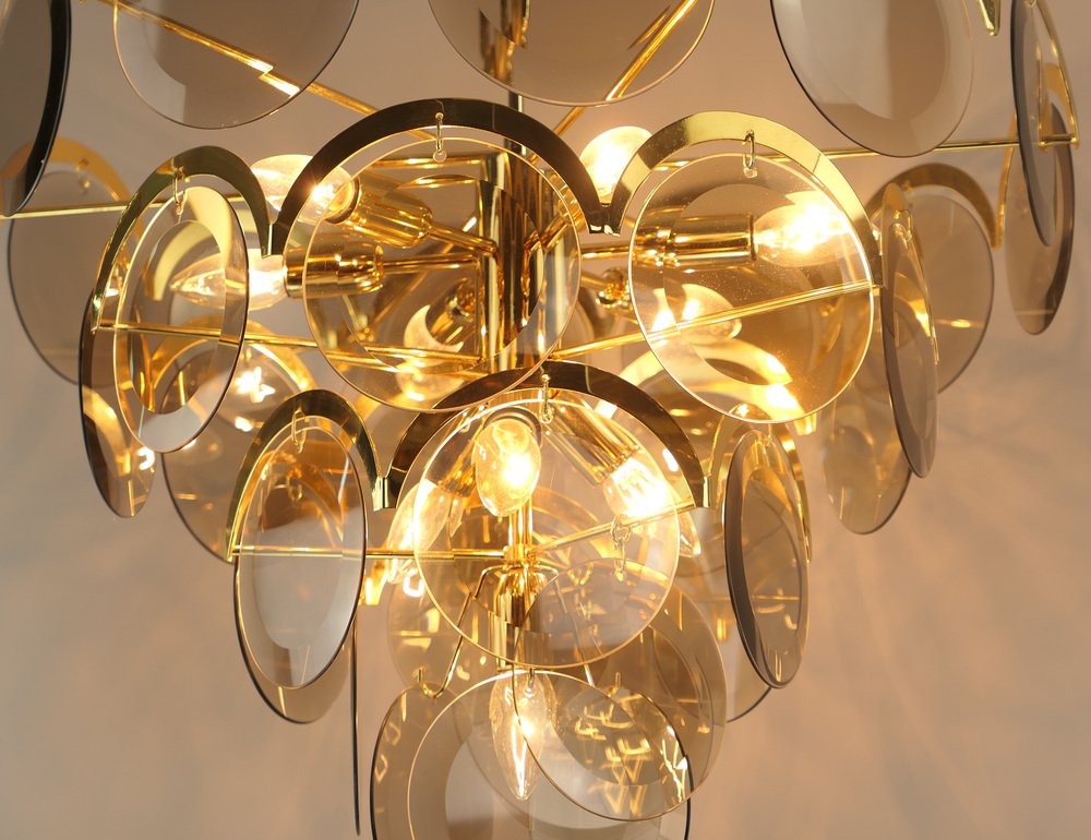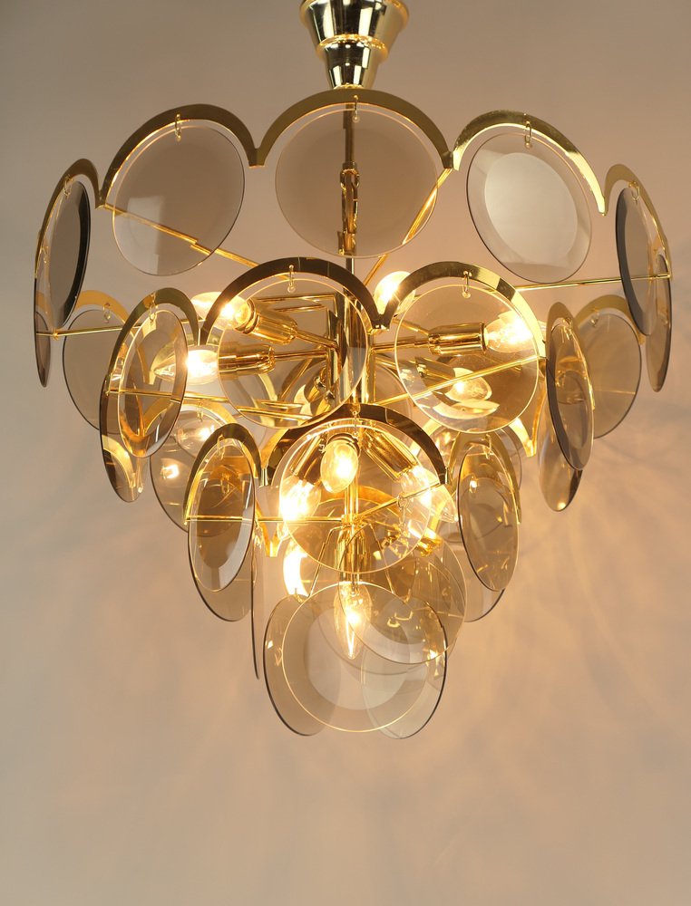 1967 zeigte Vistosi erstmals die inzwischen ikonischen Giogali Leuchten mit gläsernen Verbindungen, entworfen von dem italienischen Architekten, Bildhauer und Designer Angelo Mangiarotti (1921-2012). Diese revolutionären und unglaublich erfolgreichen Kronleuchter und Lampen bestehen aus Glasringen in einer Vielzahl von Anordnungen. Ab den 1970ern und 80ern war Vistosi außerdem mit Magistrettis Alega Lampe (1970), De Lucchis Vega Tischlampe (1982) und verschiedenen Designs von Albert Leclerc und Ettore Sottsass erfolgreich.