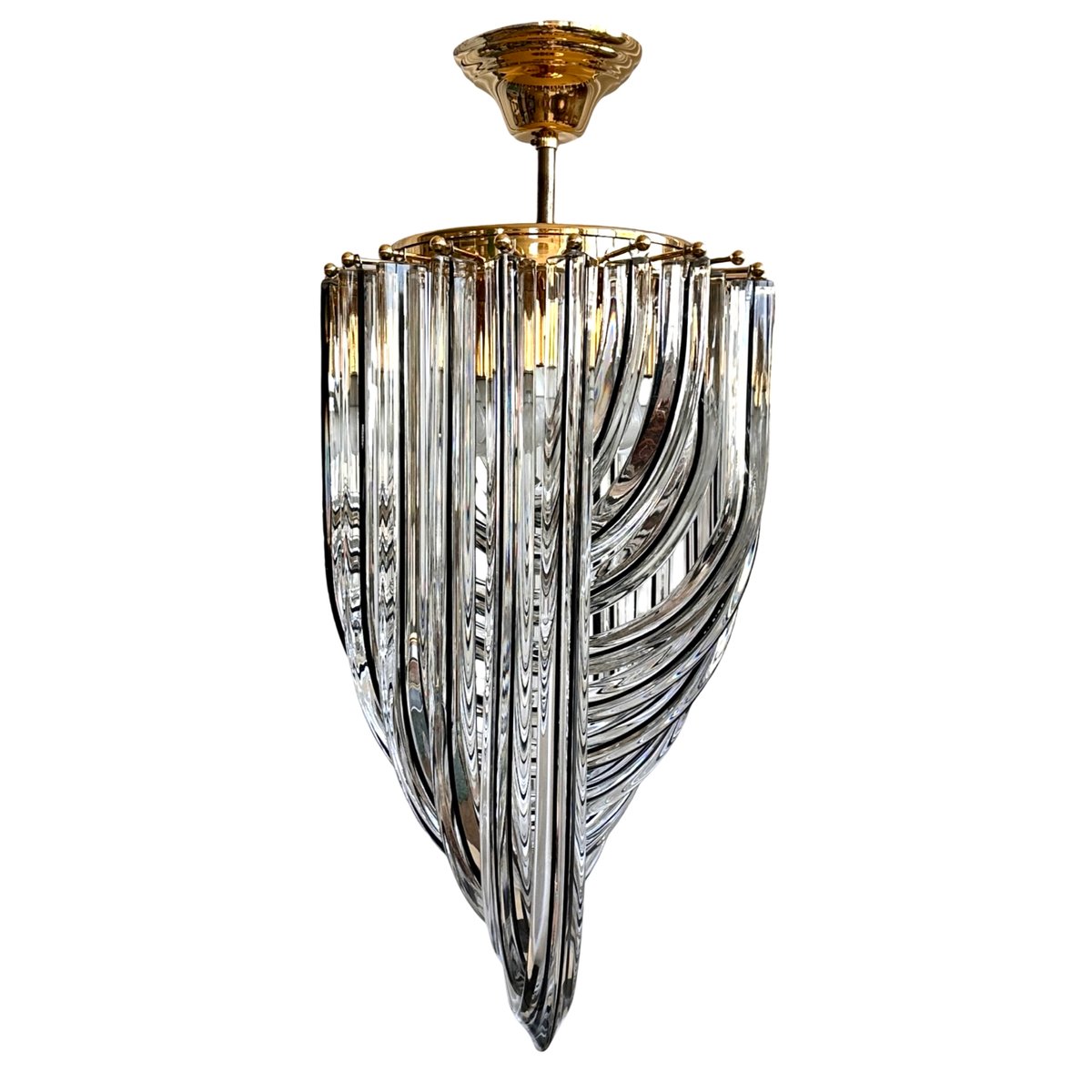 Gebogener Murano Kristallglas Band Kronleuchter von Paolo Venini, 1960er