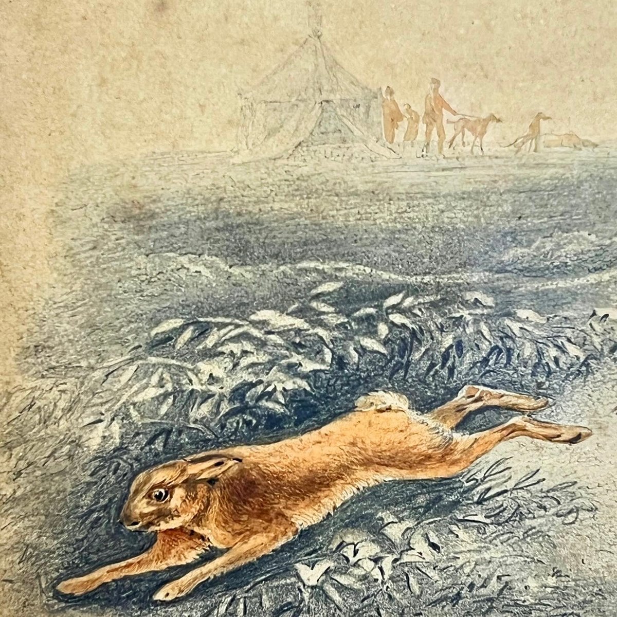 Ein charmantes Aquarell aus dem 19. Jahrhundert, das Windhunde oder Lurche beim Coursing zeigt
