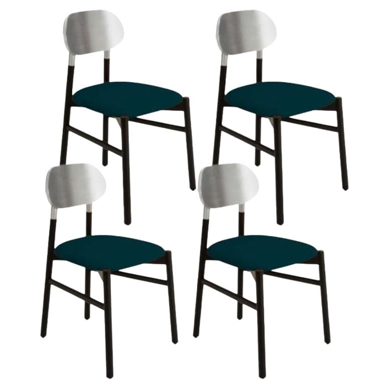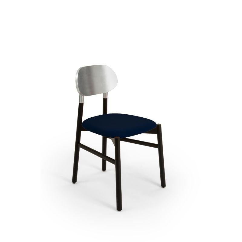 Set of 4, Bokken upholstered chair, black & silver, Blu by Colé Italia with Bellavista/Piccini Dimensions: H 81.7 D 49 W 53.5 cm Materials: solid beech wood structure, gold or silver leaf back, padded seat - cat c: velvetorthy Also available: COM Fabric, Fabric Cat A, Fabric cat B, Leather Cat P, and natural beech, beech structure stained, gold or silver leaf TC: C.O.M. fabric - send us your own material CA: Cat A - Angel (polypropylene), Ganesha (synt. leather), Nord Wool (felt) CB: Cat B - Tiffany (polyester), Lana (aquaclean) CC: Cat C - Velvetforthy (Velvet), Topia (wool), Novum (Wool), Opera (felt) CP: Cat P - Milano (full grain leather) An essential chair in the form yet precious in colors. Tapered and elongated, the legs of the seat are inspired by the bokken, a wooden replica of the Japanese sword used in the training of the Japanese martial art of Aikido and Kendo. Bokken chair is characterized by the backrest in precious colors: blue aquamarine, ruby red off-white, anthracite, and authentic gold or silver leaf, to match the structure of natural or walnut dyed beech wood. Colé is a young Italian design brand, with a high-end production 100% made in Italy. Born from the experience of Matteo De Ponti, architect, who grew up in one of the most outstanding Milanese design families, and the artistic sensibility of Laura Macagno, degree in Economics and passionate of art and design. Our Mission is to create design icons, beautiful and comfortable pieces that can stand the test of time, furnishing houses of international and sophisticated clients, and realized with craftsmanship, thus unique. “We love objects which own deep roots, excellent quality, and a strong evocative power. Archetypal forms dressed with new beauty without losing their classical composure”. Our expressive research is inspired by the utopian force of Italian eminences grises architects and designers of the ’50s, the Scandinavian design, the Bauhaus, ethnic handcraft and houses of famous writers of the XX century, all different as a style but united by the intense soul of those who worked and lived there.