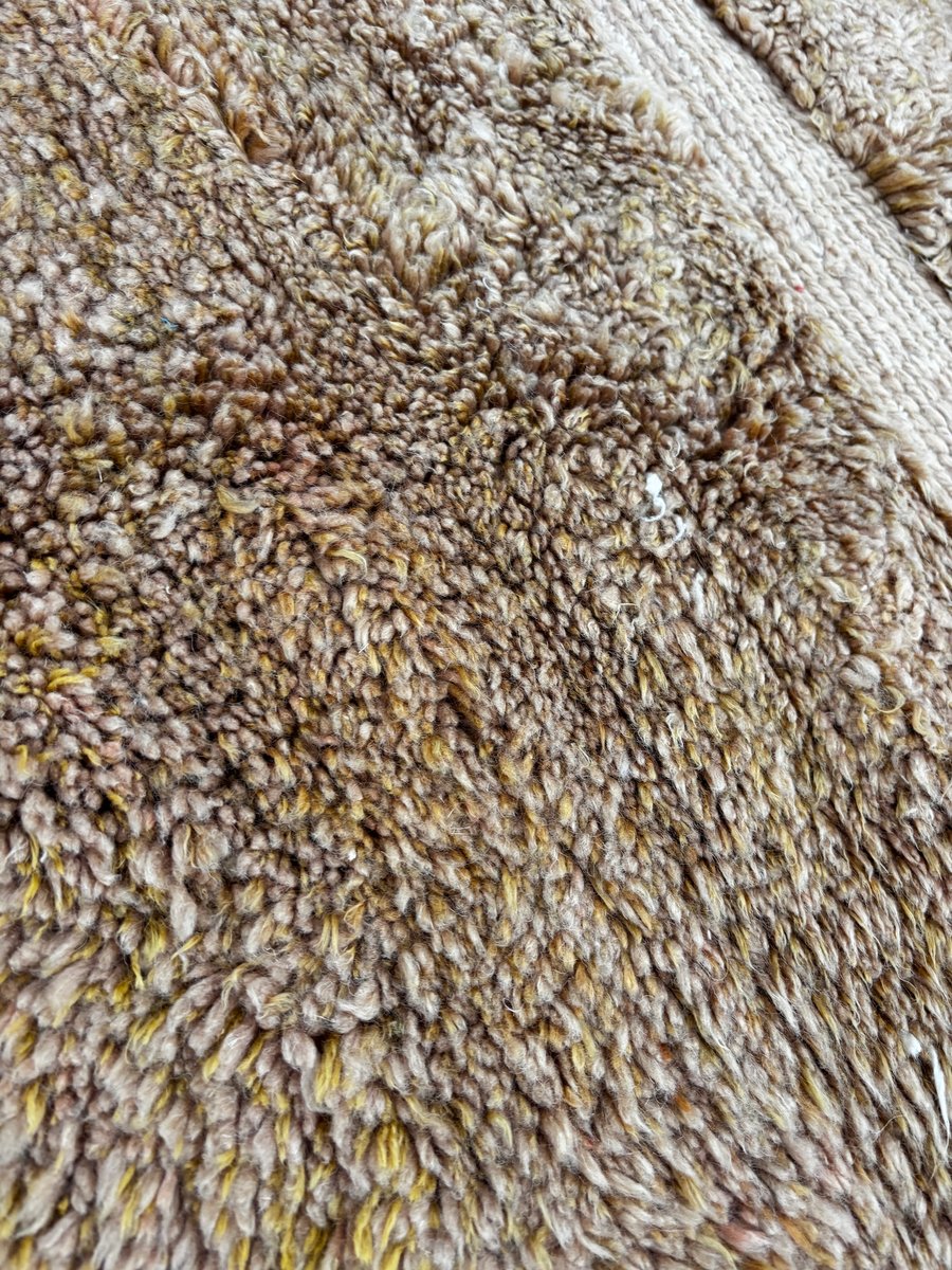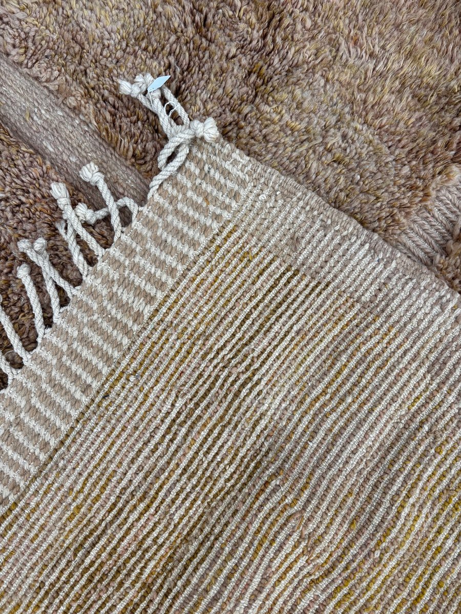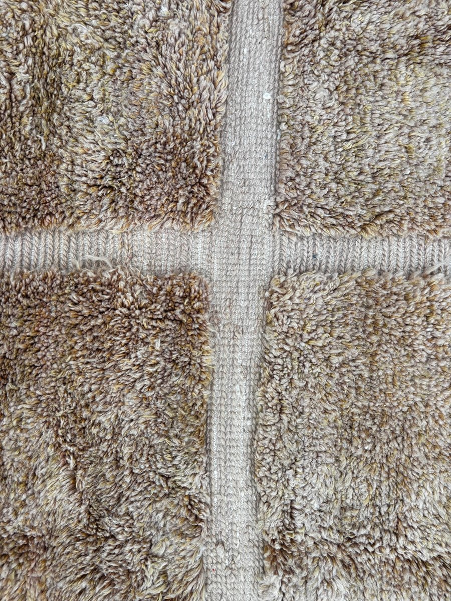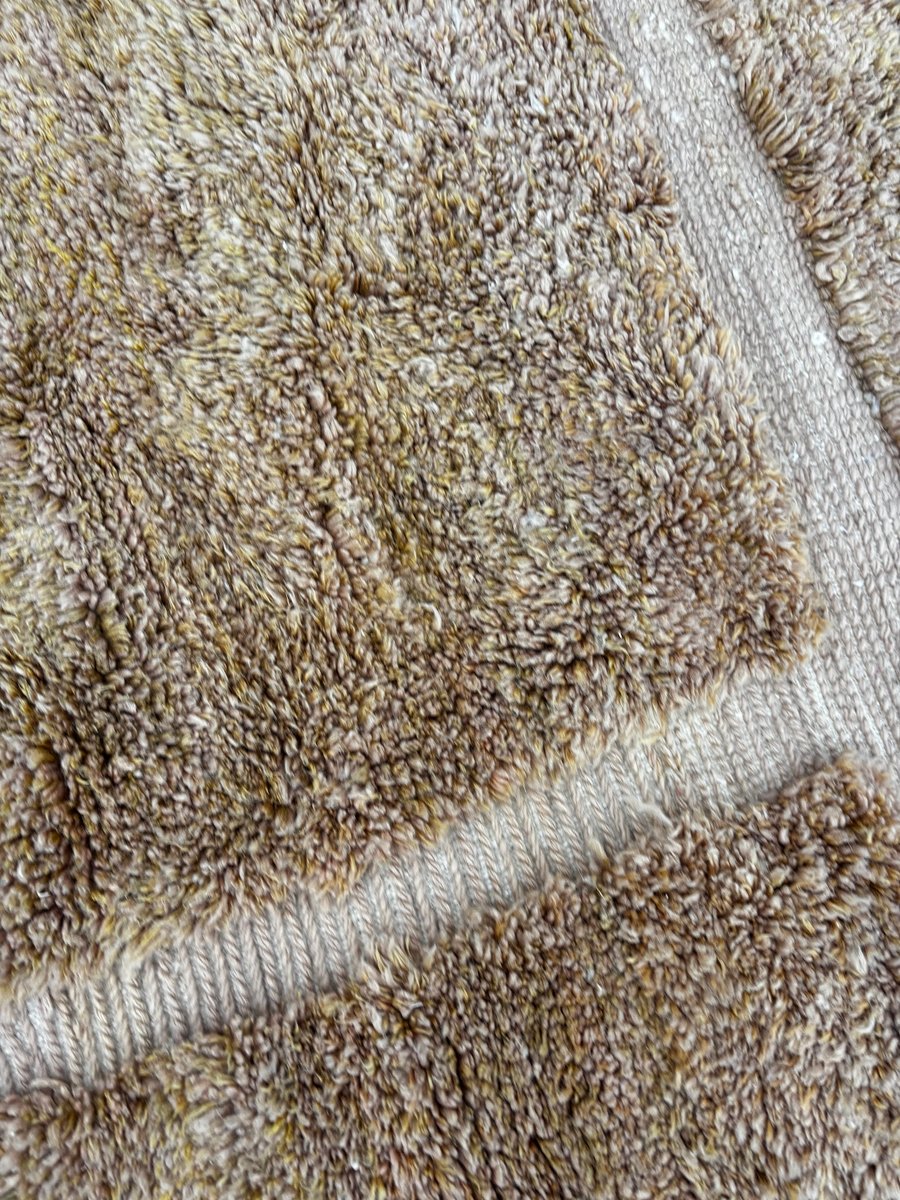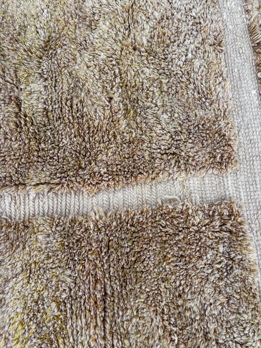 Er wird von Berberhandwerkern im Mittleren Atlasgebirge handgewebt und zeichnet sich durch ein subtiles geometrisches Muster und einen strahlenden Goldton aus, der das natürliche Licht mit Wärme und Raffinesse reflektiert.