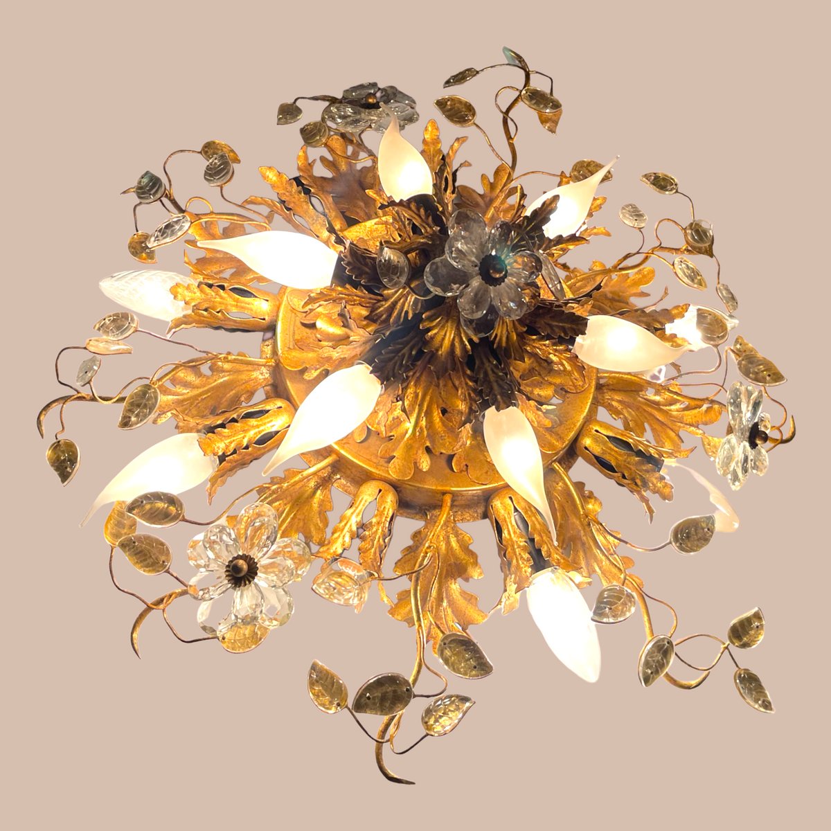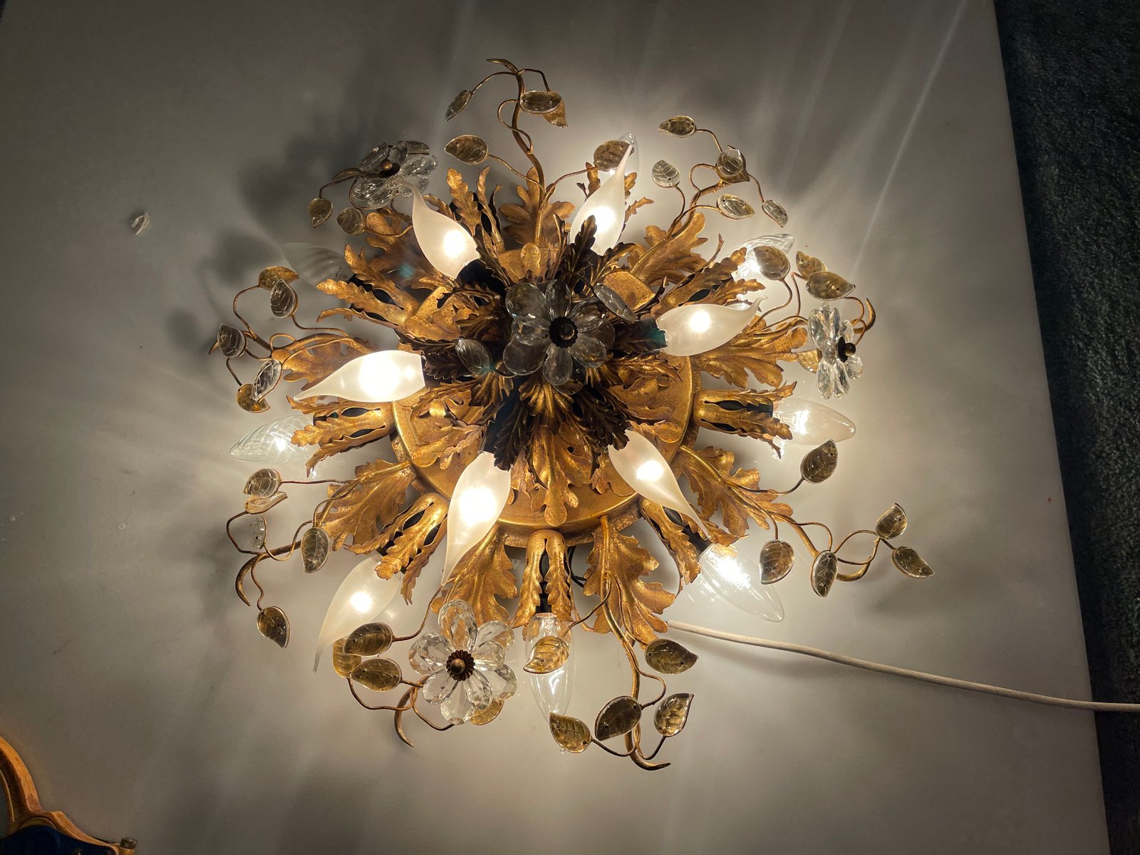 Goldfarbene vergoldete Murano Glas Deckenlampe, 1960er