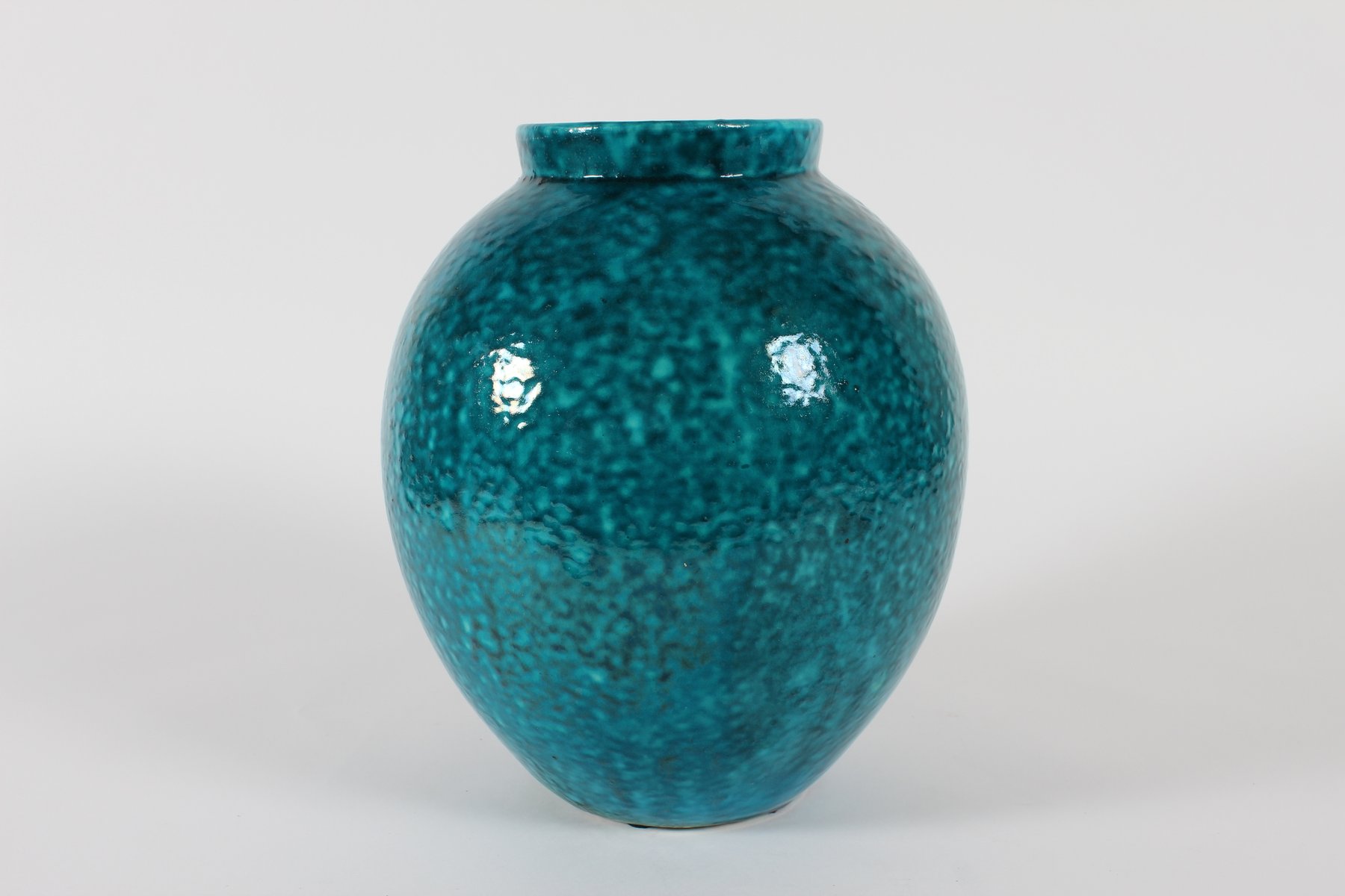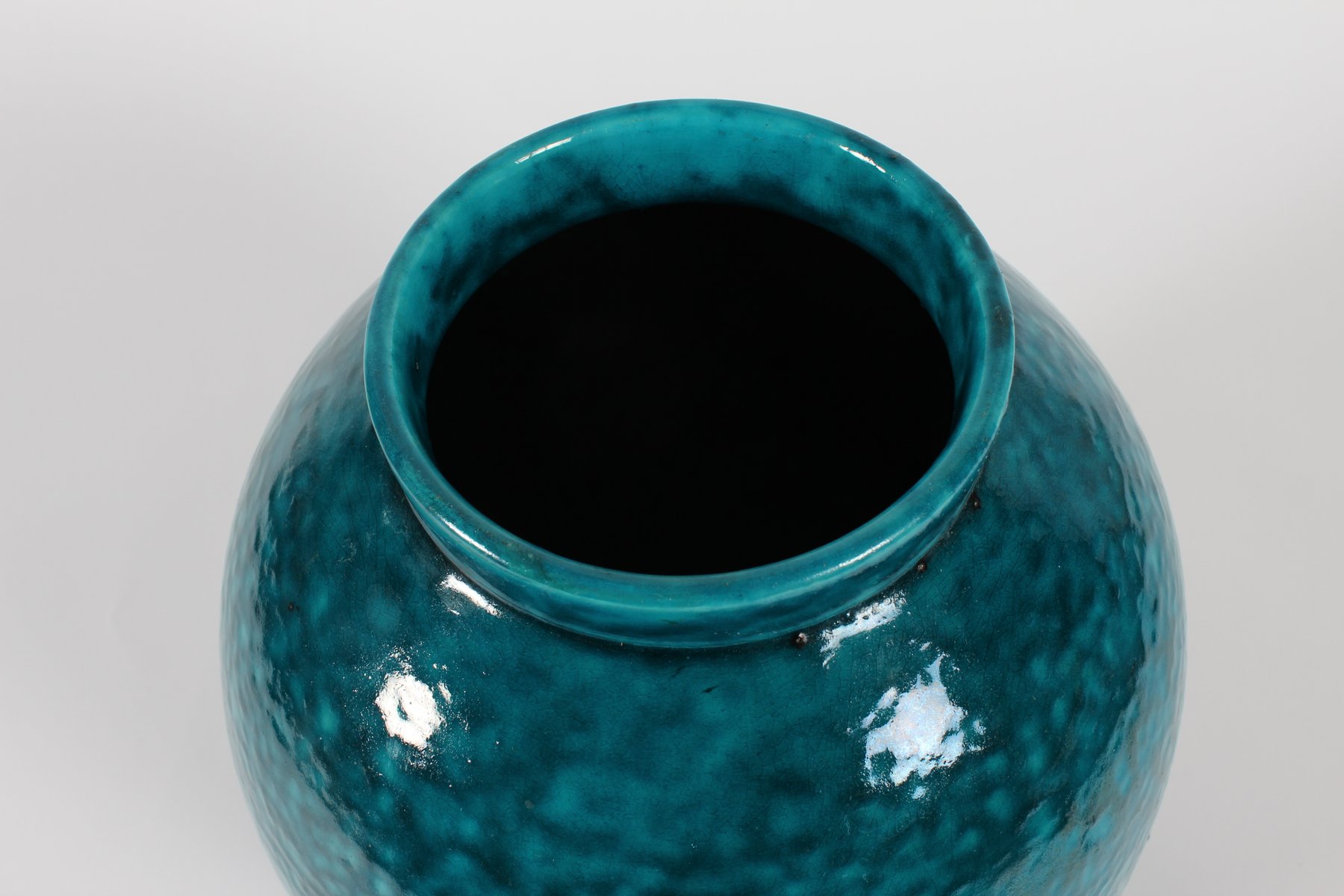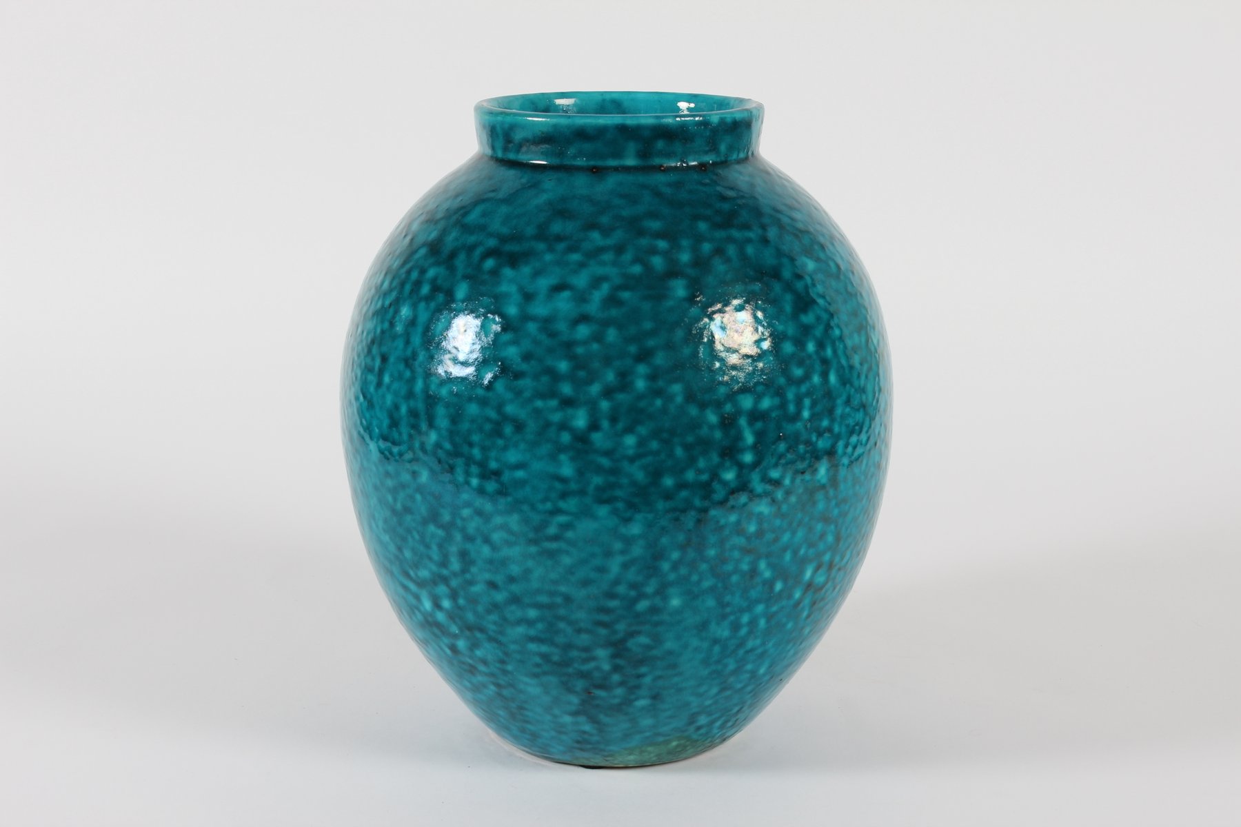 Große Art Deco Bodenvase mit Gesprenkelter Türkisglasur von Herman A. Kähler, Dänemark, 1930er