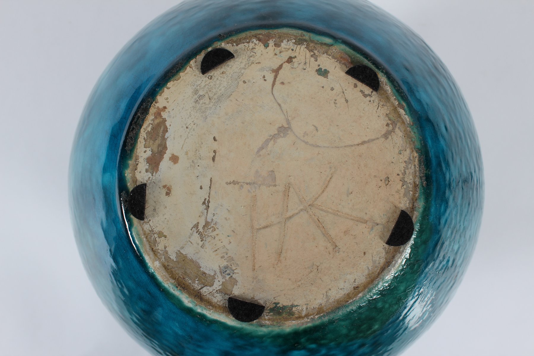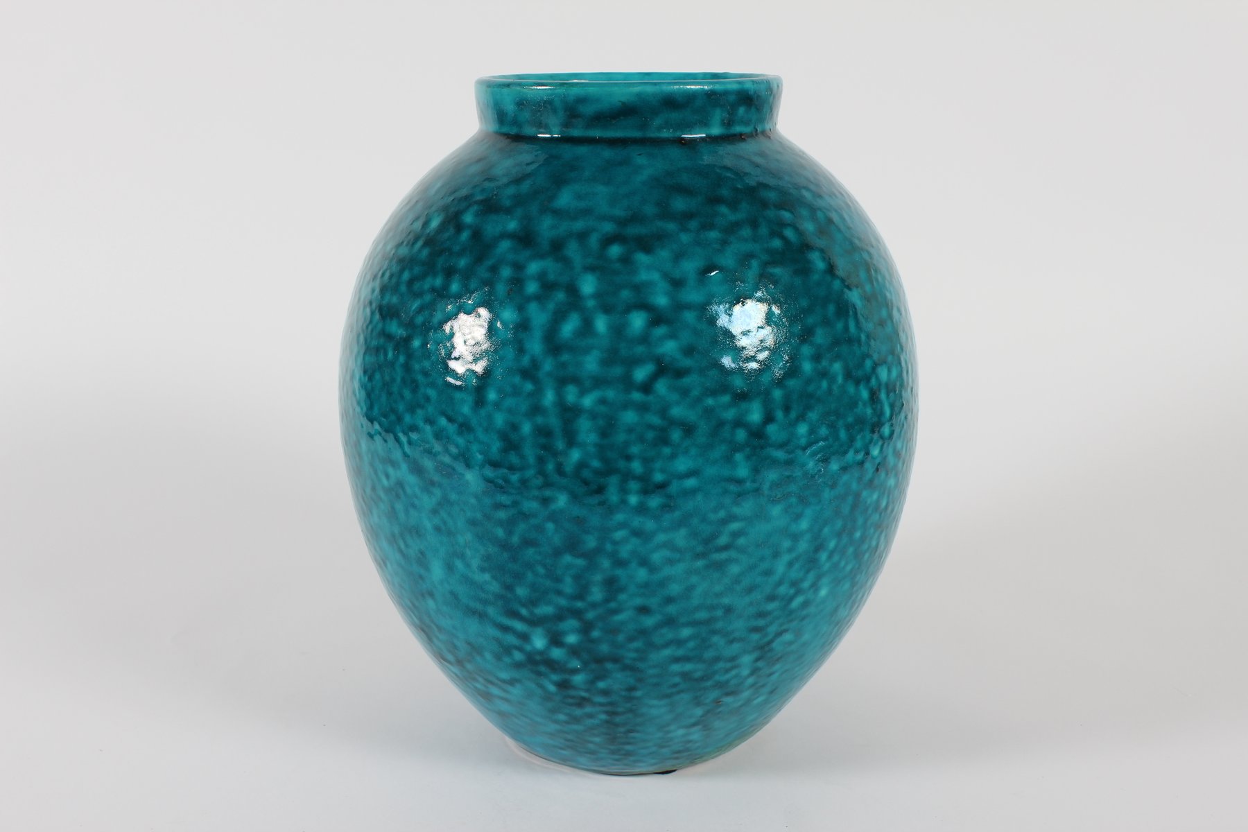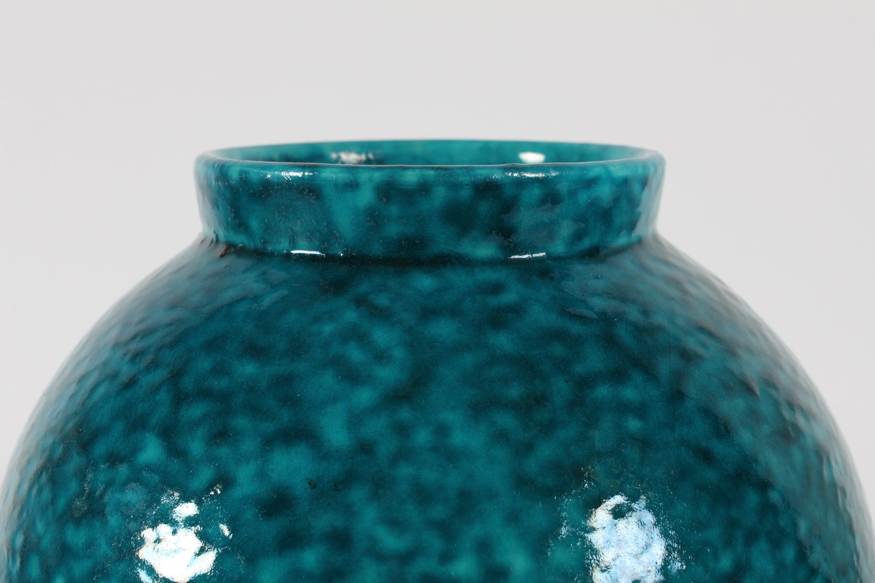 Große Art Deco Bodenvase mit Gesprenkelter Türkisglasur von Herman A. Kähler, Dänemark, 1930er