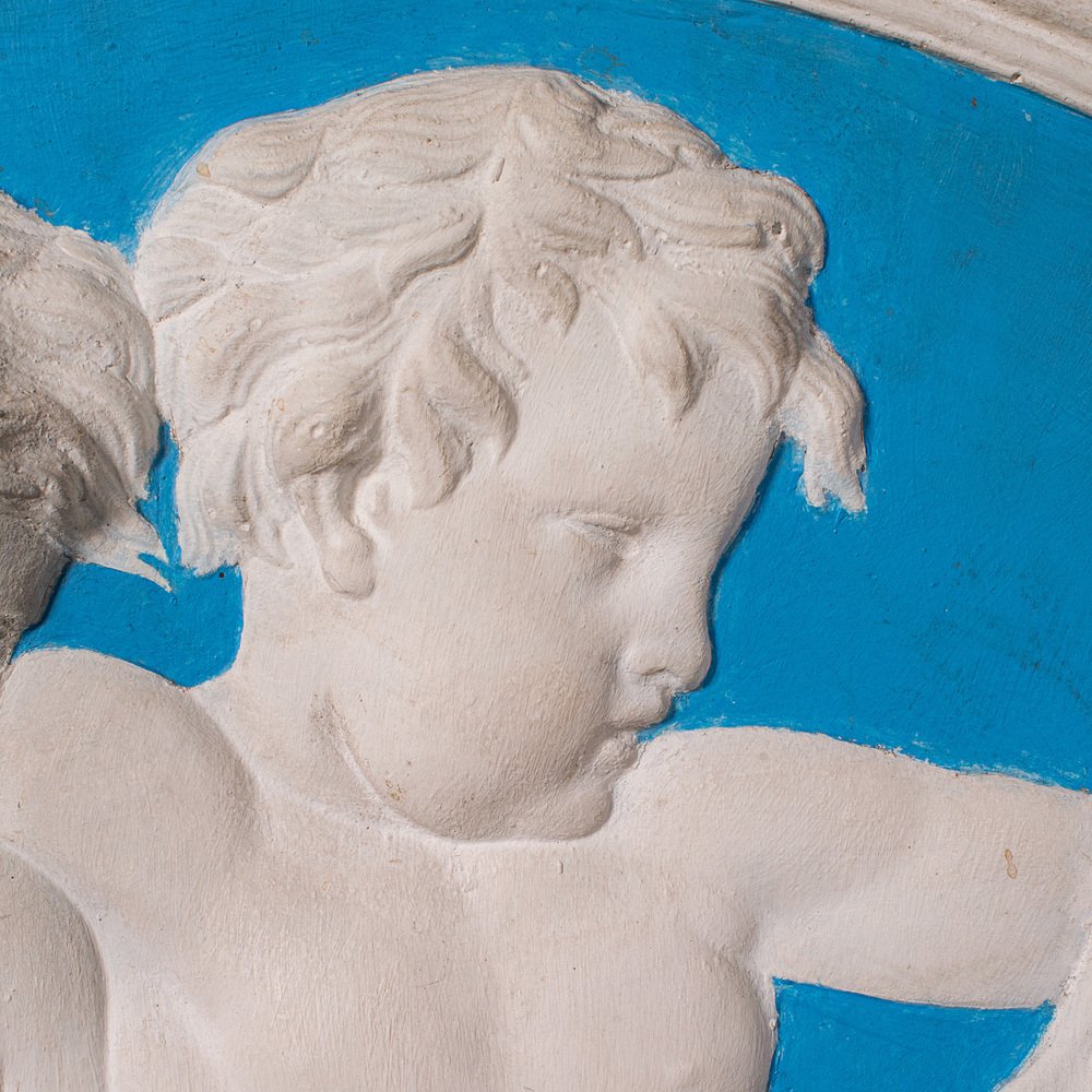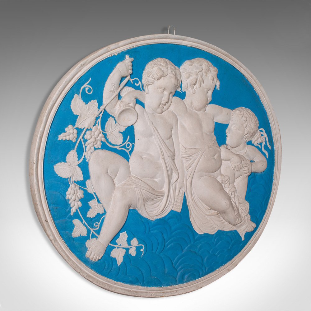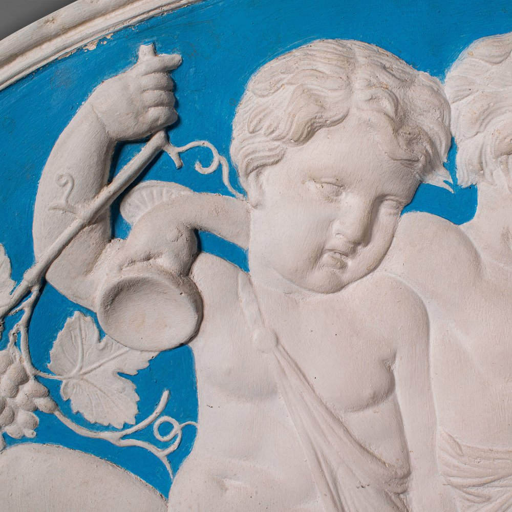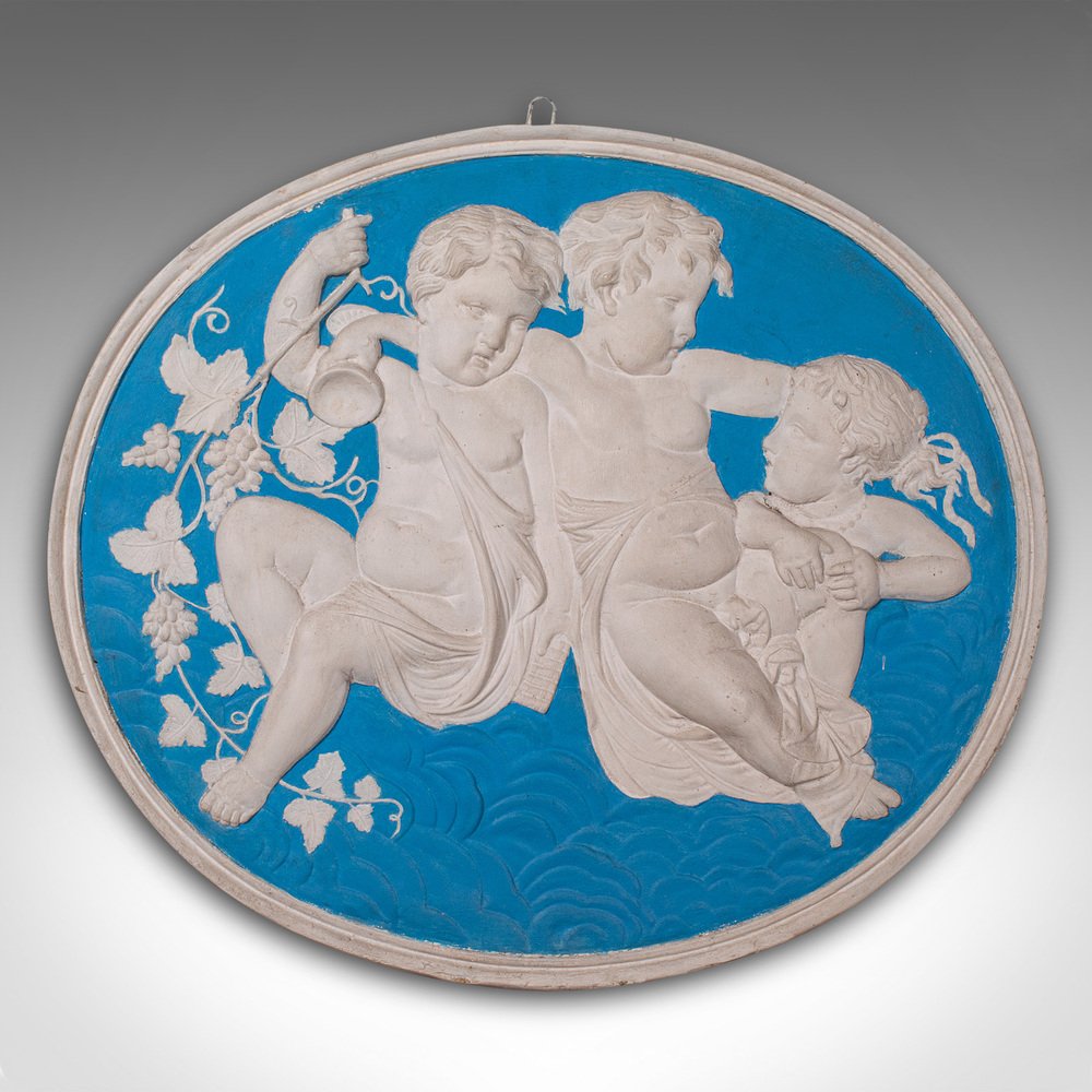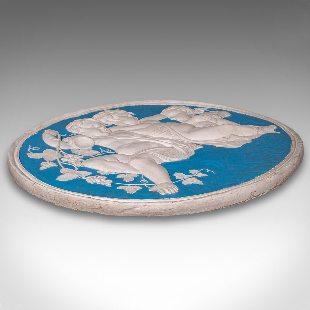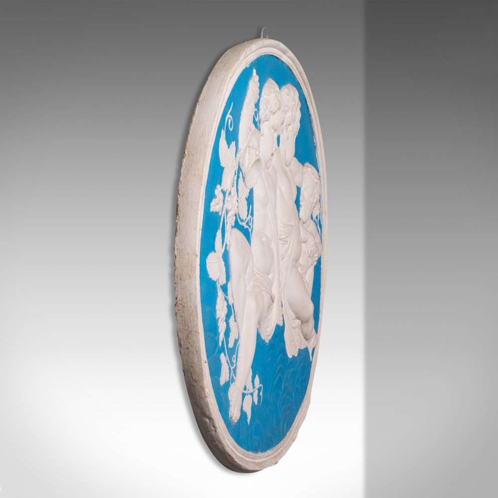 Große englische Vintage Oval Relief Plakette aus Stein im Stil von Jasperware, 1980