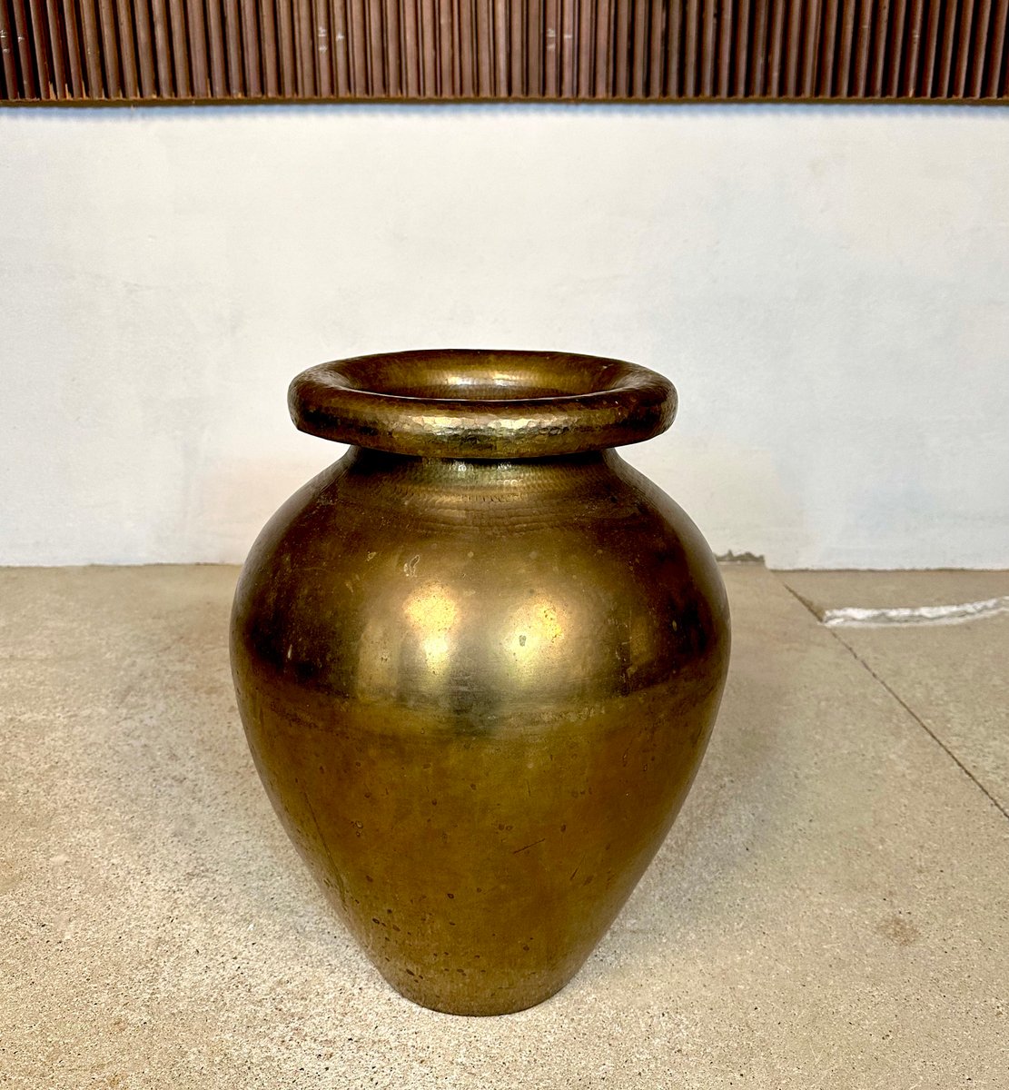 Große italienische handgehämmerte Messingvase, Egidio Casagrande zugeschrieben, 1950er