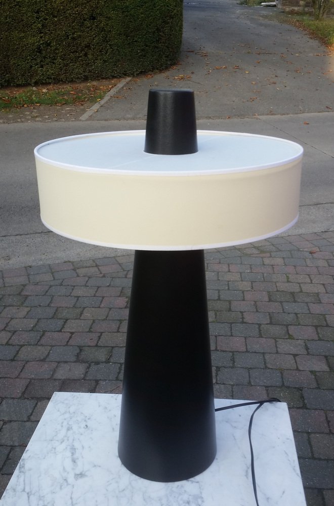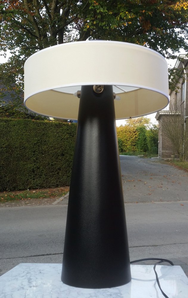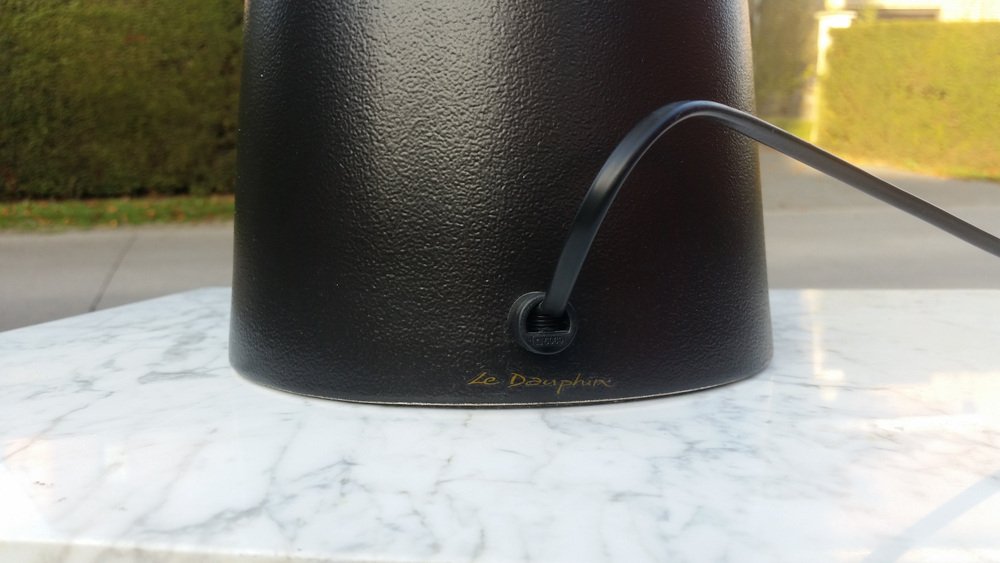 Große minimalistische französische Tischlampe aus schwarzer Keramik von Le Dauphin, 1980er