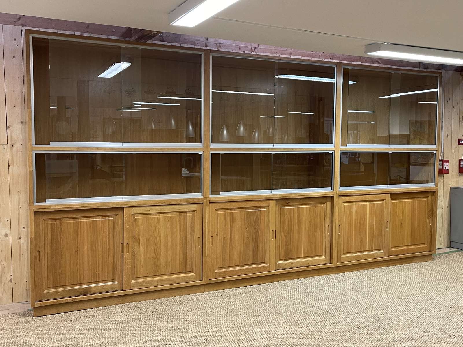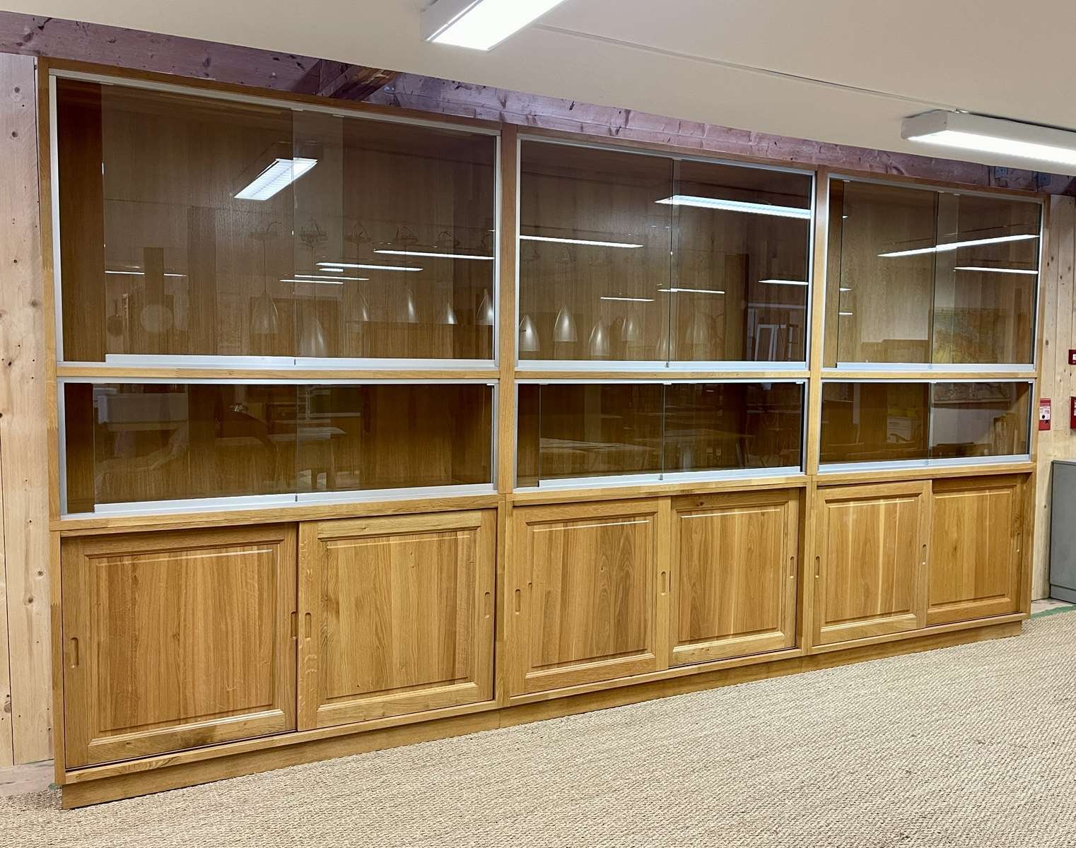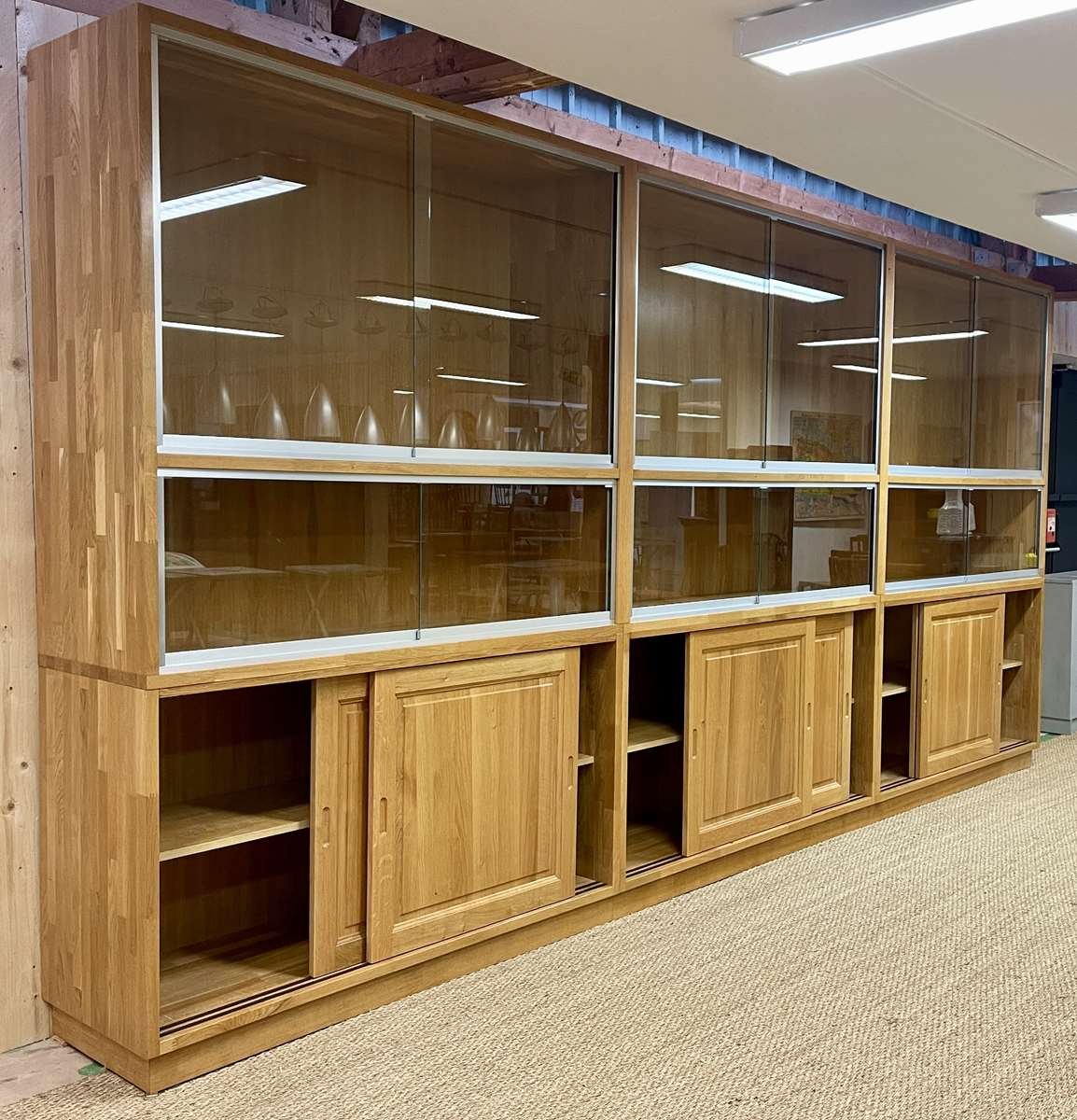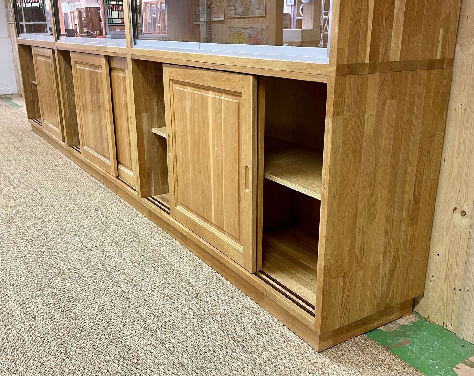 Große Vitrine aus Eiche mit Schiebetüren, 1990er