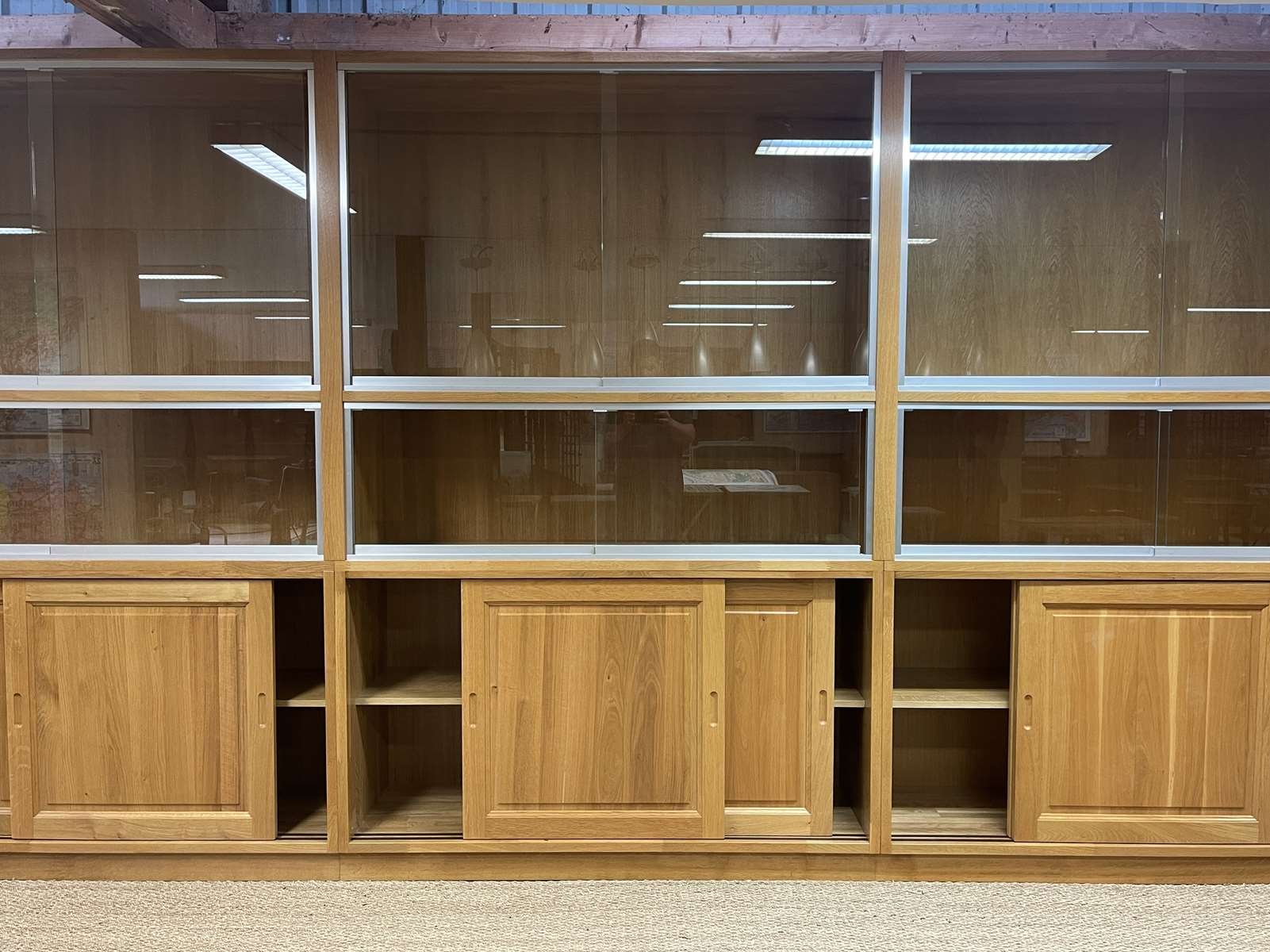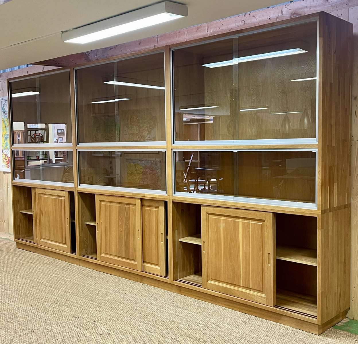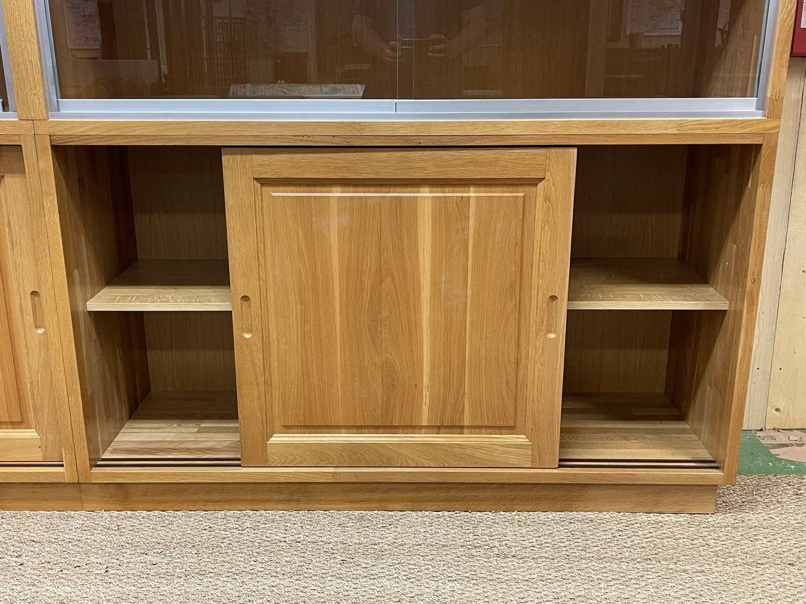 Große Vitrine aus Eiche mit Schiebetüren, 1990er