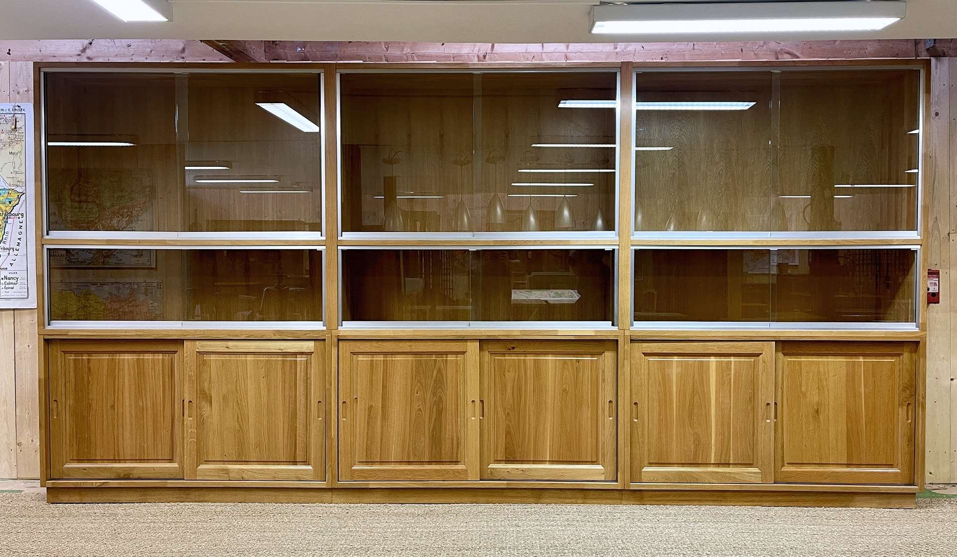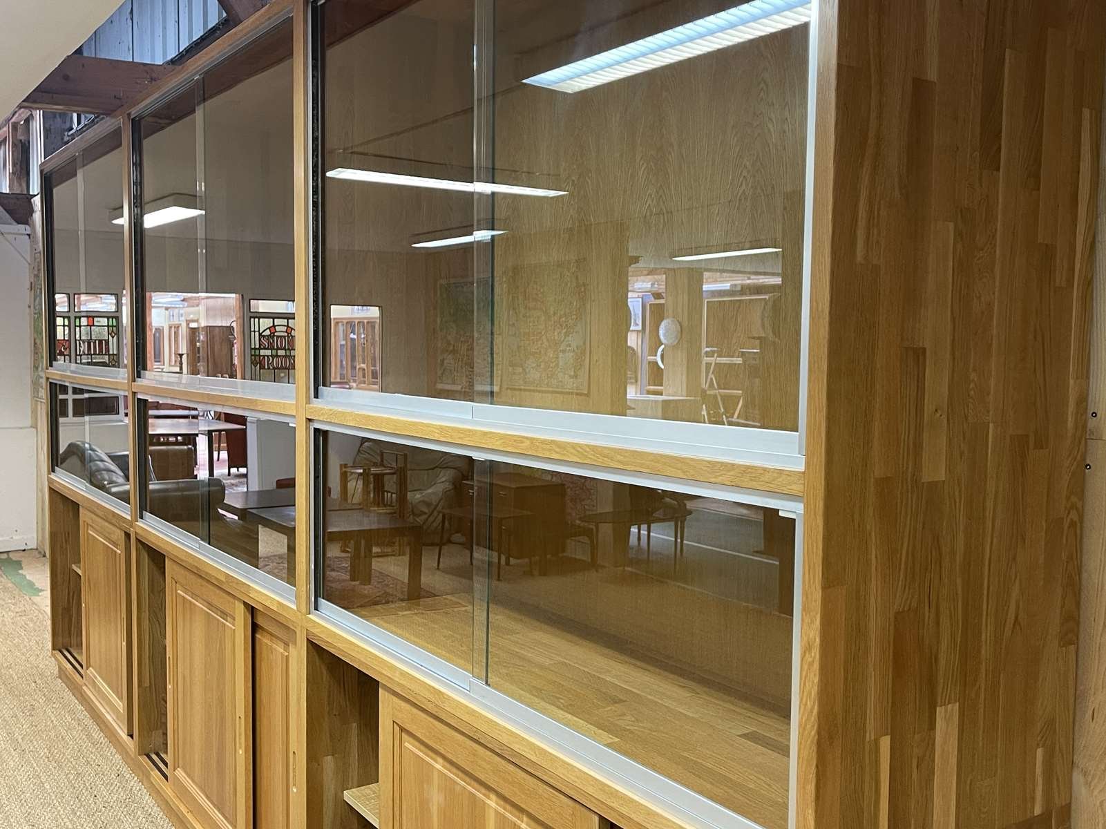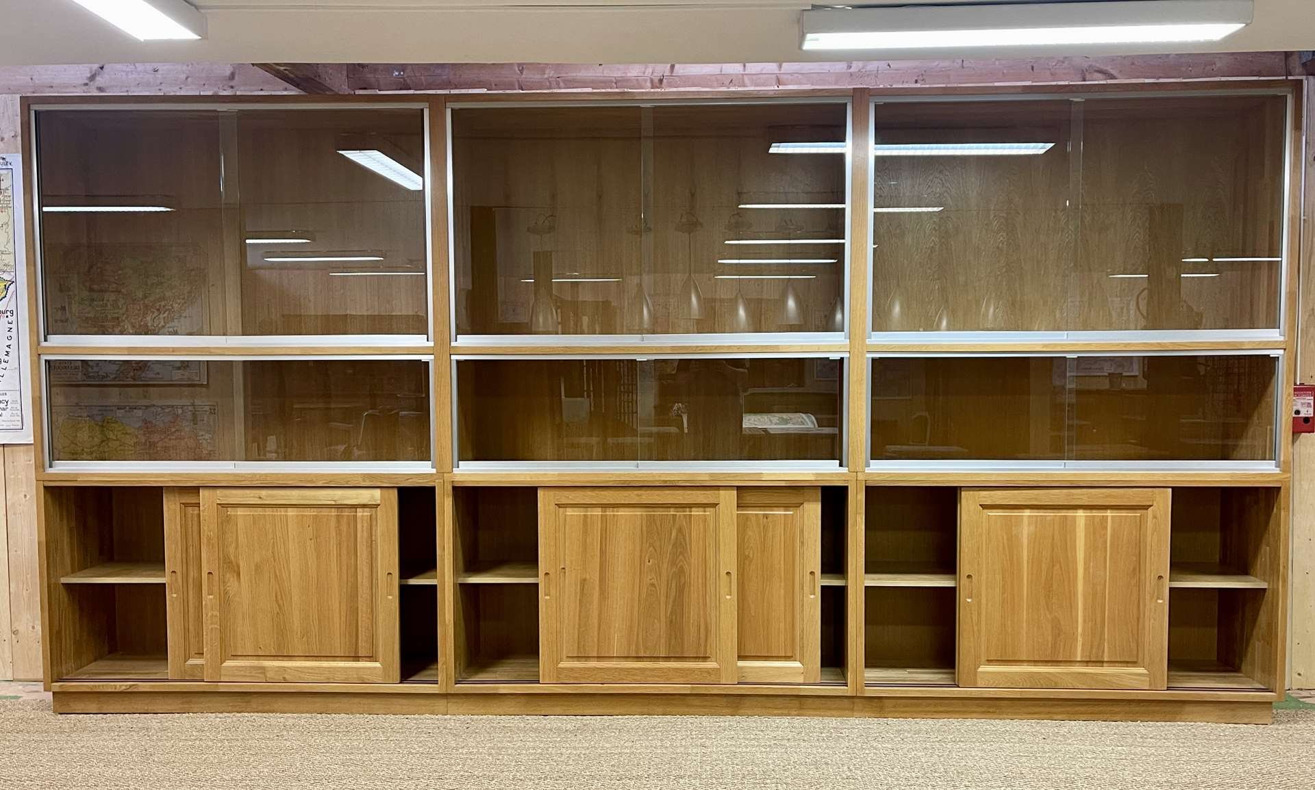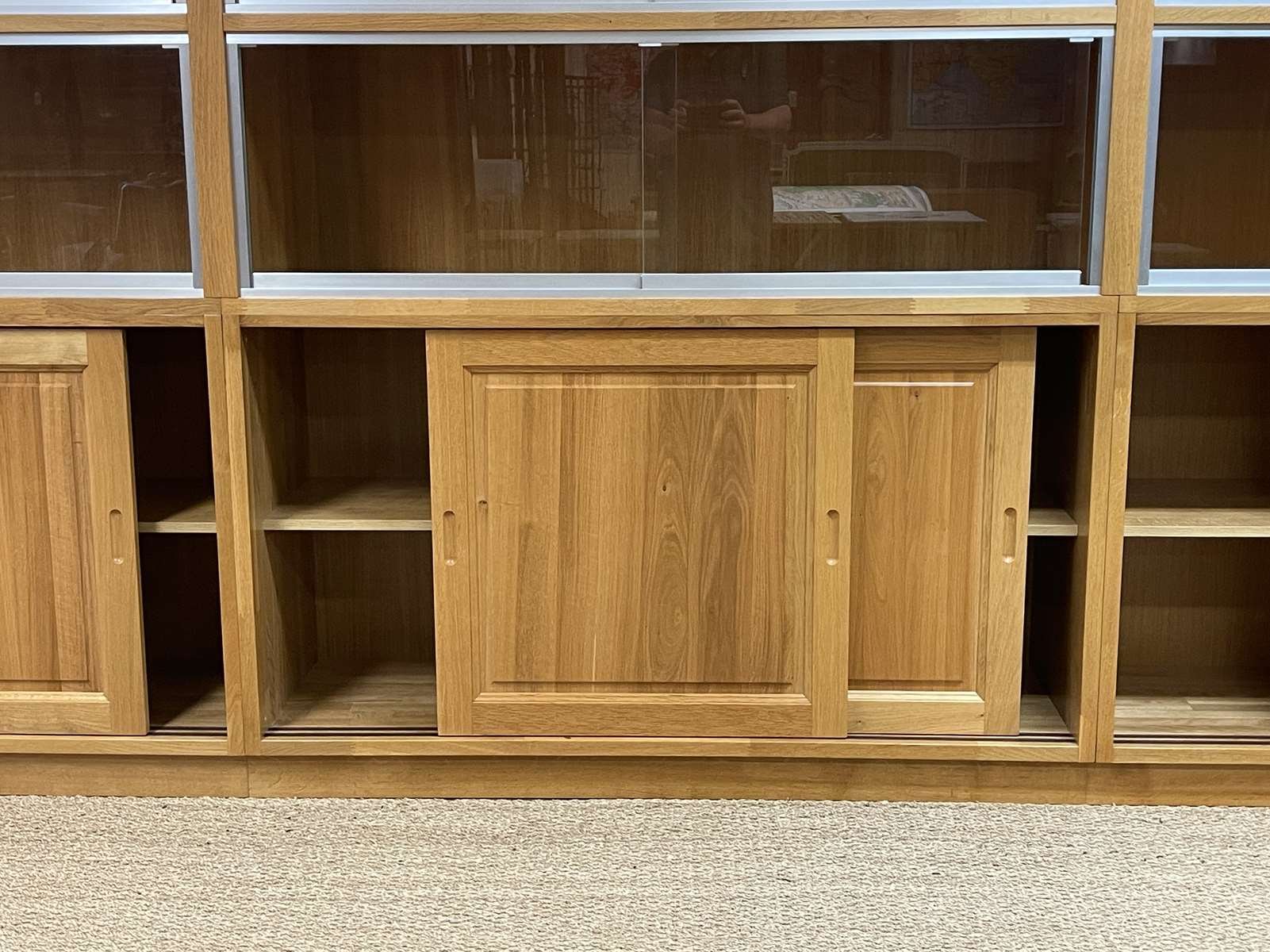 Große Vitrine aus Eiche mit Schiebetüren, 1990er