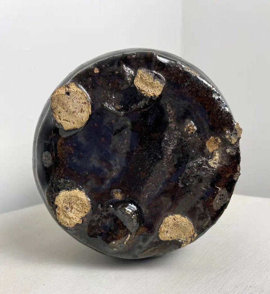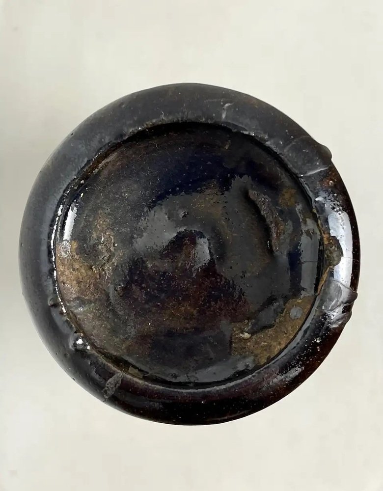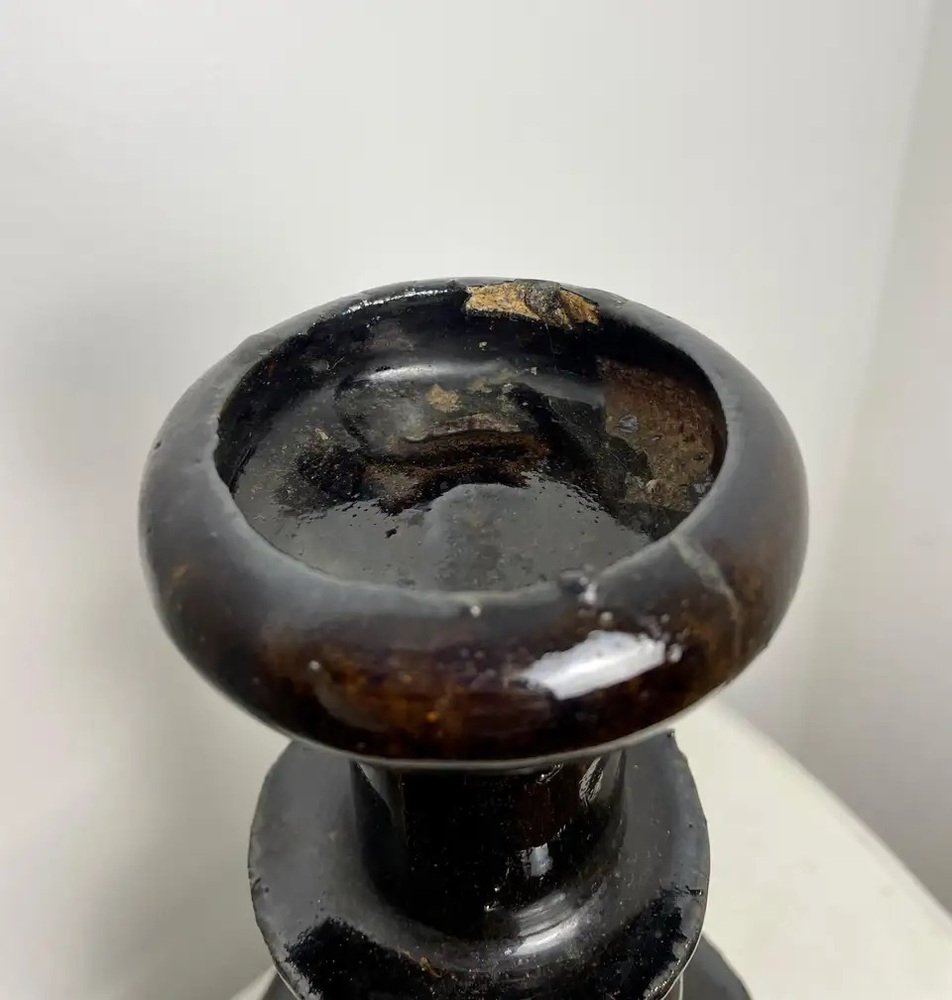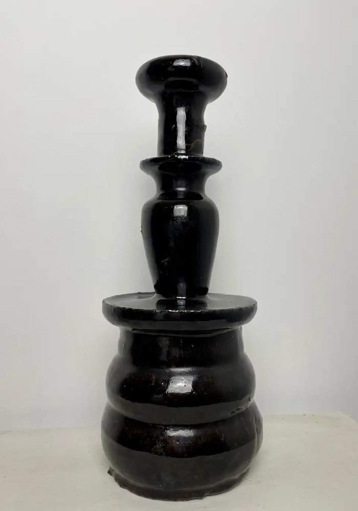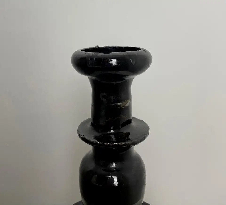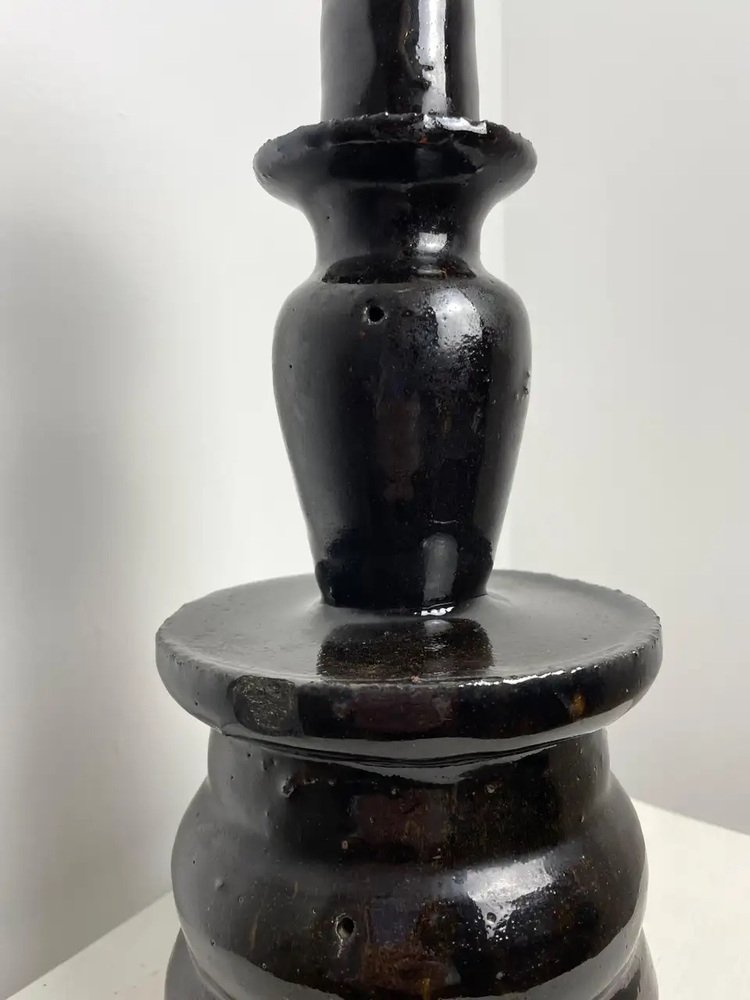 Großer Chinesischer Altar Kerzenhalter aus Schwarz Emaillierter Keramik, 19. Jh.