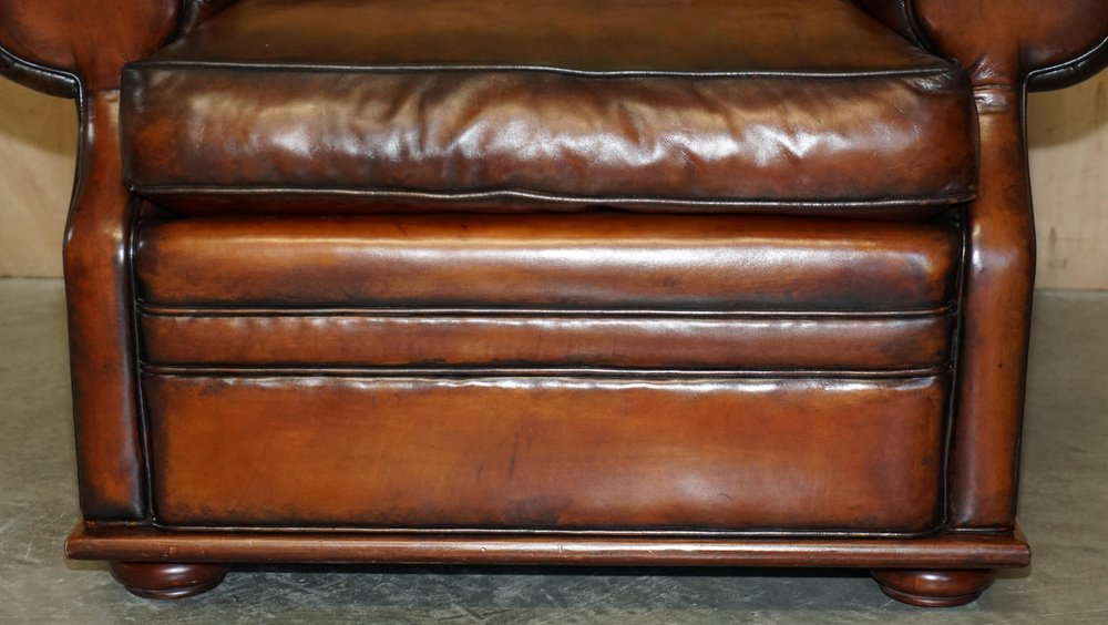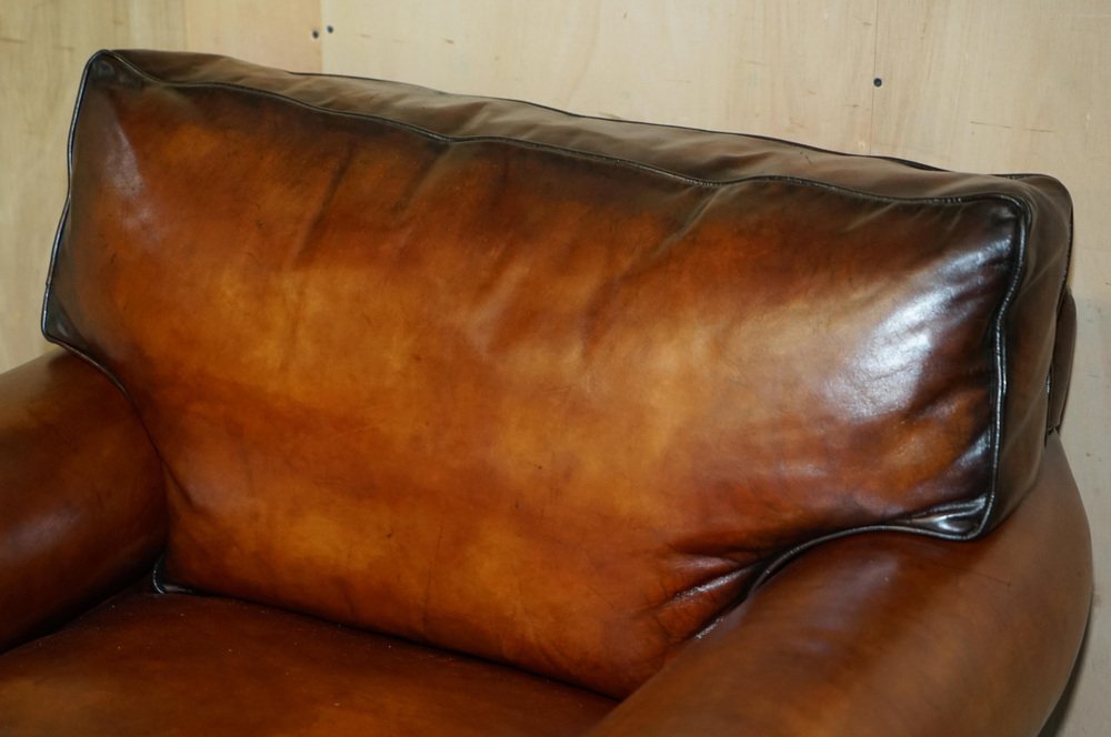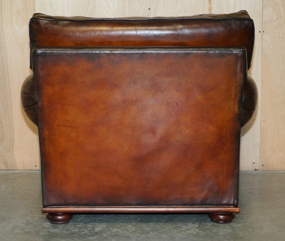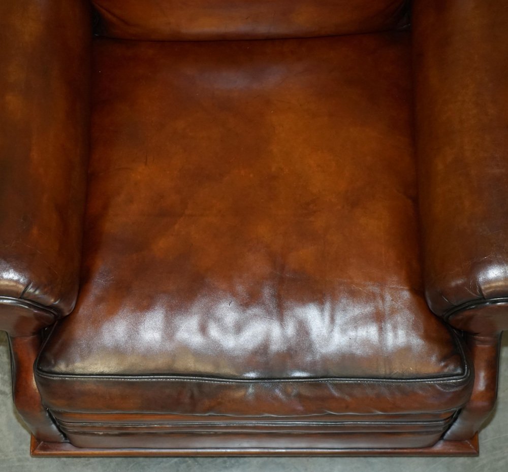 Wir freuen uns, dieses atemberaubende Original vollständig restauriert Hand gefärbt Cigar Brown Leder Ralph Lauren Art Deco Club Sessel mit Feder gefüllt Kissen zum Verkauf anbieten Eine fantastische ikonischen Sessel, es ist jetzt eingestellt worden, aber war außergewöhnlich beliebt in seiner Zeit. Diese wurden in plain tan Leder geliefert, ist dies die einzige in dieser Farbe in der ganzen Welt, es ist sehr einzigartig und viel besser als das Original Der Stuhl wurde restauriert, um mit der alten Farbe ausgewaschen, das Leder wurde dann von Hand gefärbt sechs Mal, antiqued, versiegelt, gewachst und poliert, es ist super einzigartig und sieht teuer und wichtig in jeder Umgebung Sessel Abmessungen: Höhe 90cm Breite 103cm Tiefe 105cm Sitzhöhe 52cm