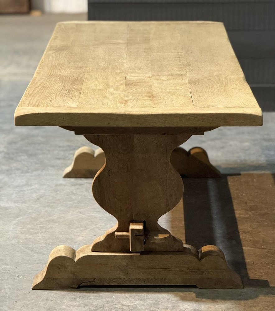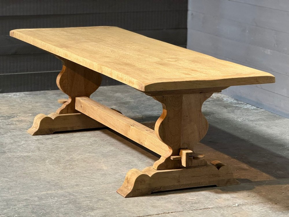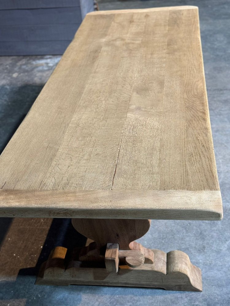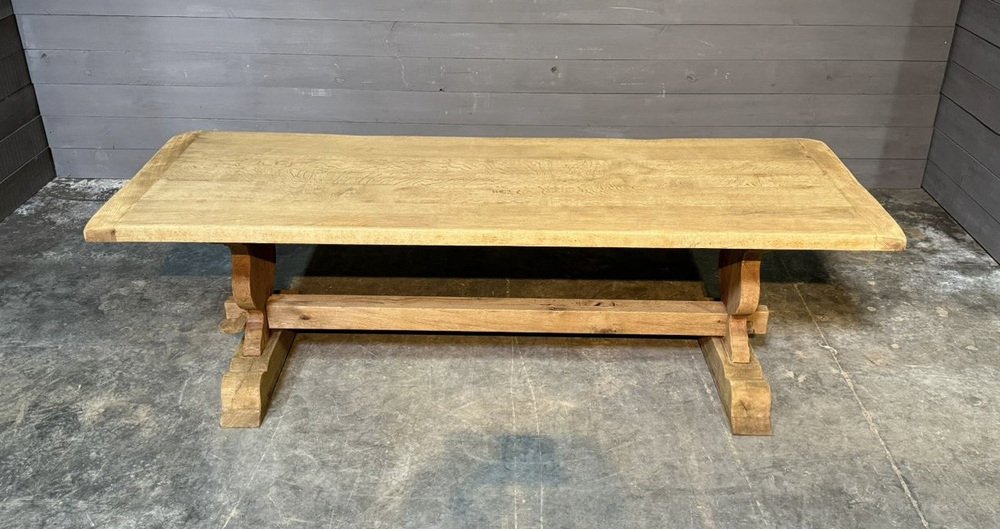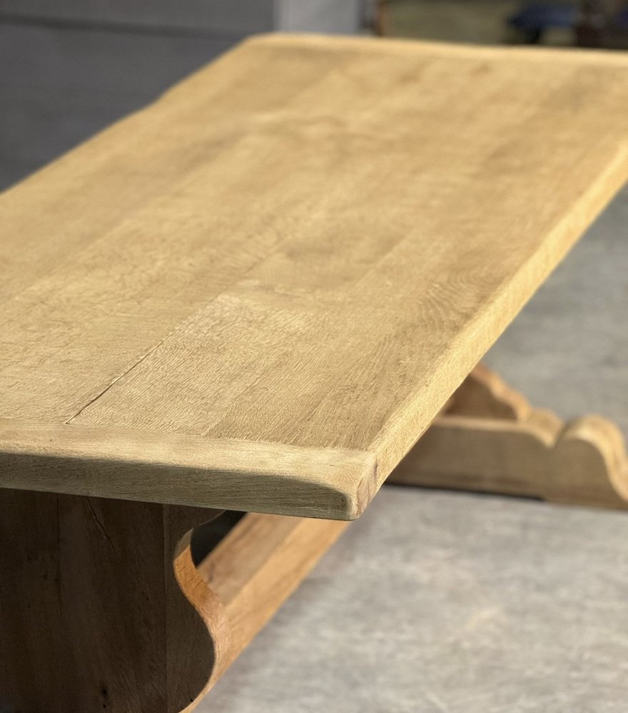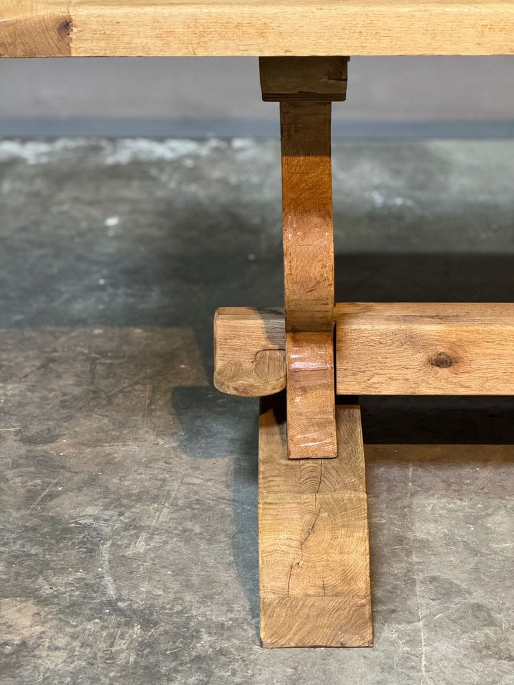 Großer französischer Esstisch aus gebleichter Eiche, 1920er