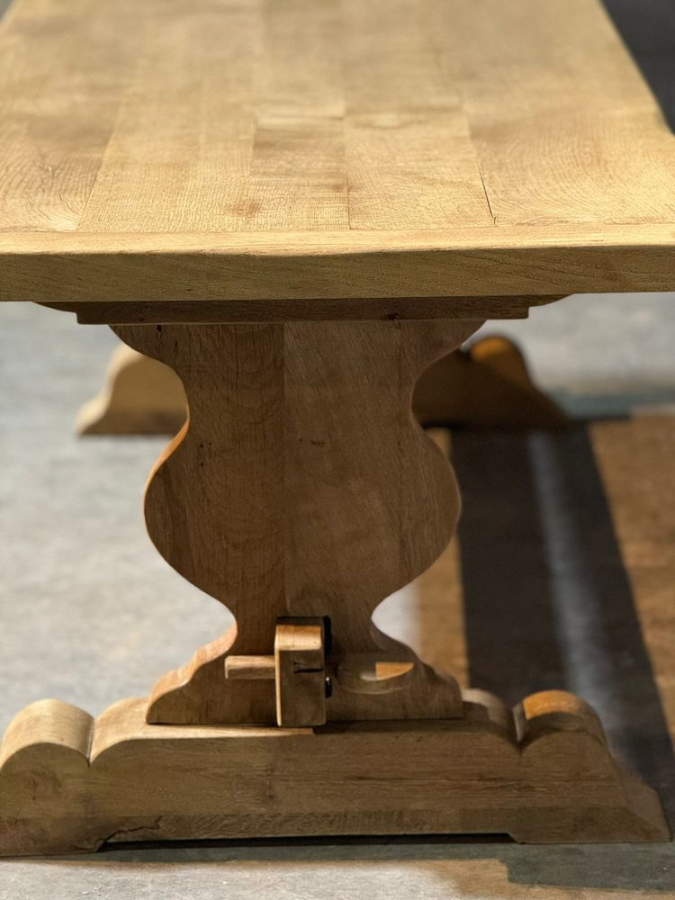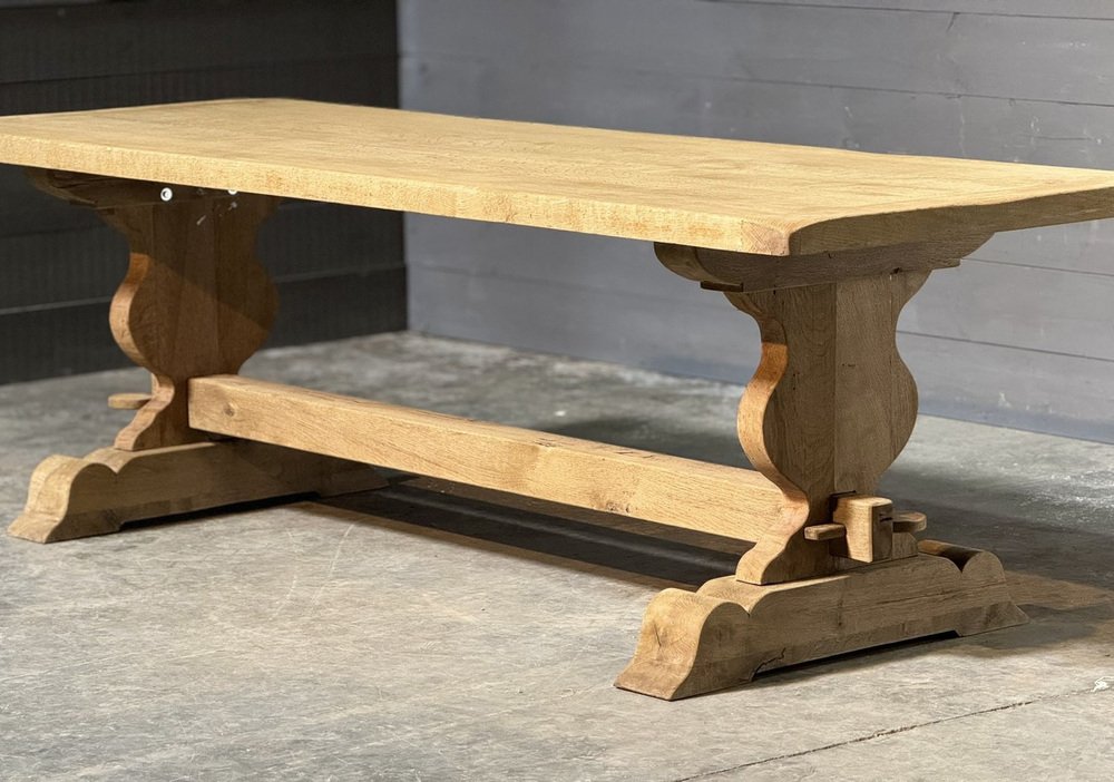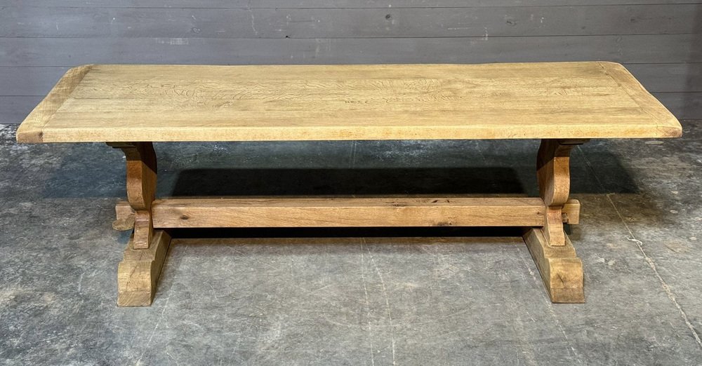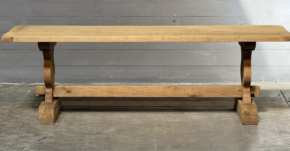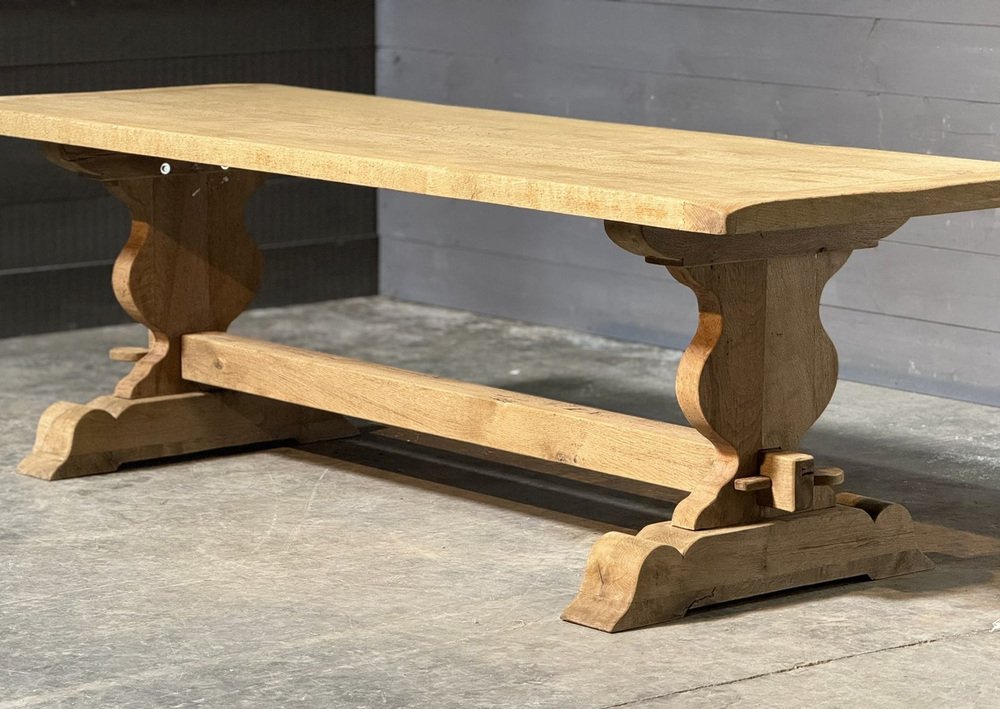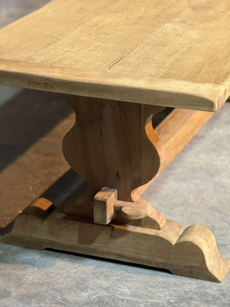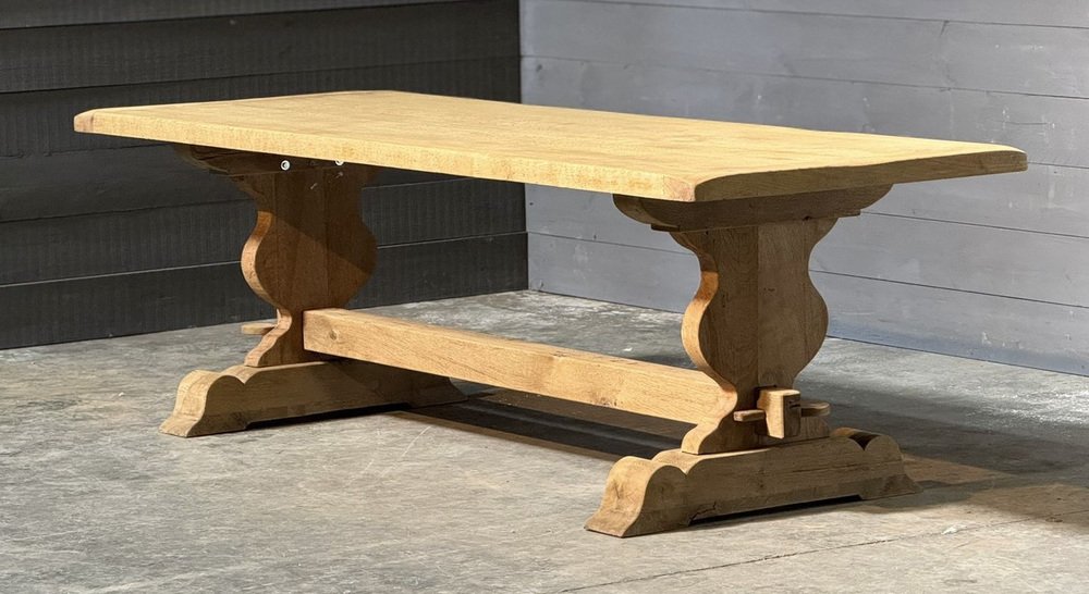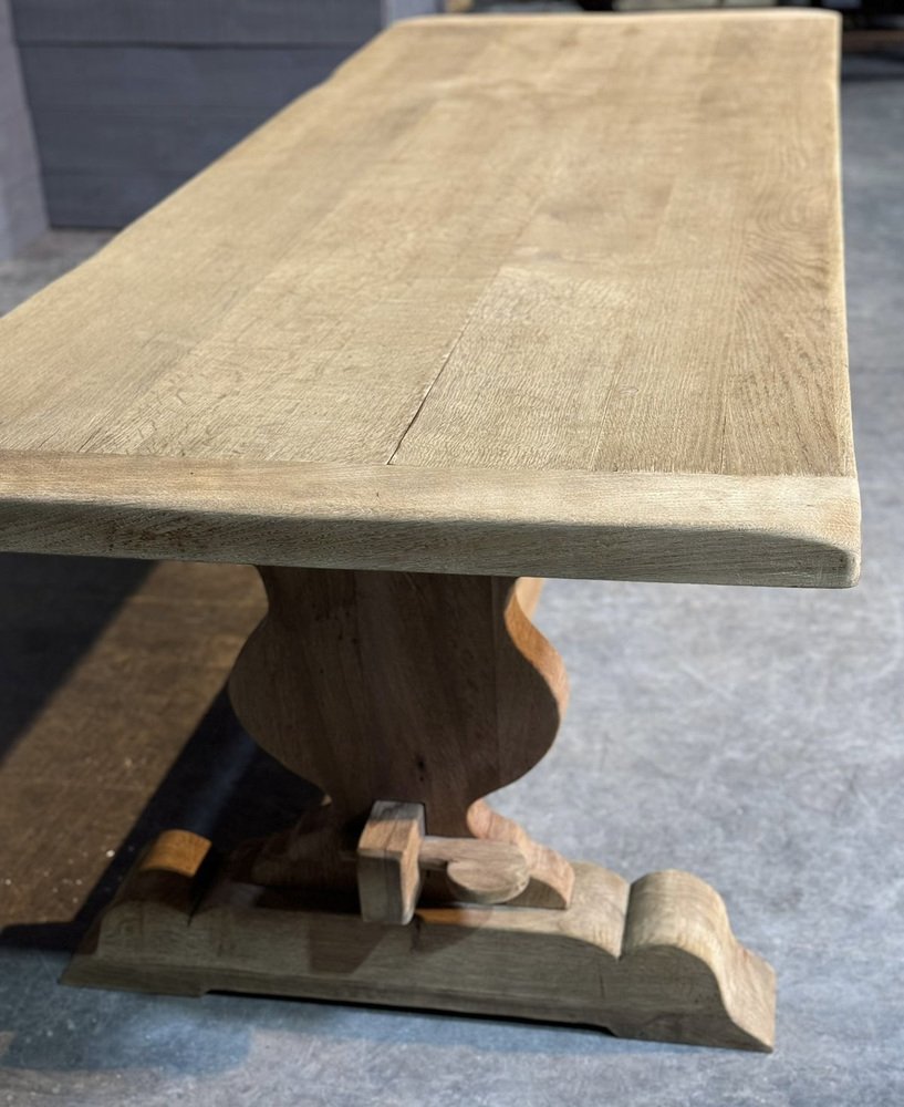 Großer französischer Esstisch aus gebleichter Eiche, 1920er