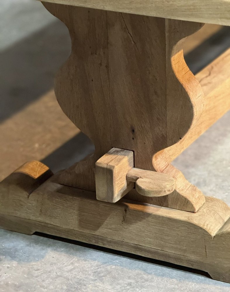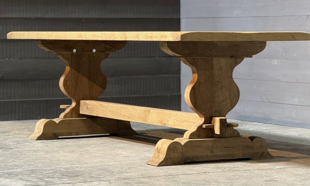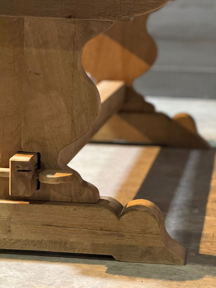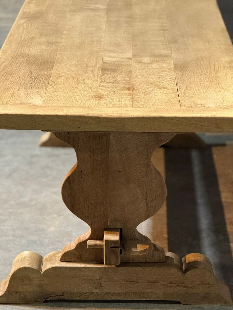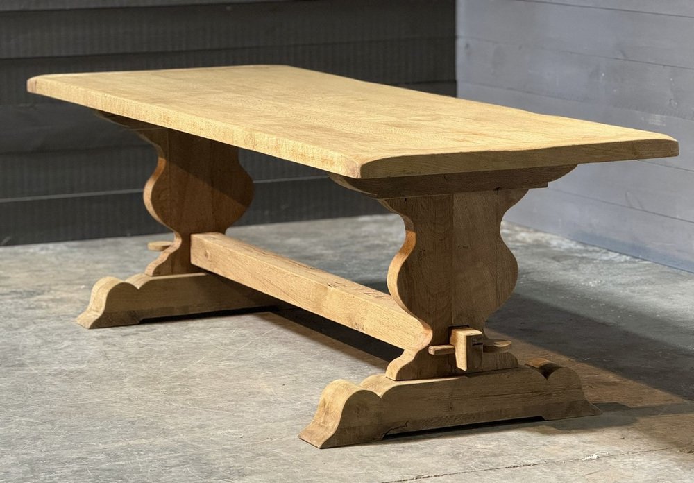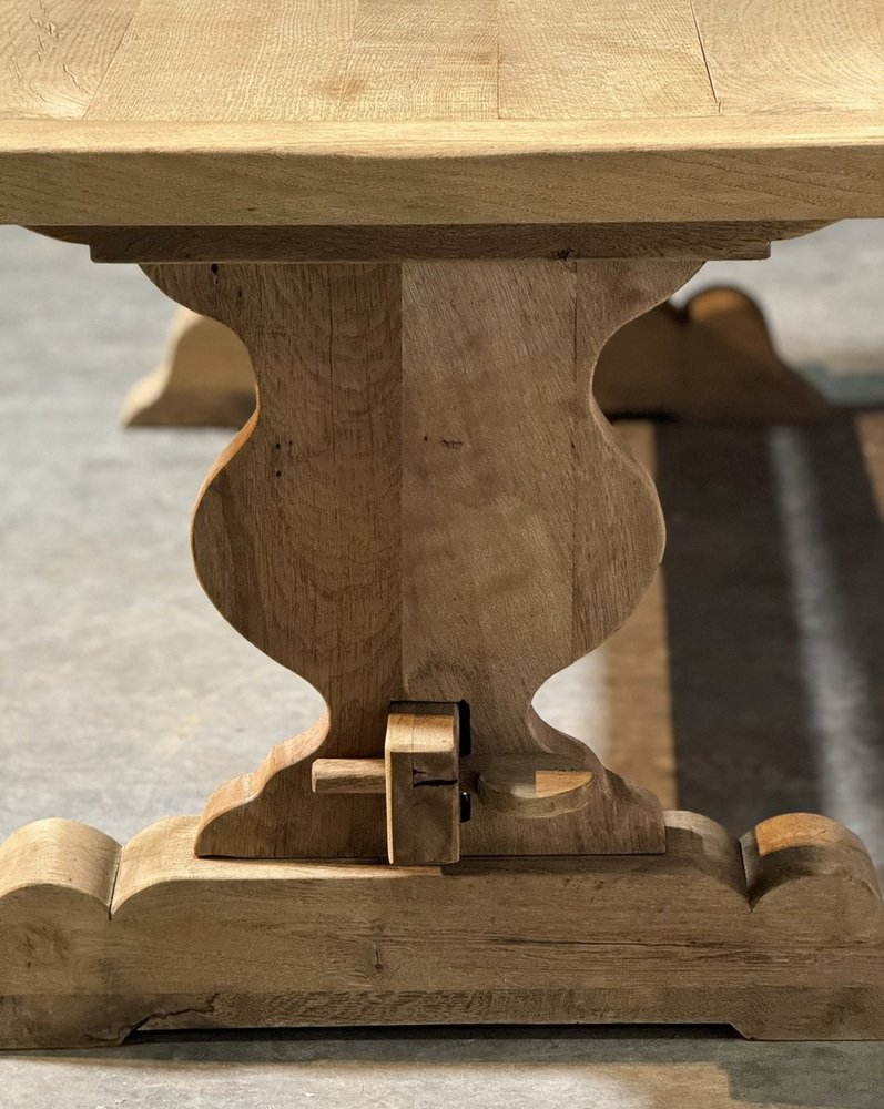Großer französischer Esstisch aus gebleichter Eiche, 1920er