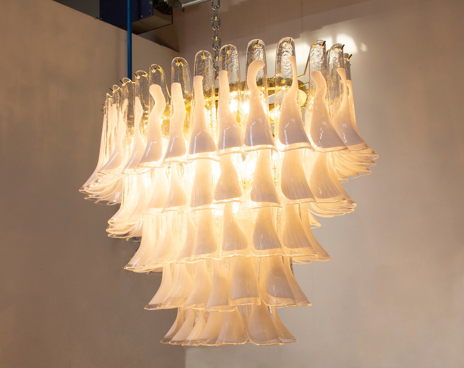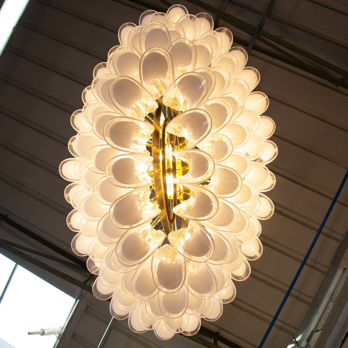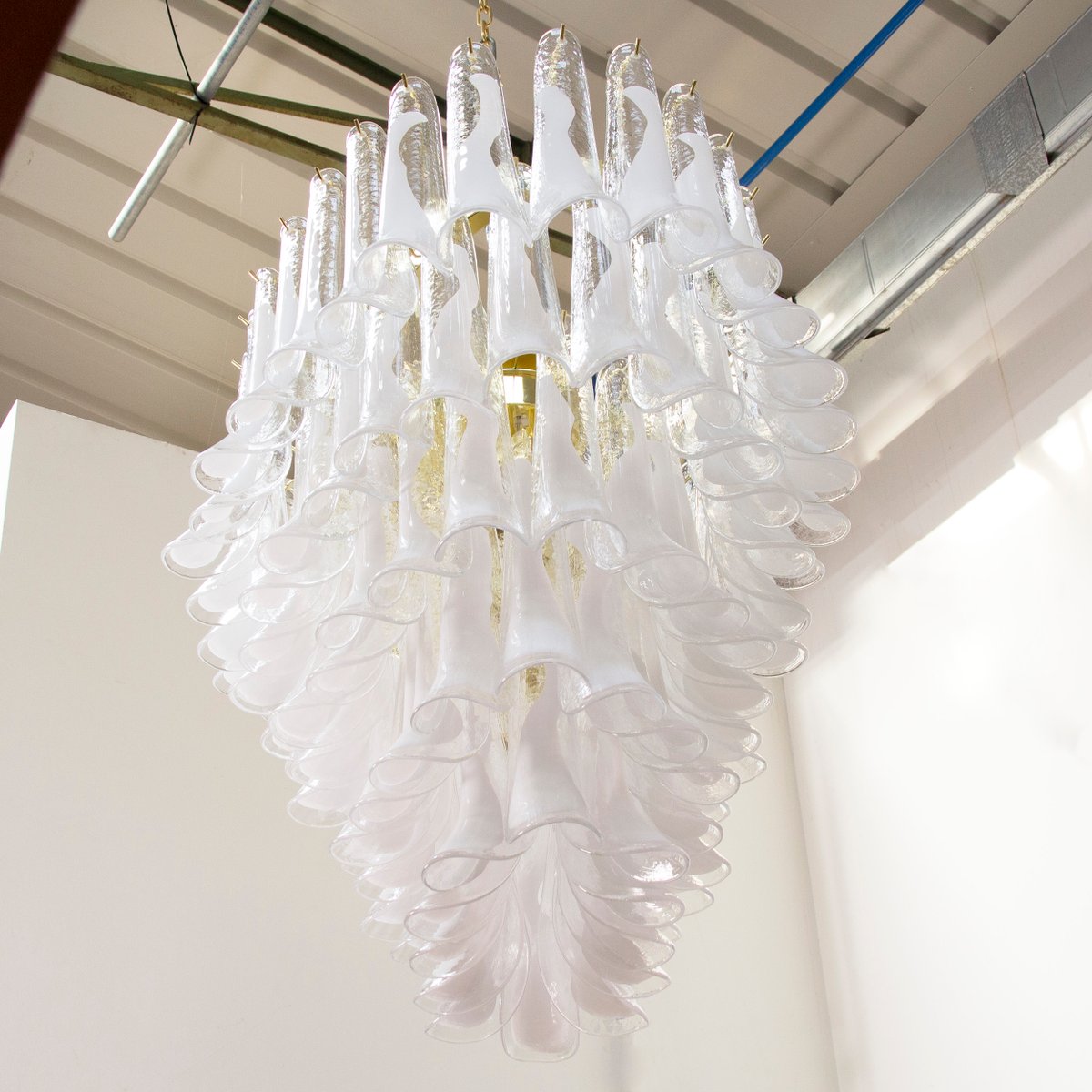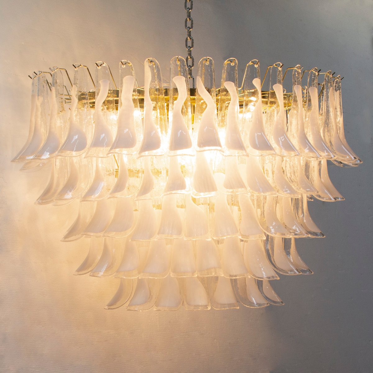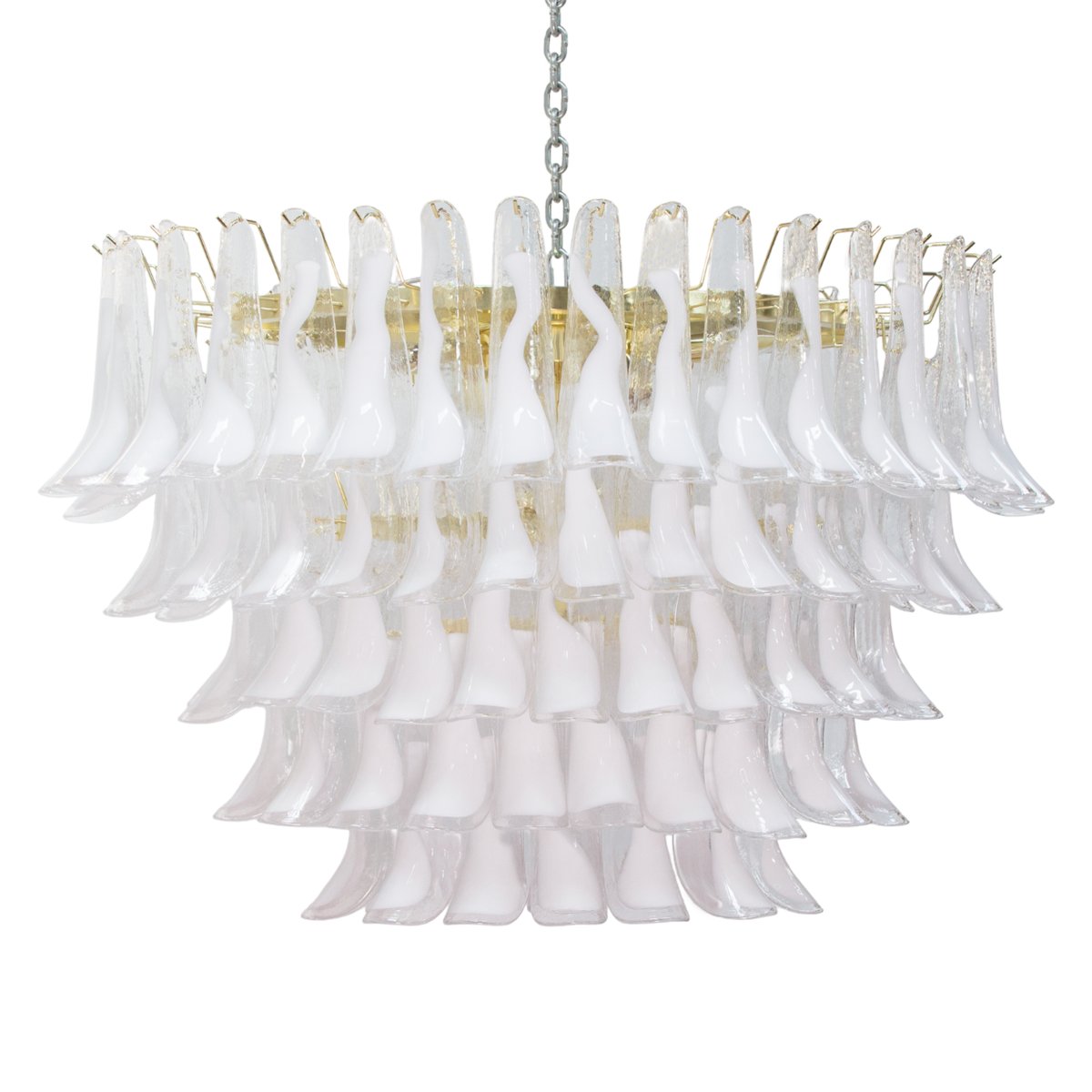 Großer Italienischer Ovaler Hängeleuchter aus Weißem Muranoglas, 1990er