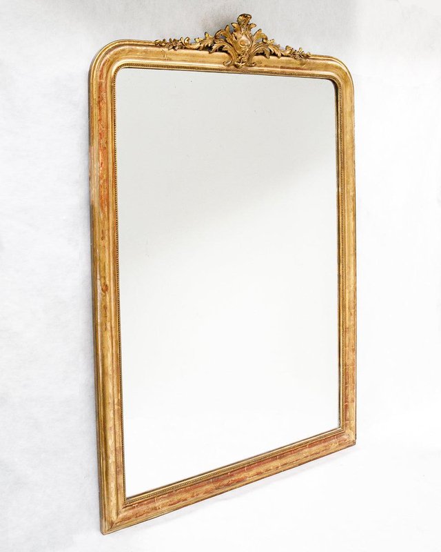 Antique French Gold Gilt Mirror with an Elegant Foliage Crest, Circa 1880.