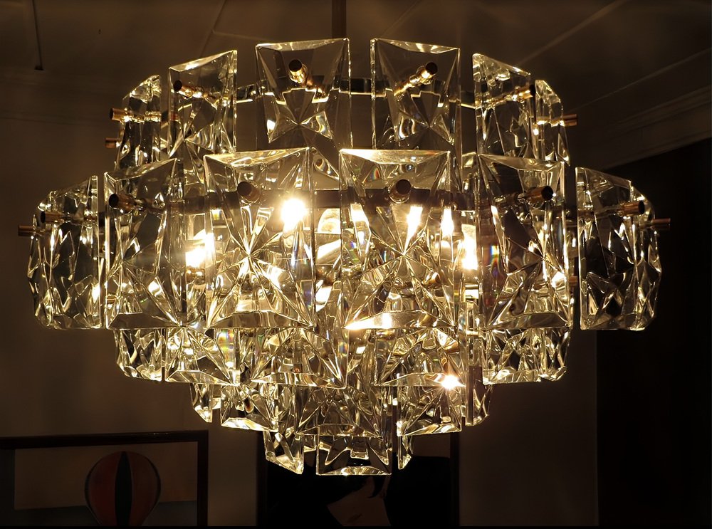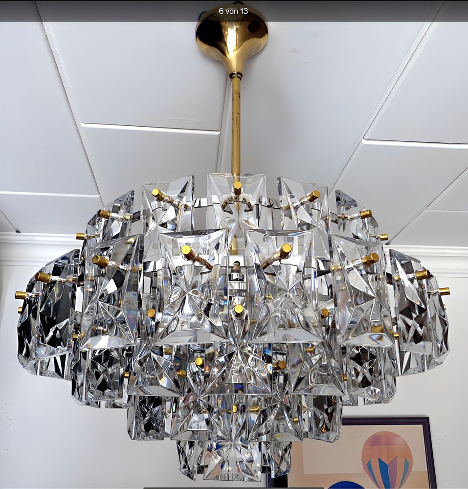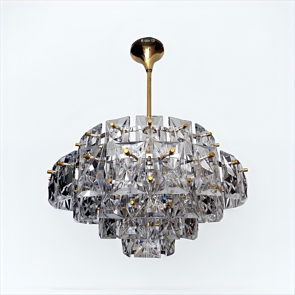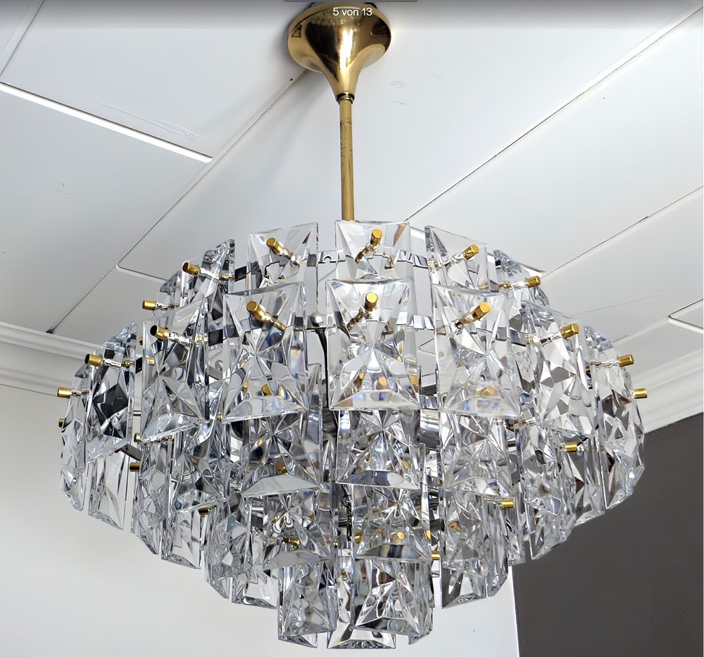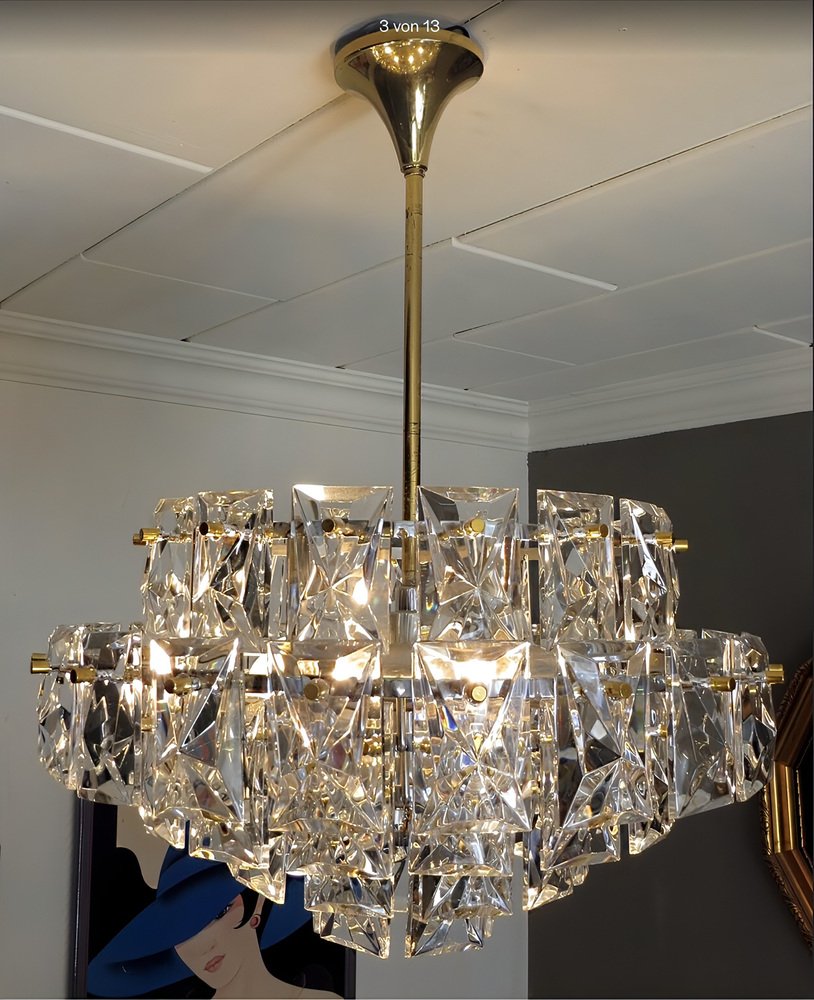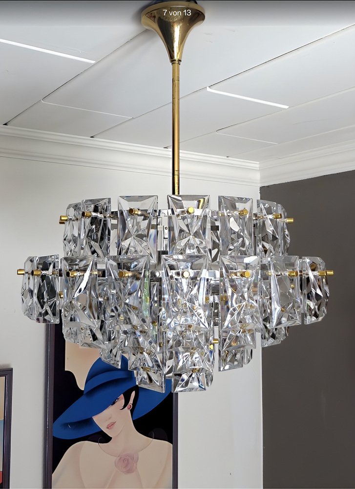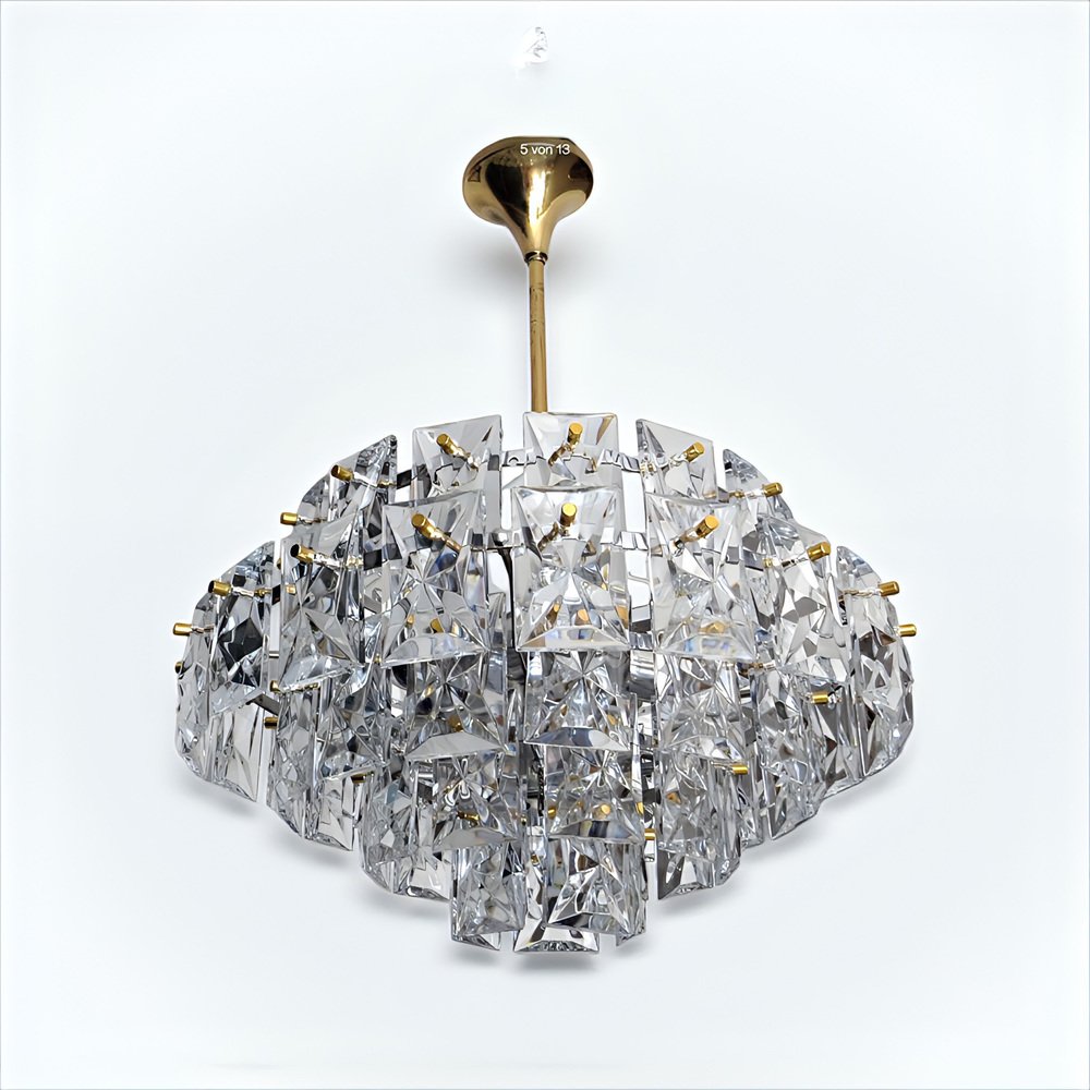 Ein repräsentativer, edler, zeitlos moderner Vintage Kronleuchter in außergewöhnlicher Größe von 52 Zentimeter Durchmesser von KINKELDEY , der Mid-Century Modern Ära den 1950er / 1960er kann hier erworben werden.