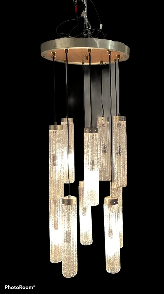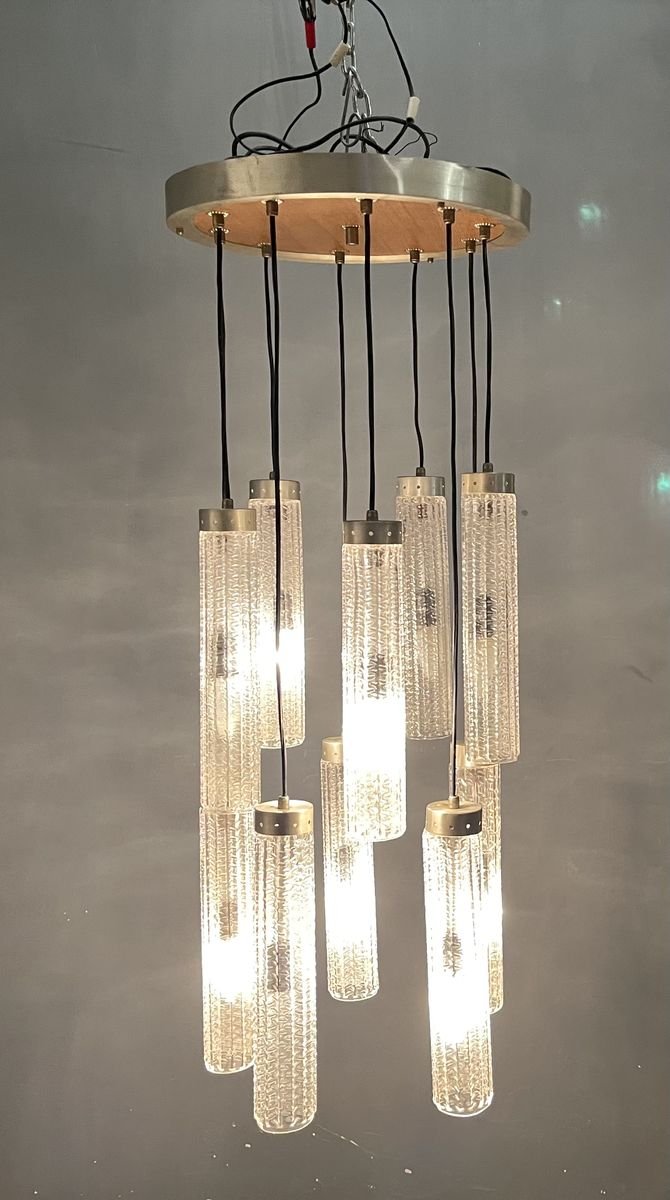 Großer Röhrenglas Kronleuchter, 1970er