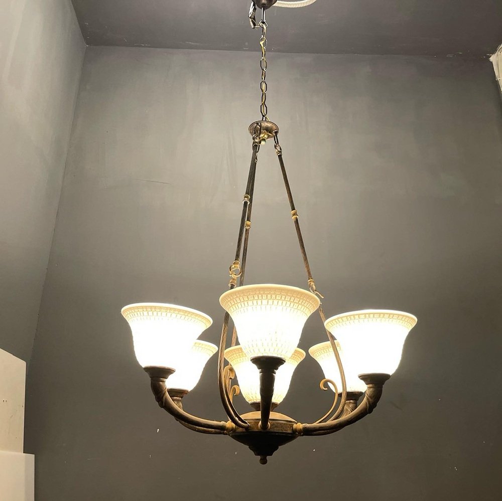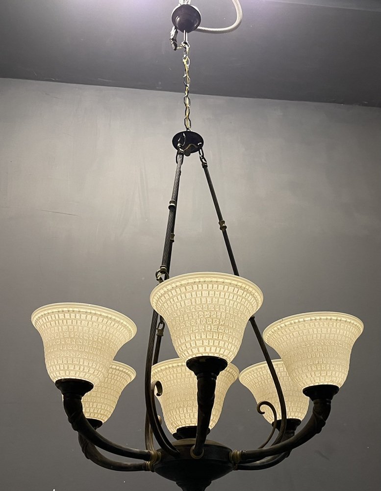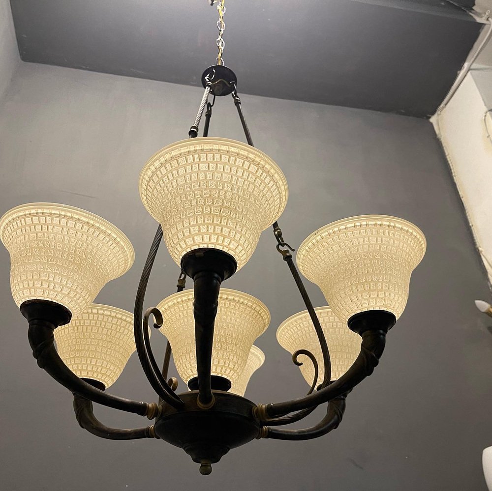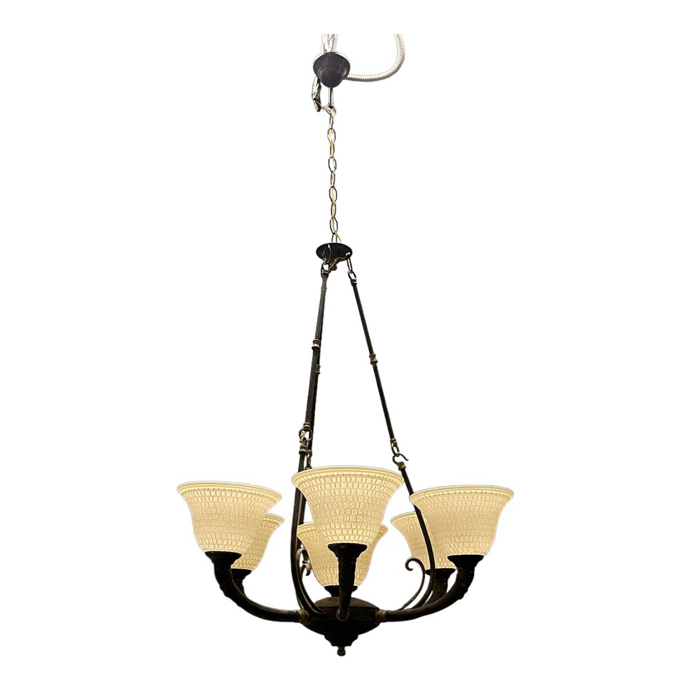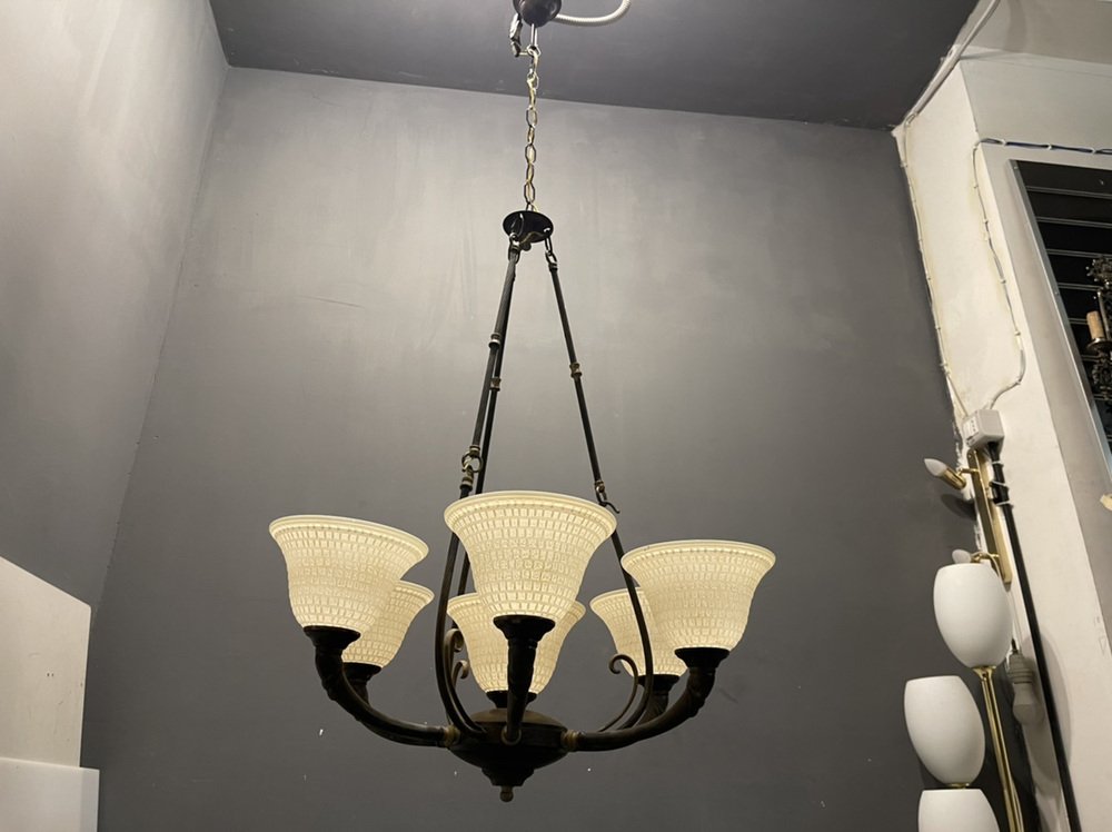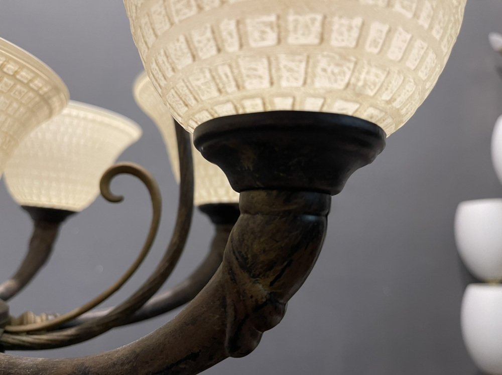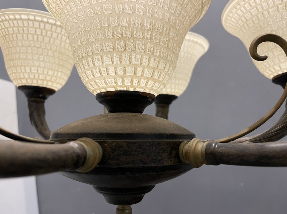 Großer Vintage Kronleuchter aus Muranoglas aus Bronze, 1960er