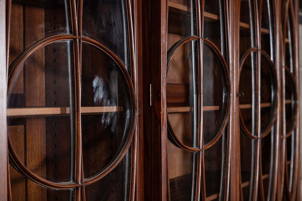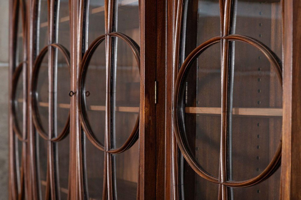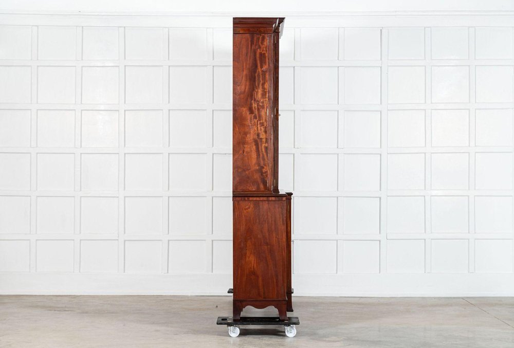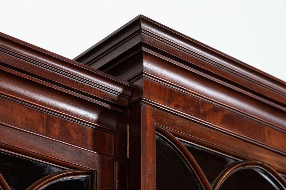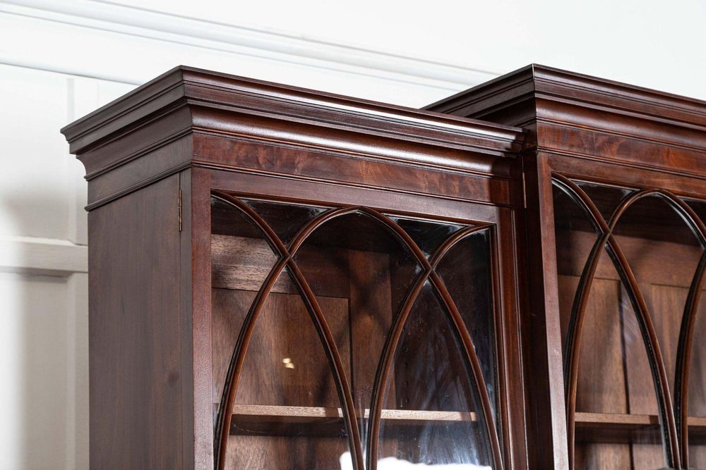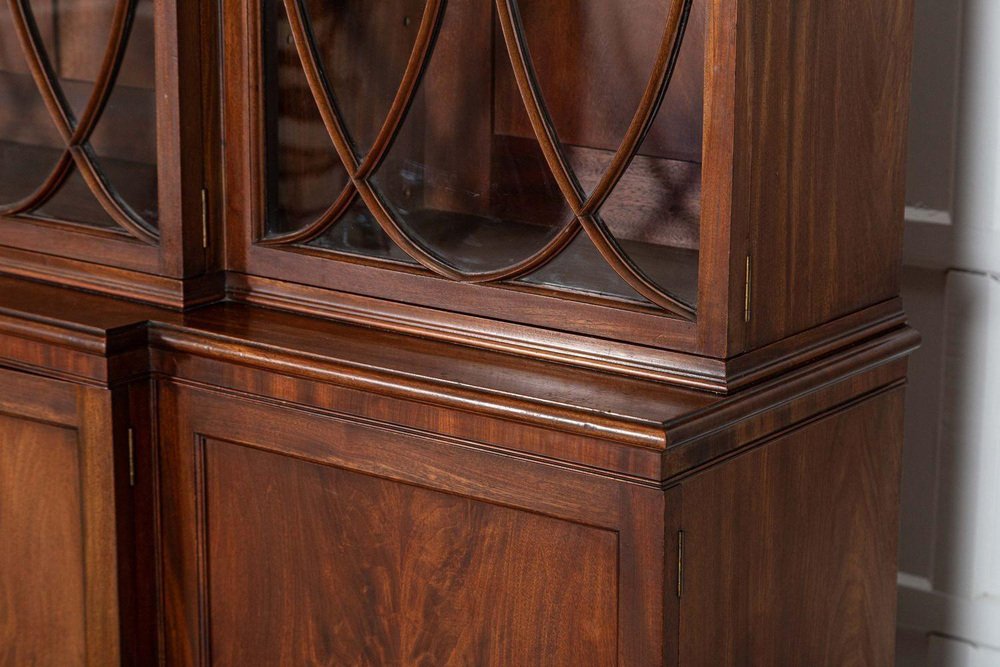 Großes englisches Breakfront Bücherregal aus Flammen Mahagoni, 1920er