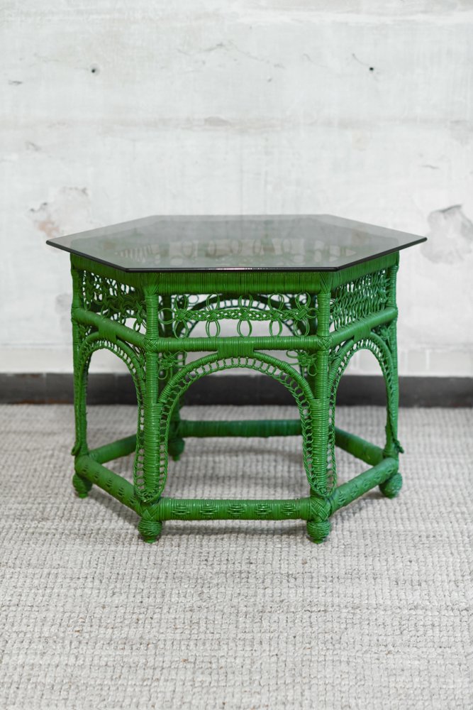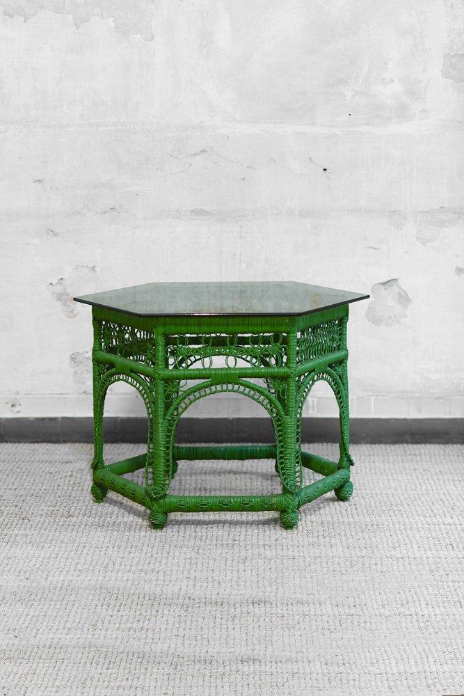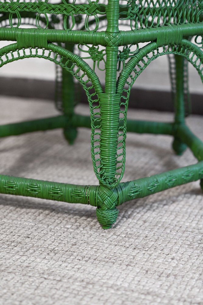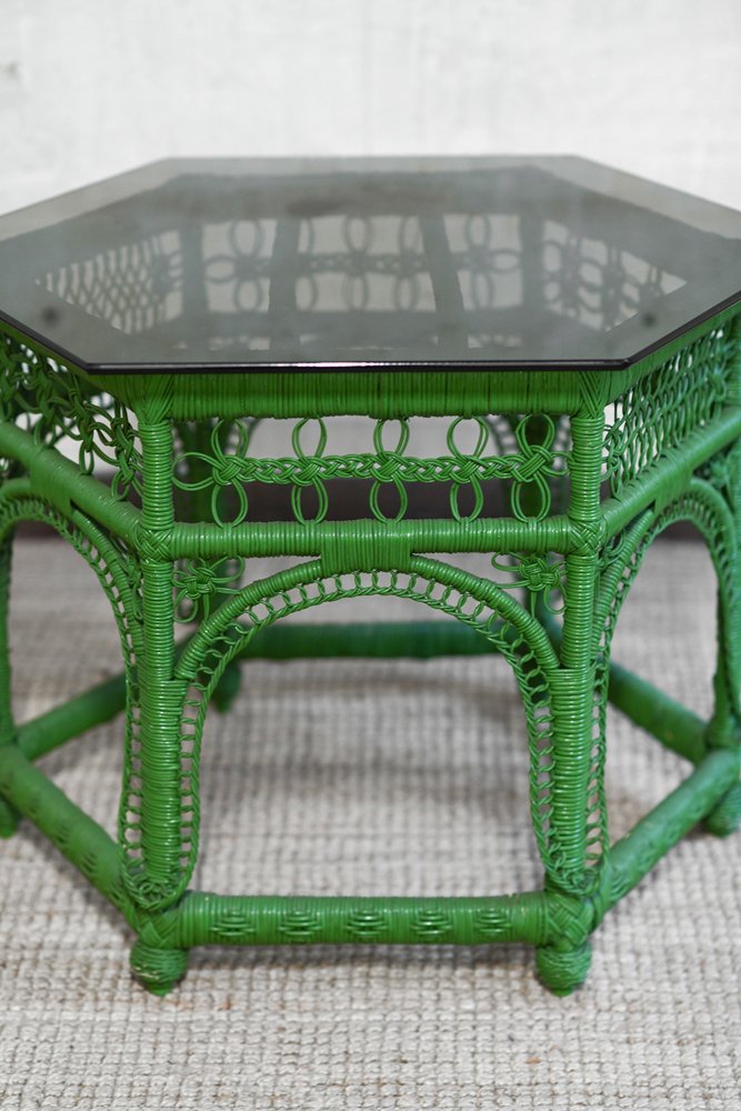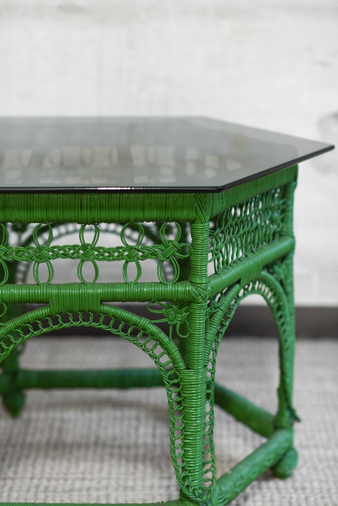 Grüner handgewebter Rattan Couchtisch, 1970er