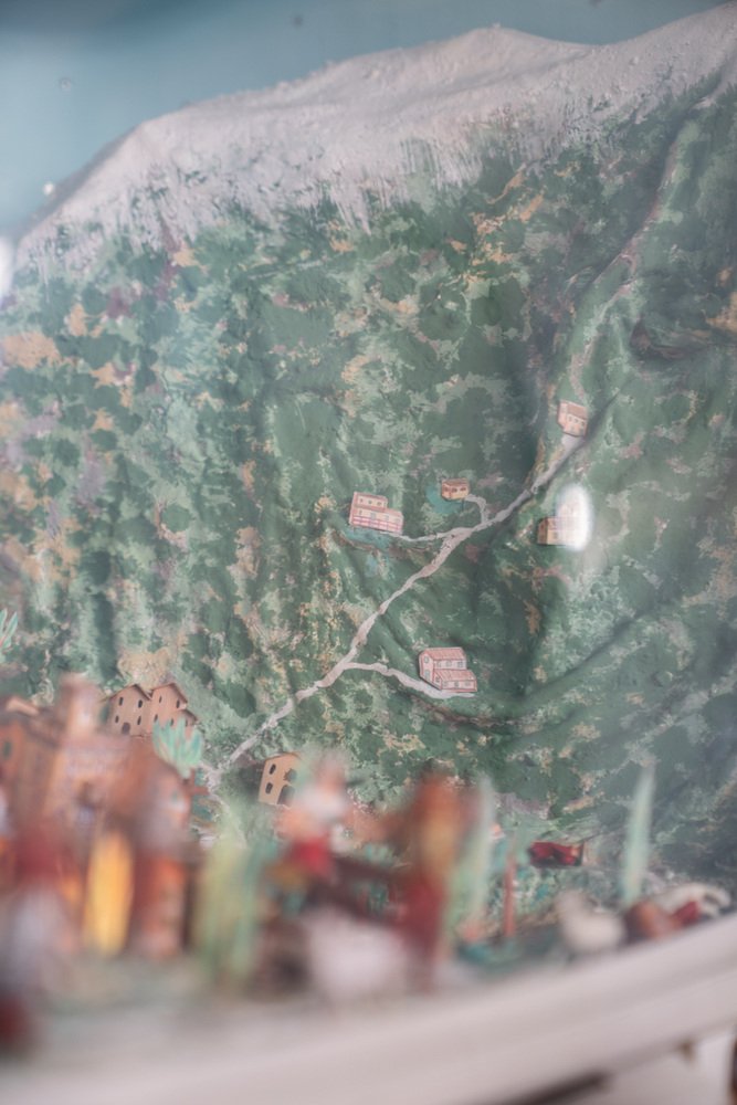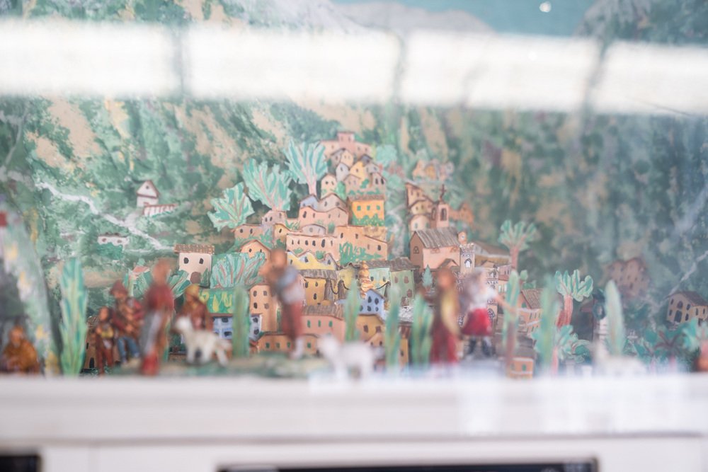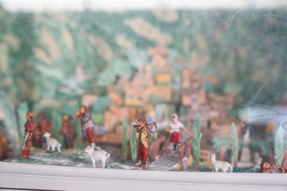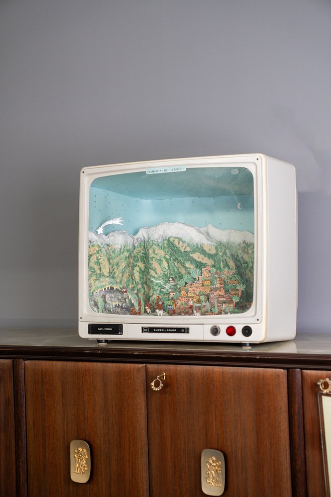 Grundig Fernseher mit leuchtender handwerklicher Krippe, 1950er